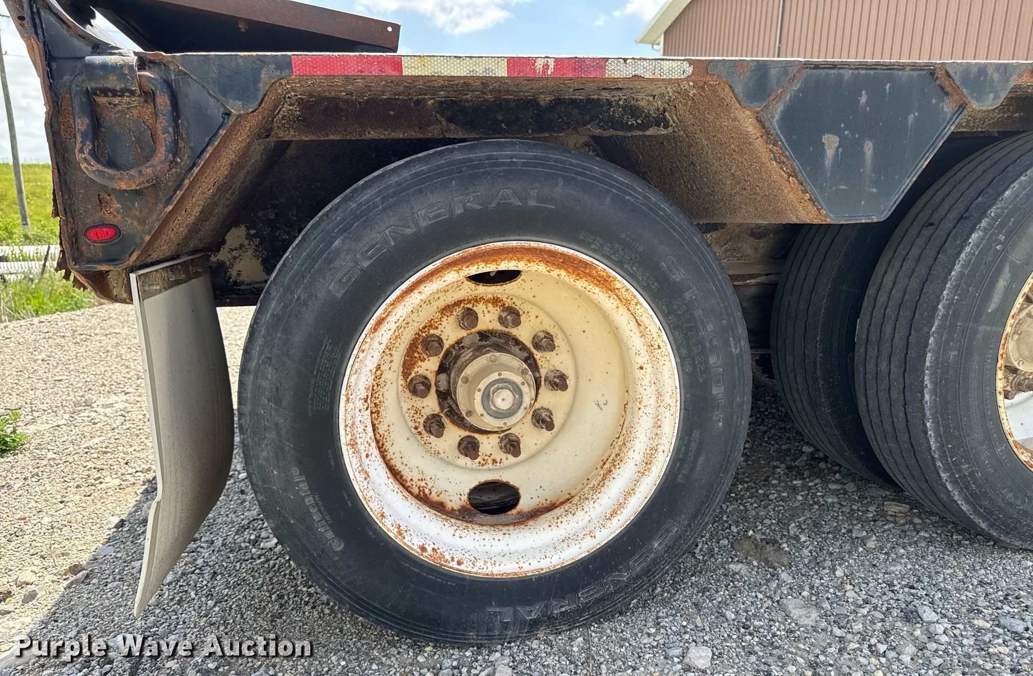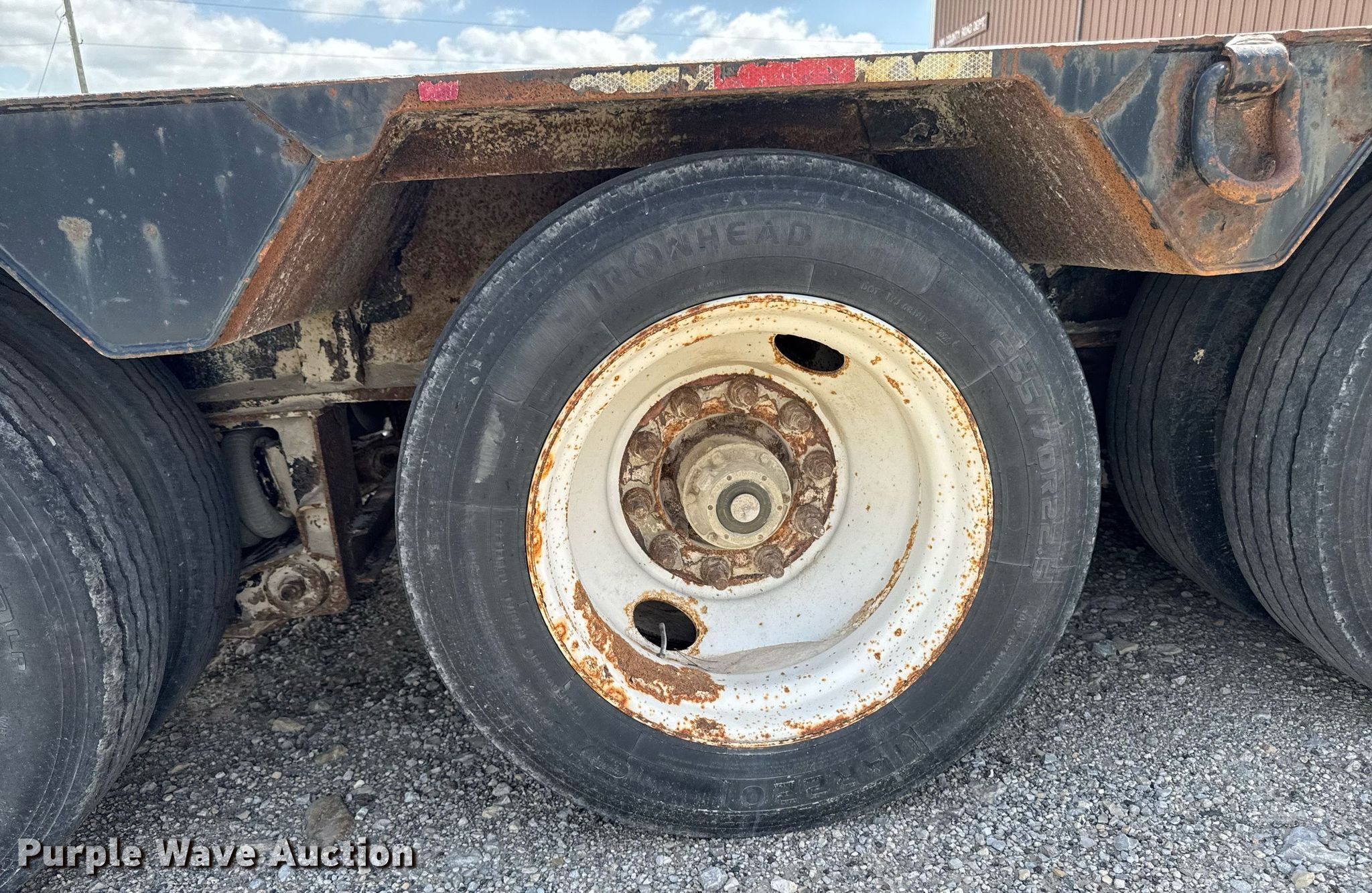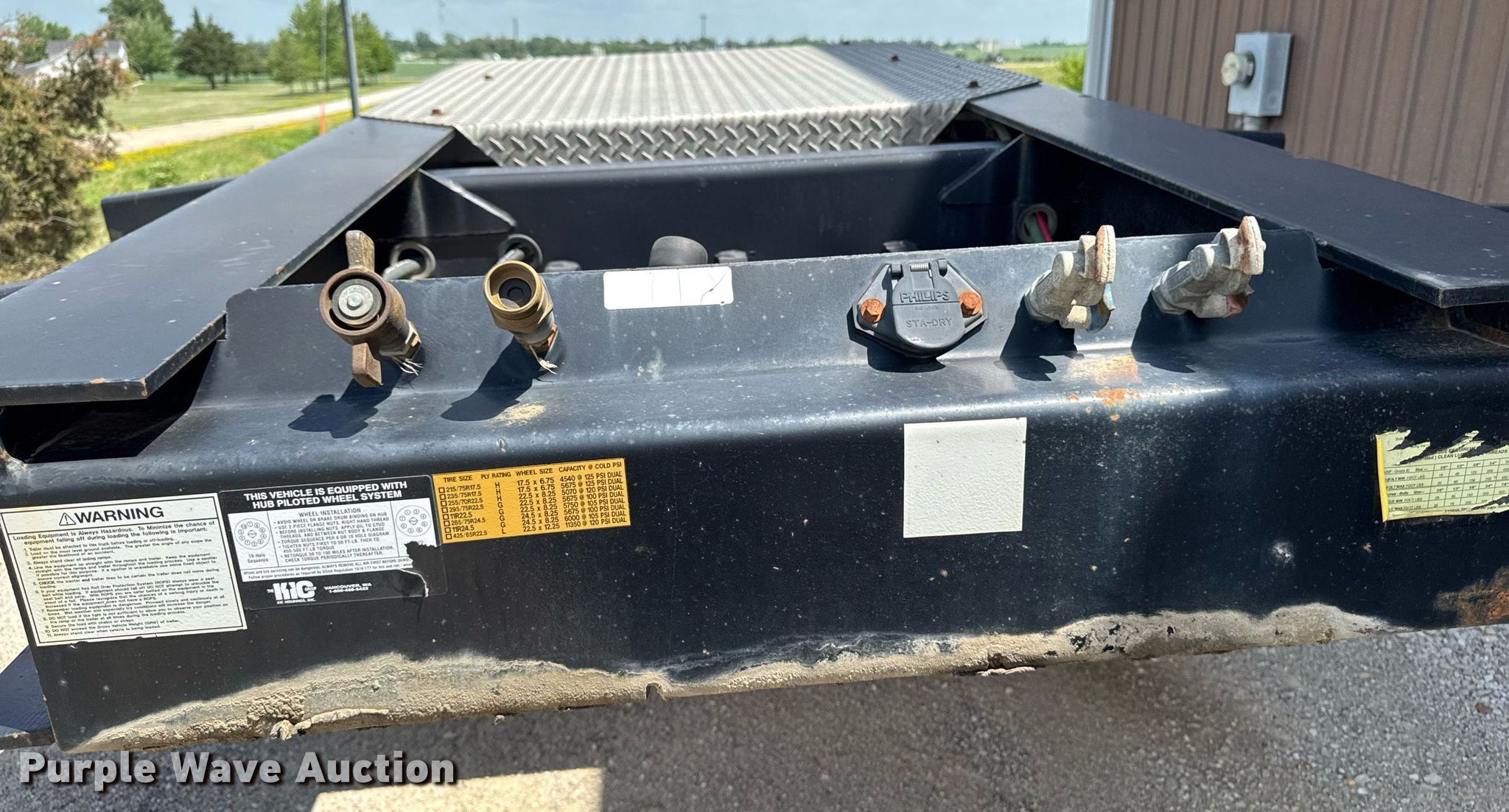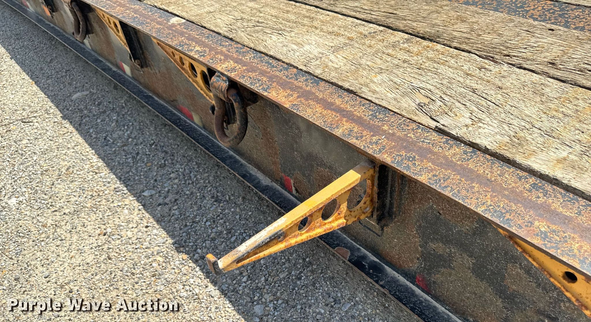 2013 Dynaweld LB52-24DPS lowboy equipment trailer. VIN: 5JYLB5239DP105209. Dimensions Overall: 52' L x 102" W, Deck: 27' L x 102" W, Rear deck length: 17', Ramps: Manual Length: 4'. Features Deck type: Steel, Wood, Outriggers: Swing-out Board size: 14", Neck type: Detachable, Hydraulic controls: Manual. Chassis Suspension: Air, Brakes: Air, Axles: Triple, GVWR: 130,500 lbs, GAWR: 20,280 lbs. Tires Steel wheels, Size: 255/70R22.5. Notes Semi not included. Iowa title. Marion, IA 52302