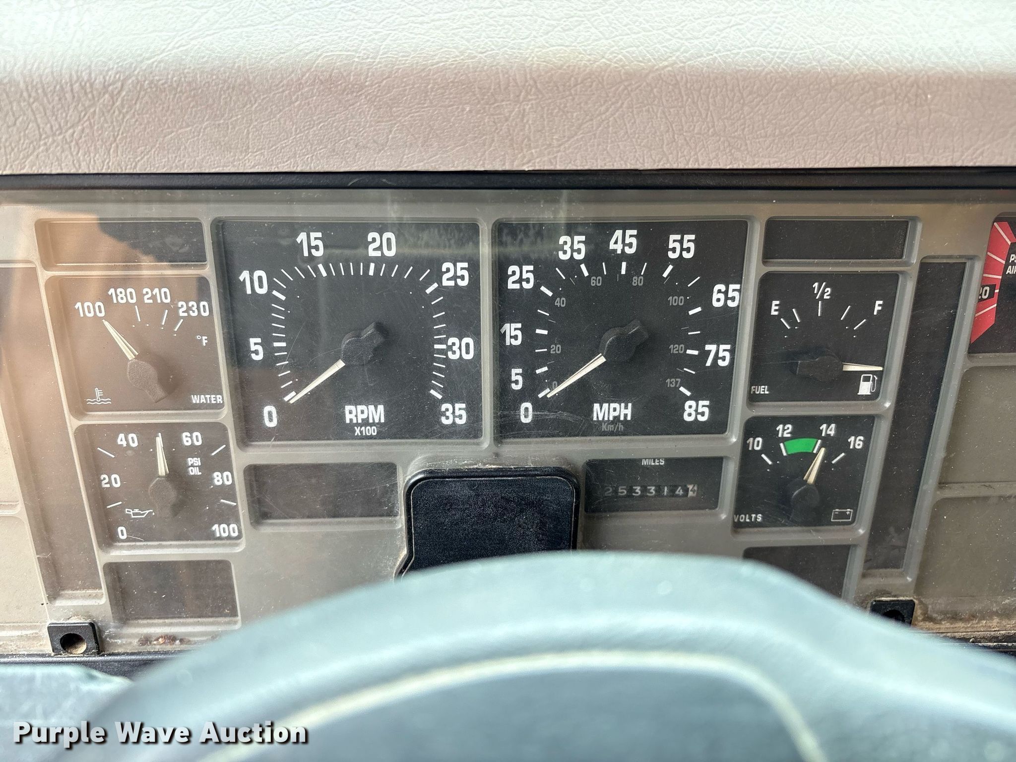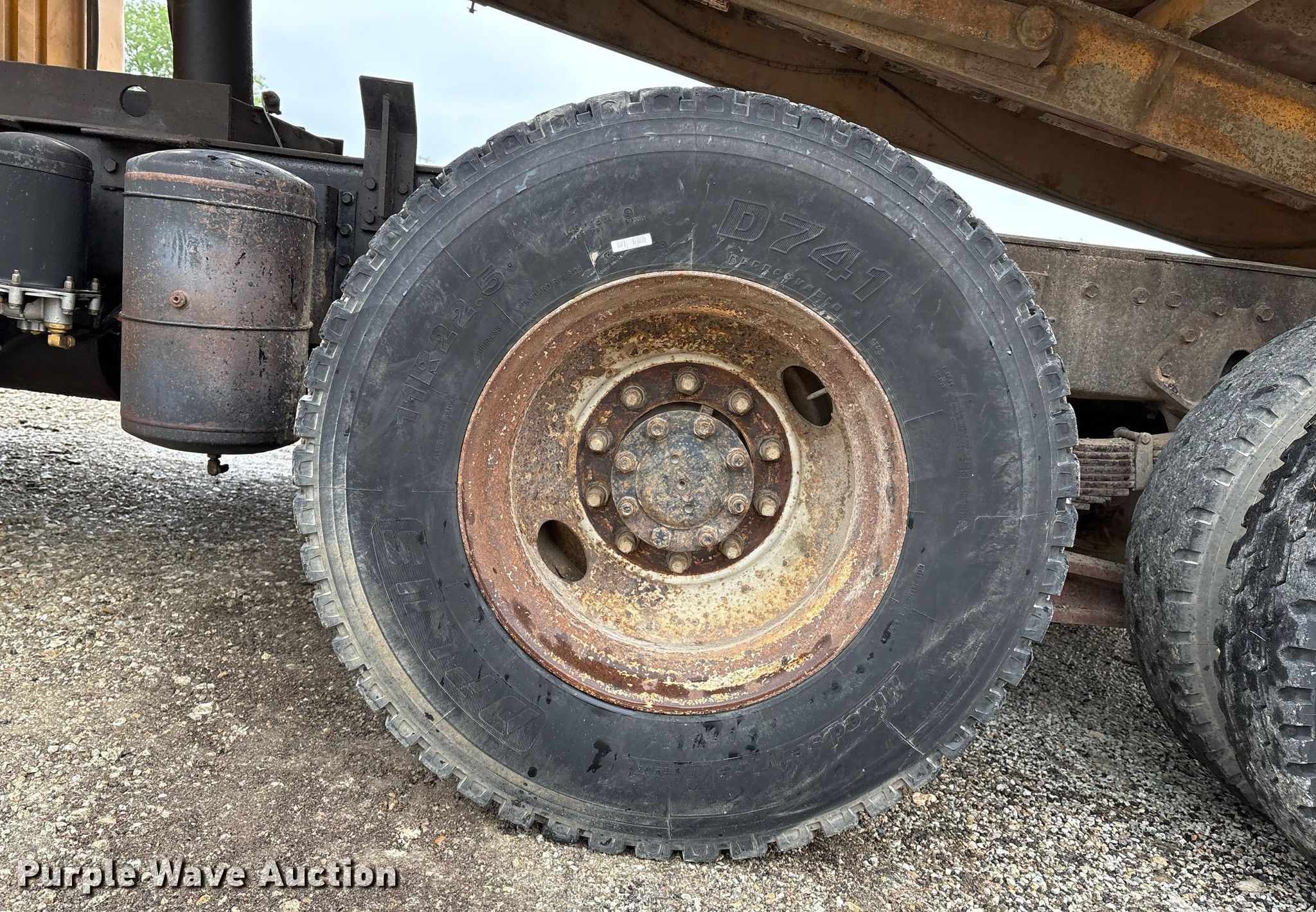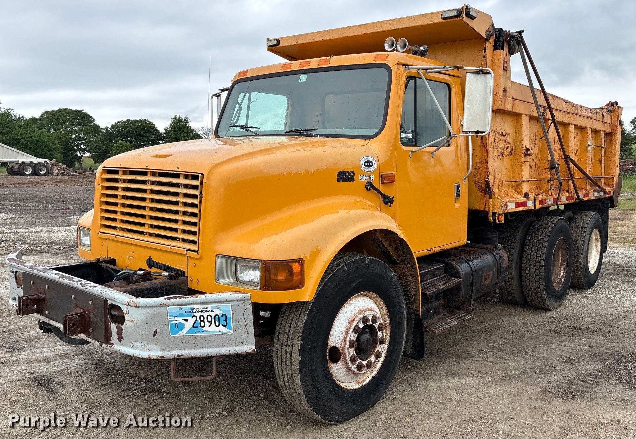 1996 International 4900 dump truck. Miles: 253,314 on odometer, VIN: 1HTSHAAR8TH249336. Engine Displacement: 7.6L, Cylinders: 6, Fuel type: Diesel. Transmission Automatic. Chassis Double frame, Axles: Tandem, Differential lock: Inter-axle, Suspension: Spring over walking beam, Brakes: Air, PTO, Wheelbase: 170". Interior AC, Heat. Features Dump bed 14' L x 96" W, Bed type: Steel, Roll tarp, Ram: Single, End gate: Manual. Tires Size: 11R22.5. Oklahoma title. Title distribution may be delayed up to 30 days from verification of funds. Pontotoc County District 2. Ada, OK 74820