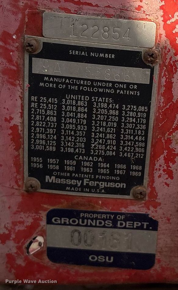 (2) Massey Ferguson 135 tractors. Sale #: 2603-KP. 1972 Massey Ferguson 135 tractor Serial: 9A 147312. Engine Perkins AG3-152, Cylinders: 3, Fuel type: Gas. Transmission Manual, 6F - 2R. Features PTO: 540, Three point. Tires Front: 6.50-16, Rear: 14.9-24. 1968 Massey Ferguson 135 tractor Serial: 9A 153866. Engine Perkins AG3-152, Cylinders: 3, Fuel type: Gas. Transmission Manual, 6F - 2R. Features PTO: 540, Three point. Tires Front: 6.00-16, Rear: 13.6-28. Notes Non-operational units. OSU Vet Med Organized Research. Stillwater, OK 74075