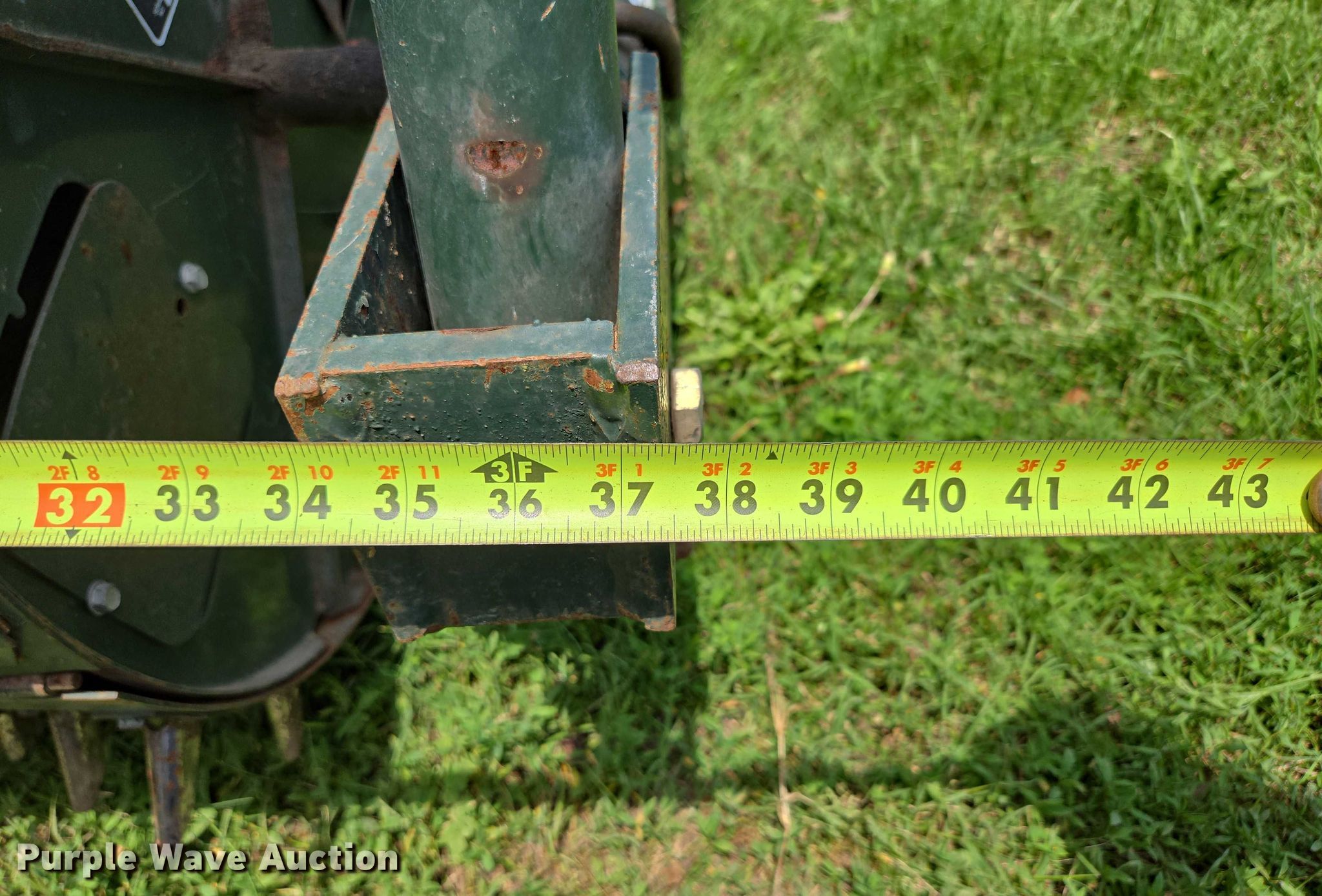 Cushman Greensaver aerator. Overall width: 37.5", Serial: A00120002, Serial: A0011016. Features Sweep width: 22.25", Hitch: Three point. City of Mount Vernon. Mount Vernon, MO 65712