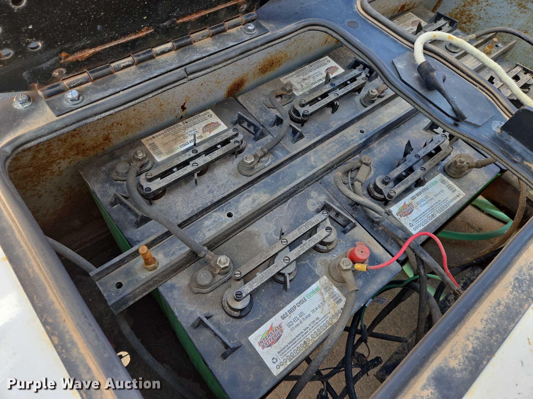 Columbia EU4-S-36S utility cart. VIN: U4SC3-3ZH0174. Electric Motor Volts: 36, Phase: Single. Transmission Hydrostatic. Features Deck 44" L x 43" W. Tires Size: 5.70-8. Notes Dead battery, Non-operational unit. Intrust Bank Arena. Wichita, KS 67202