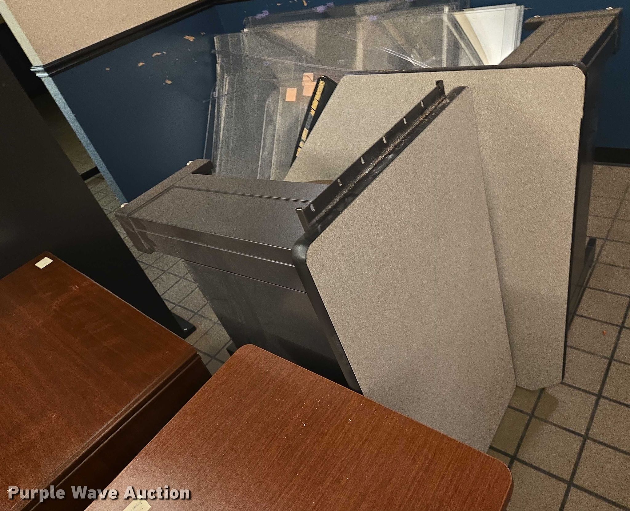 Purple Wave is selling a used Furniture in Kansas. This item is a Furniture with the following: Desks: 6, Plexiglass dividers