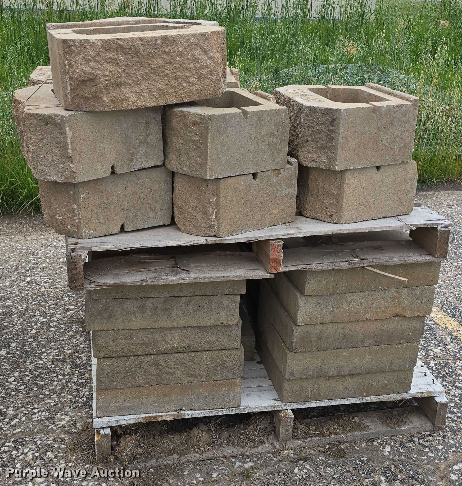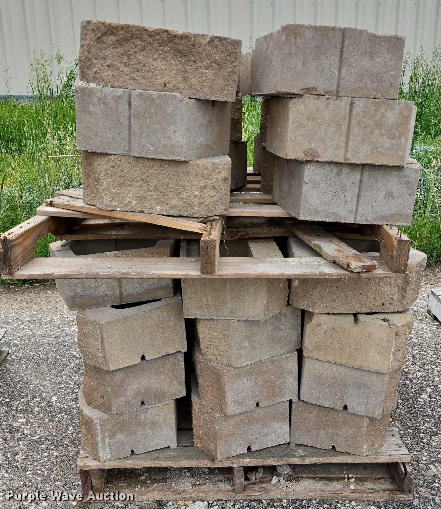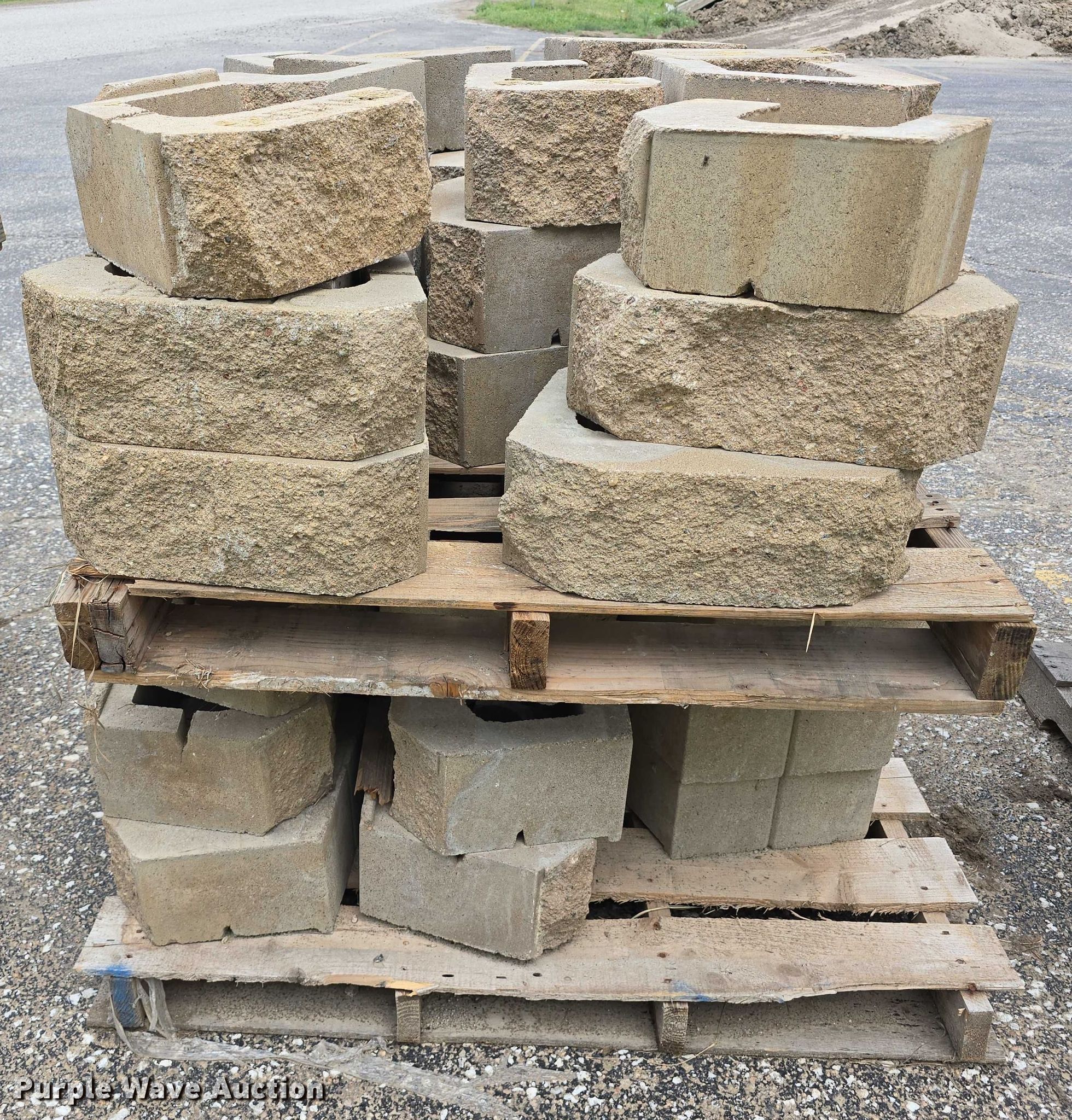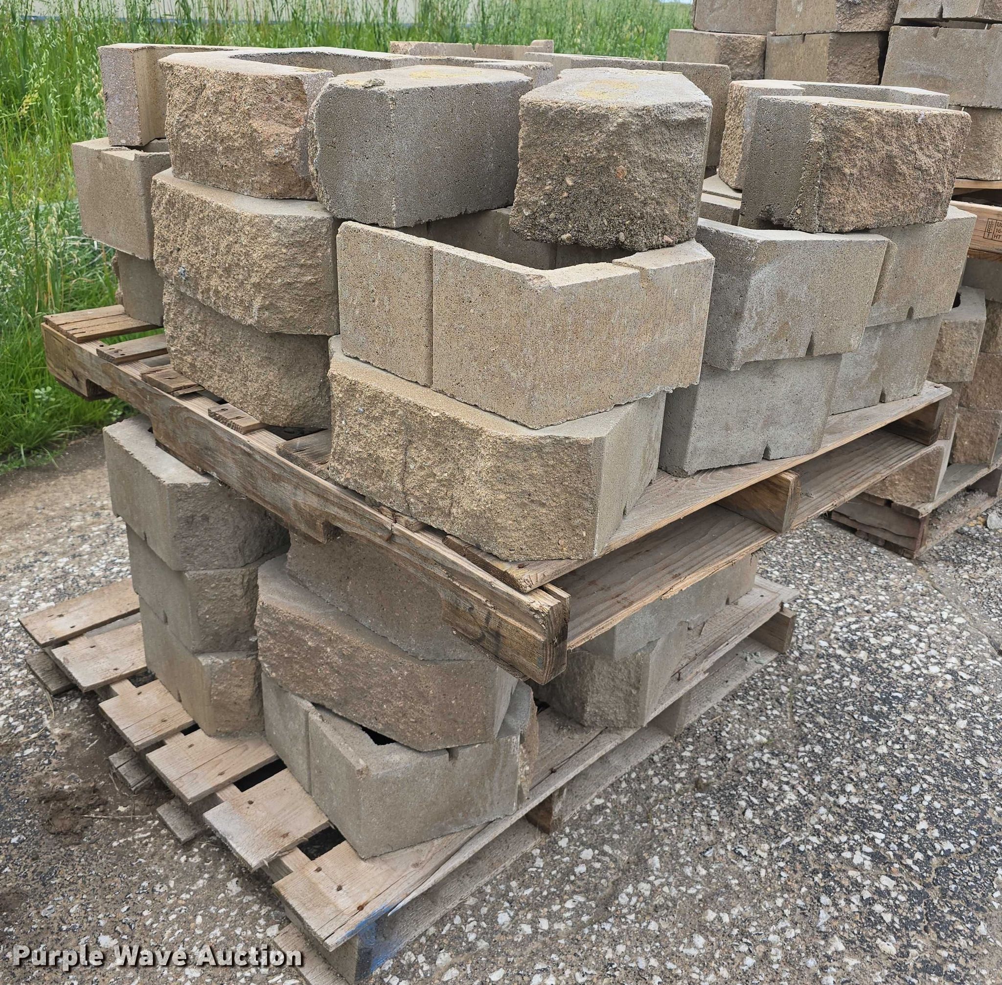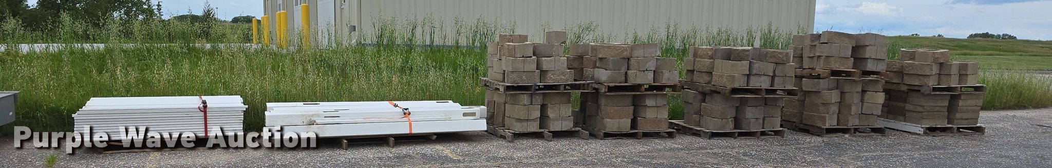 Purple Wave is selling a used Building Materials in Nebraska. This item is a Landscaping materials with the following: (72) Denver blocks, 16" L x 12" W x 6" H, (38) retaining wall caps, 16" L x 12" W x 3.5" H, (60) plastic fence panels, 58" L x 8" W, (12) 6' L plastic rail caps, (7) 6' L plastic post sleeves, (6) plastic fence panels, 6' L x 6.5" W