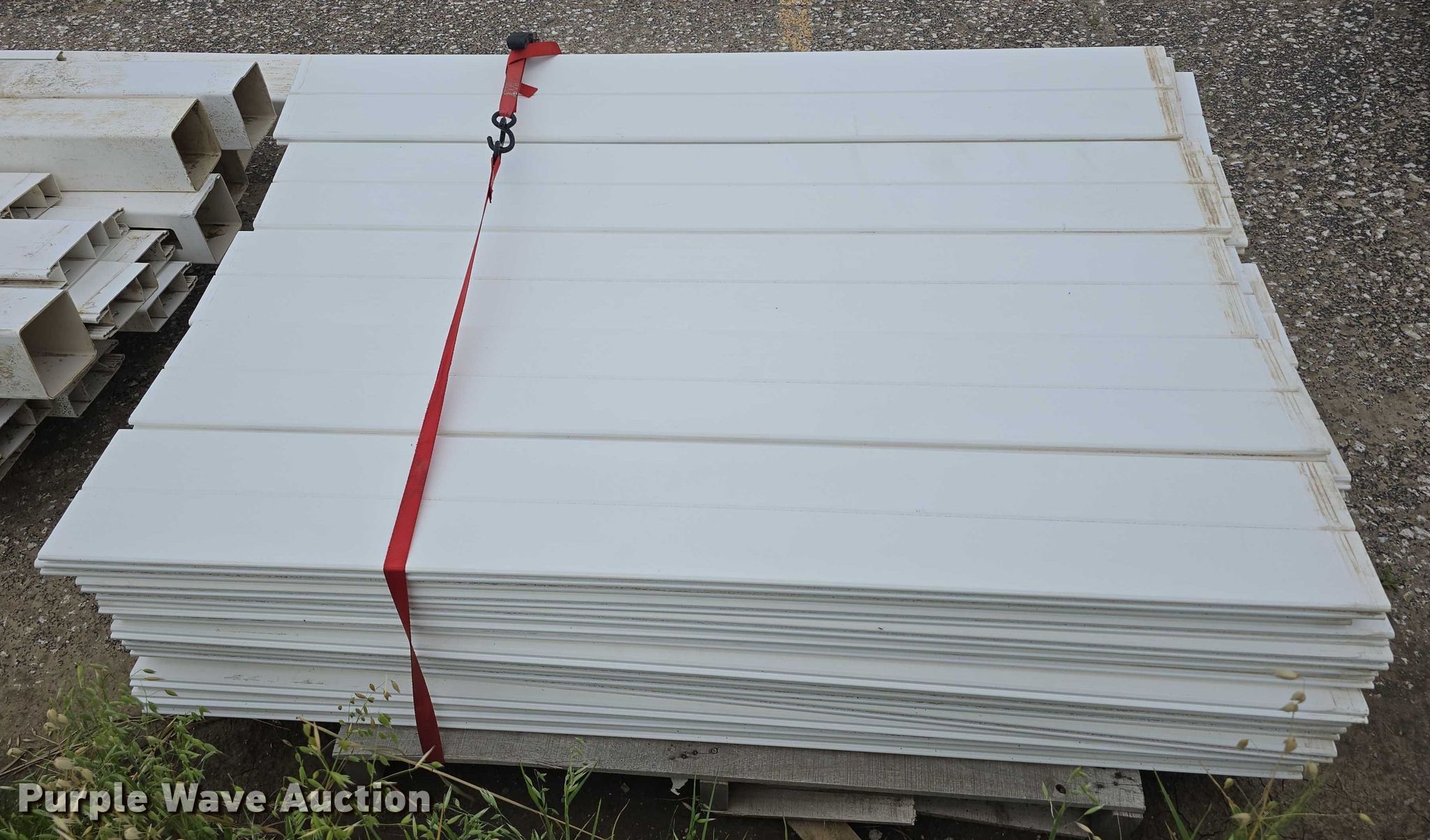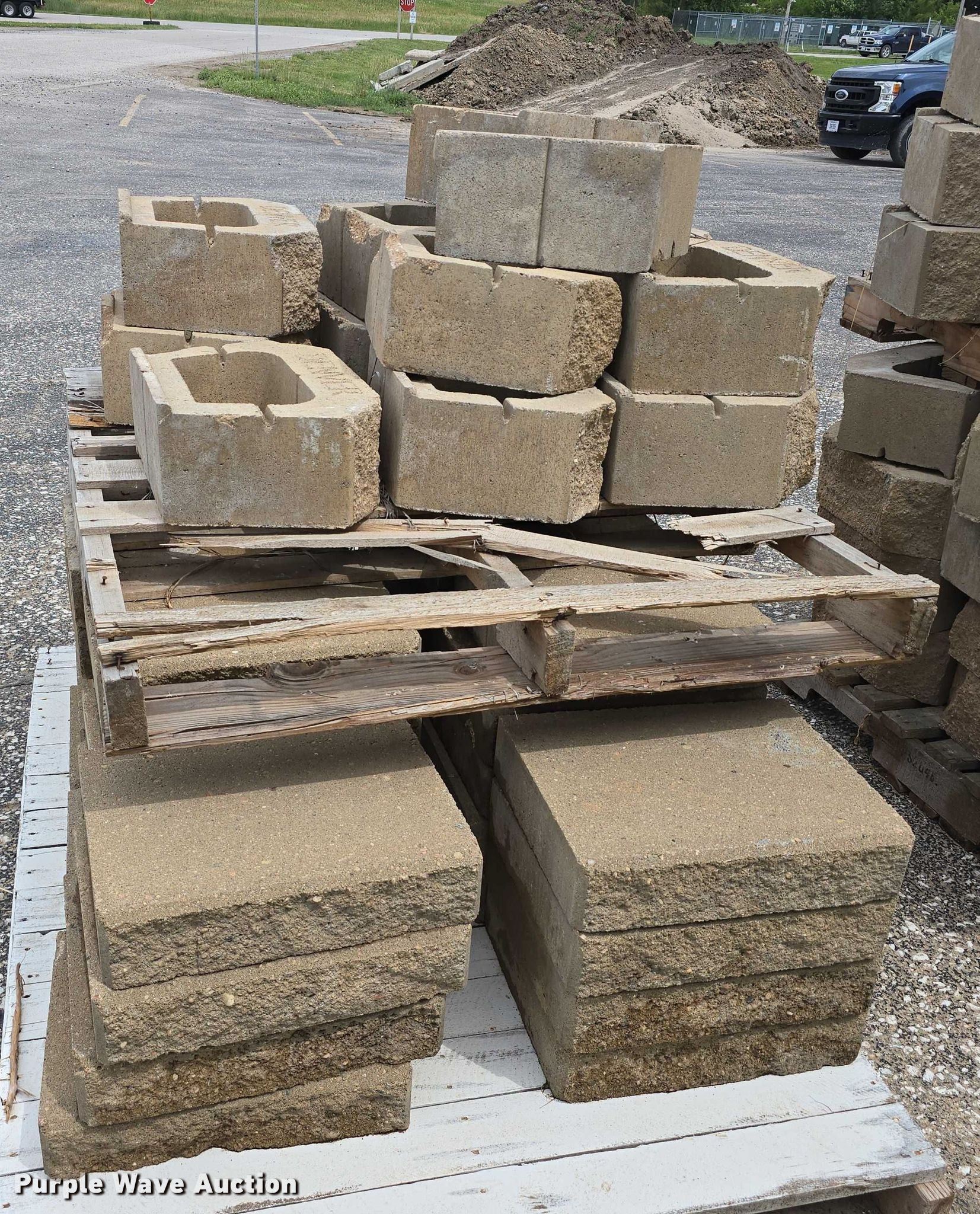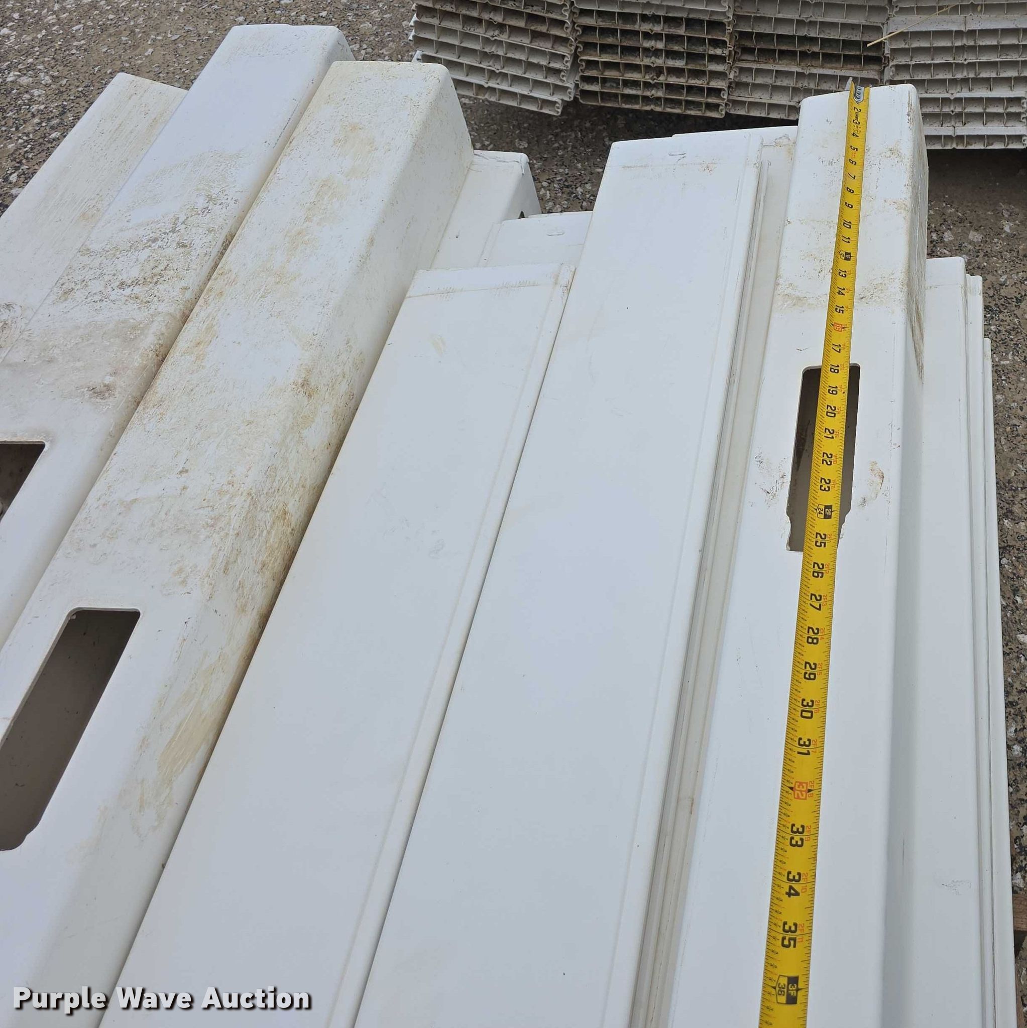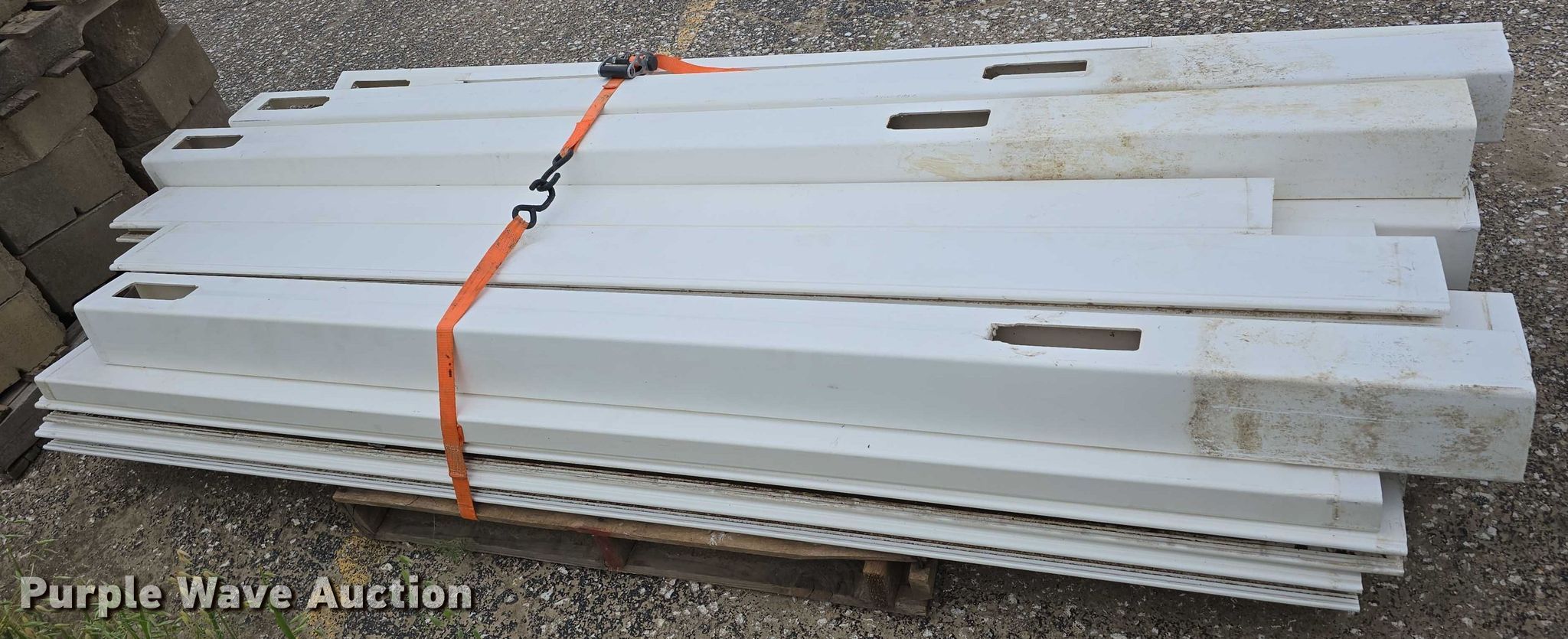 Purple Wave is selling a used Building Materials in Nebraska. This item is a Landscaping materials with the following: (72) Denver blocks, 16" L x 12" W x 6" H, (38) retaining wall caps, 16" L x 12" W x 3.5" H, (60) plastic fence panels, 58" L x 8" W, (12) 6' L plastic rail caps, (7) 6' L plastic post sleeves, (6) plastic fence panels, 6' L x 6.5" W