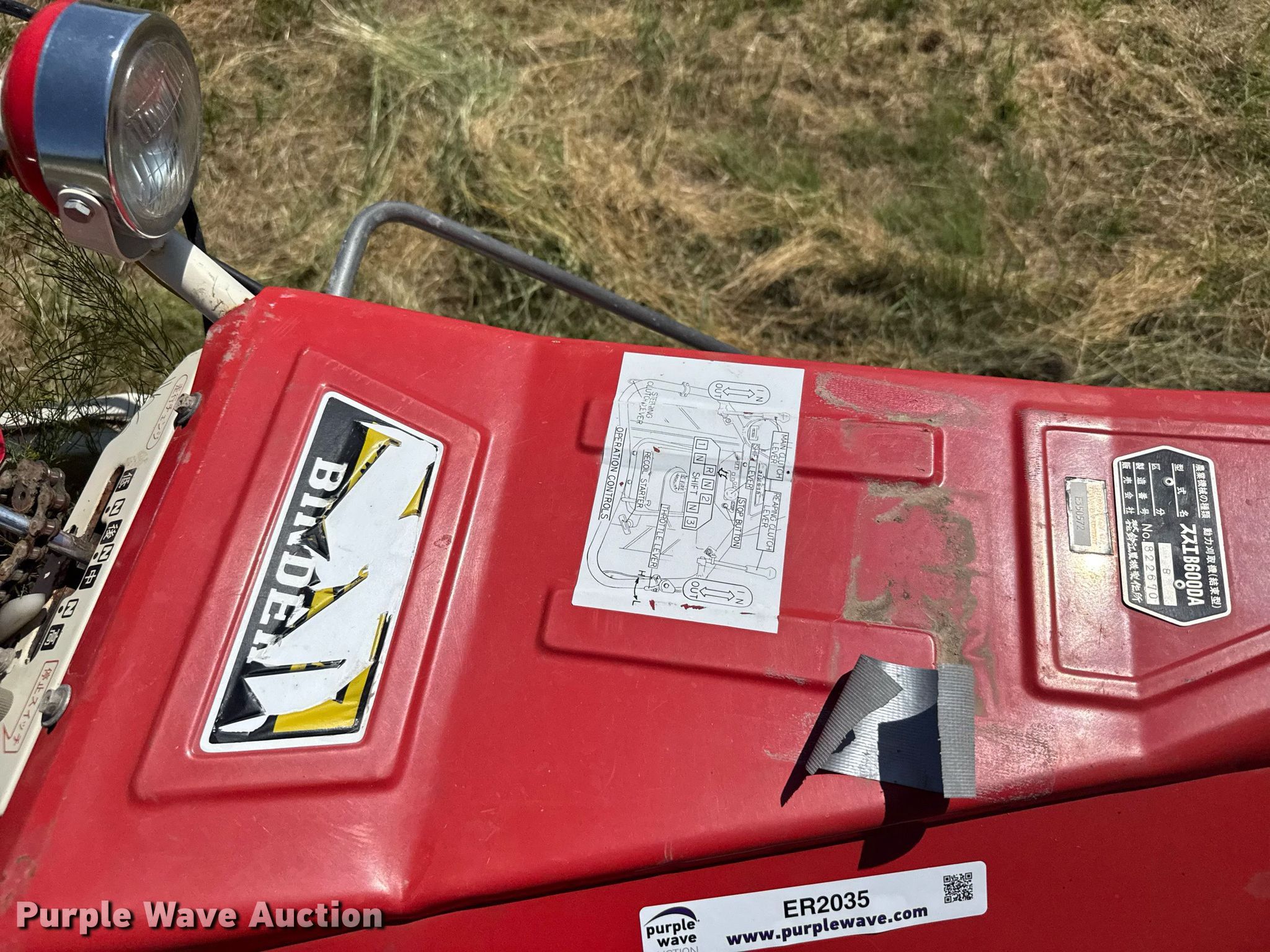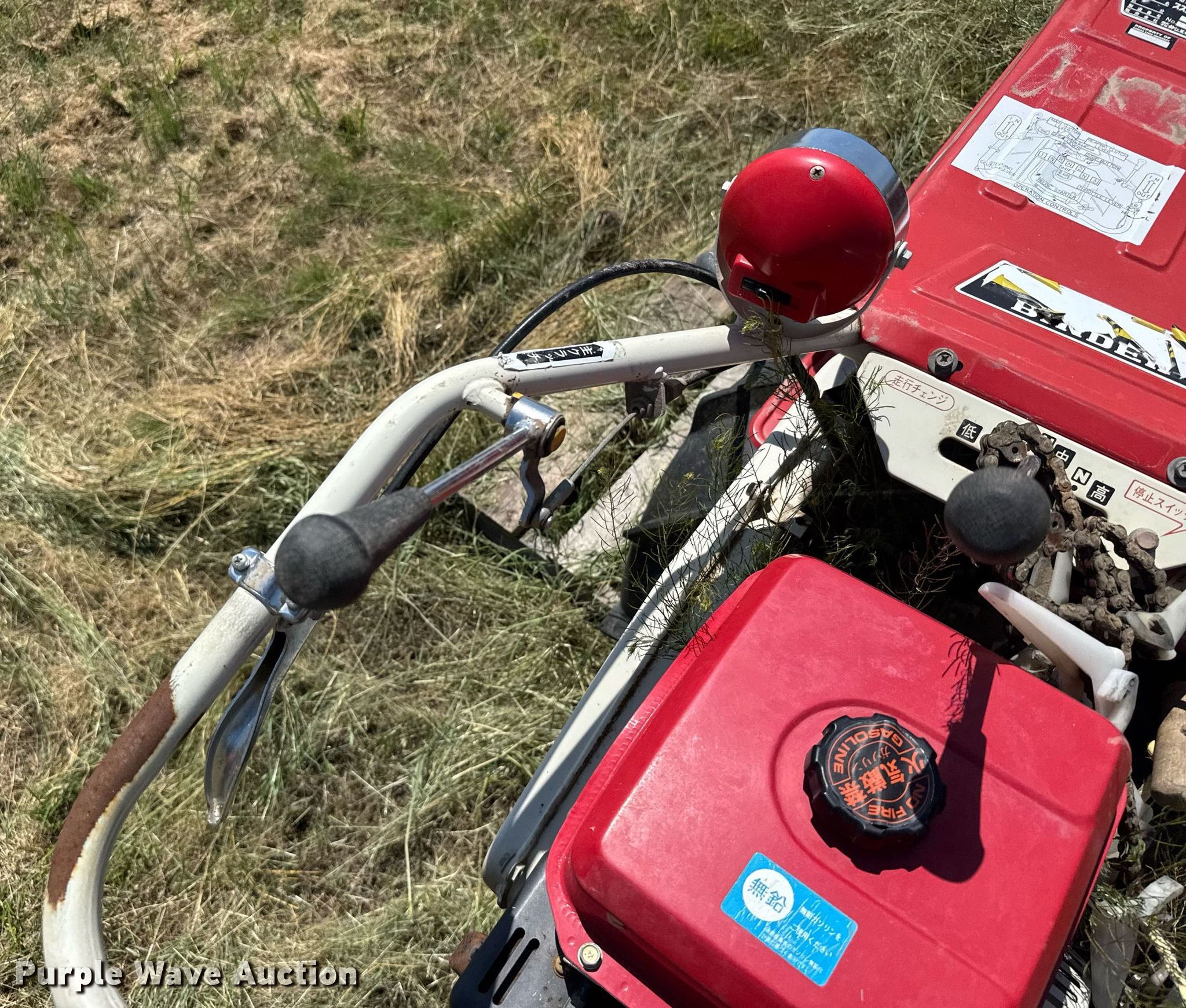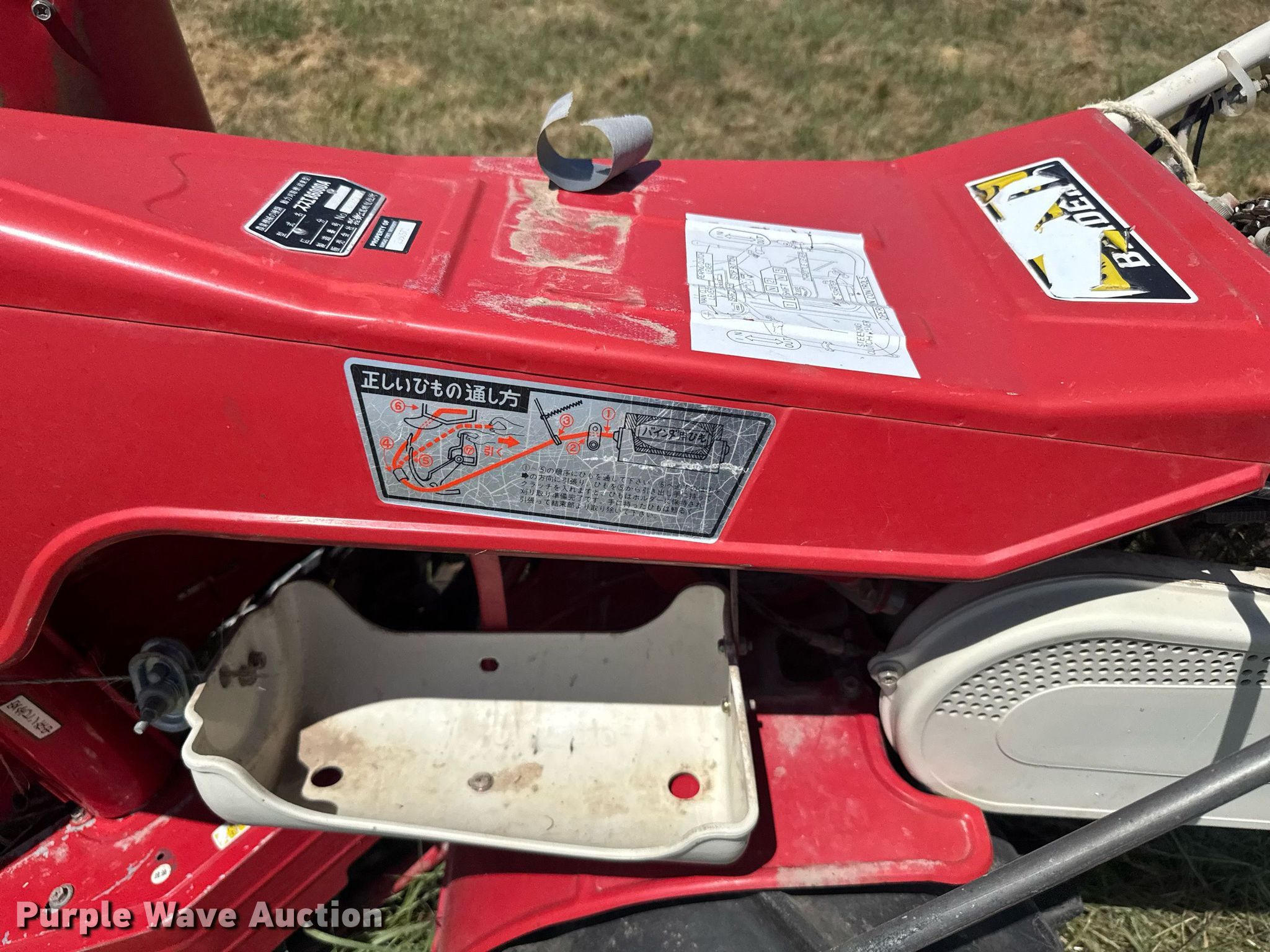(2) Suzue mini reaper binders. Engine. Cylinders: 1, Fuel type: Gas. Transmission Hydrostatic. Features Header Rows: 2, Row spacing: 12". Tires Size: 19x10-8. Notes Unknown operating condition. Western KSU Ag Research Center. Hays, KS 67601