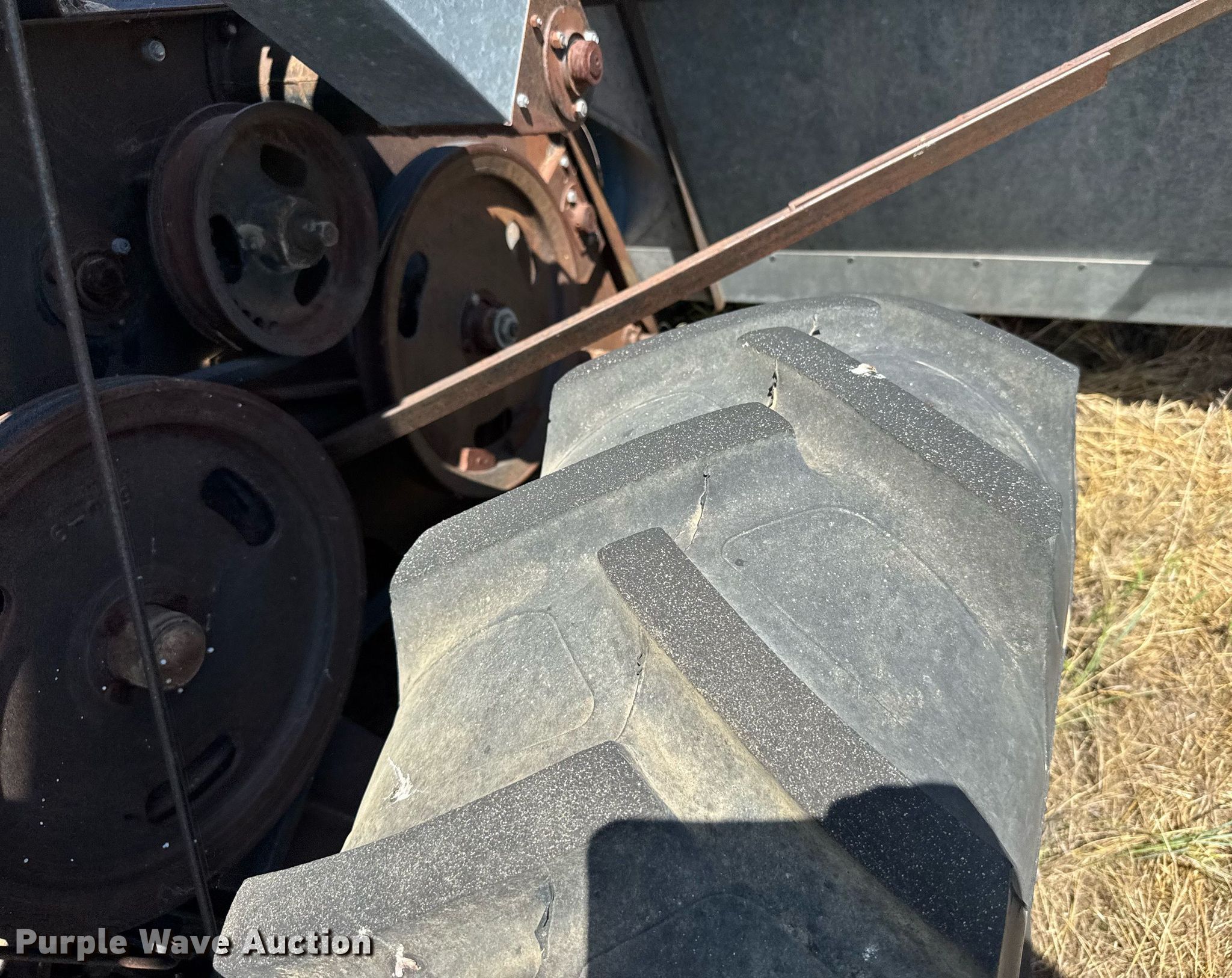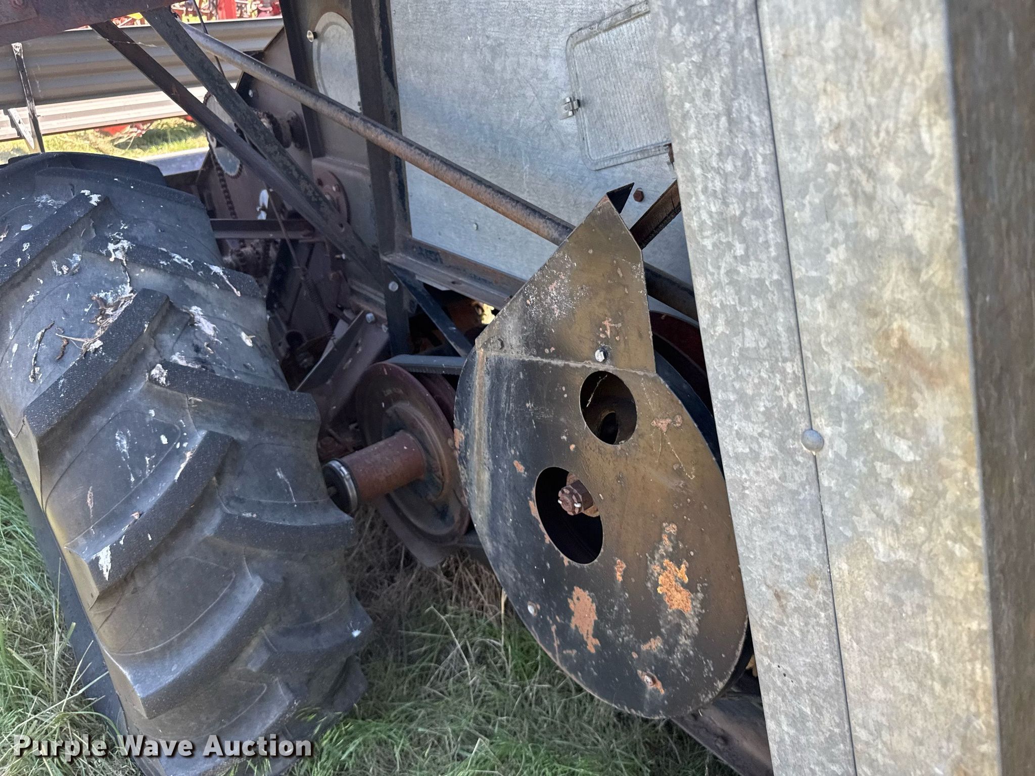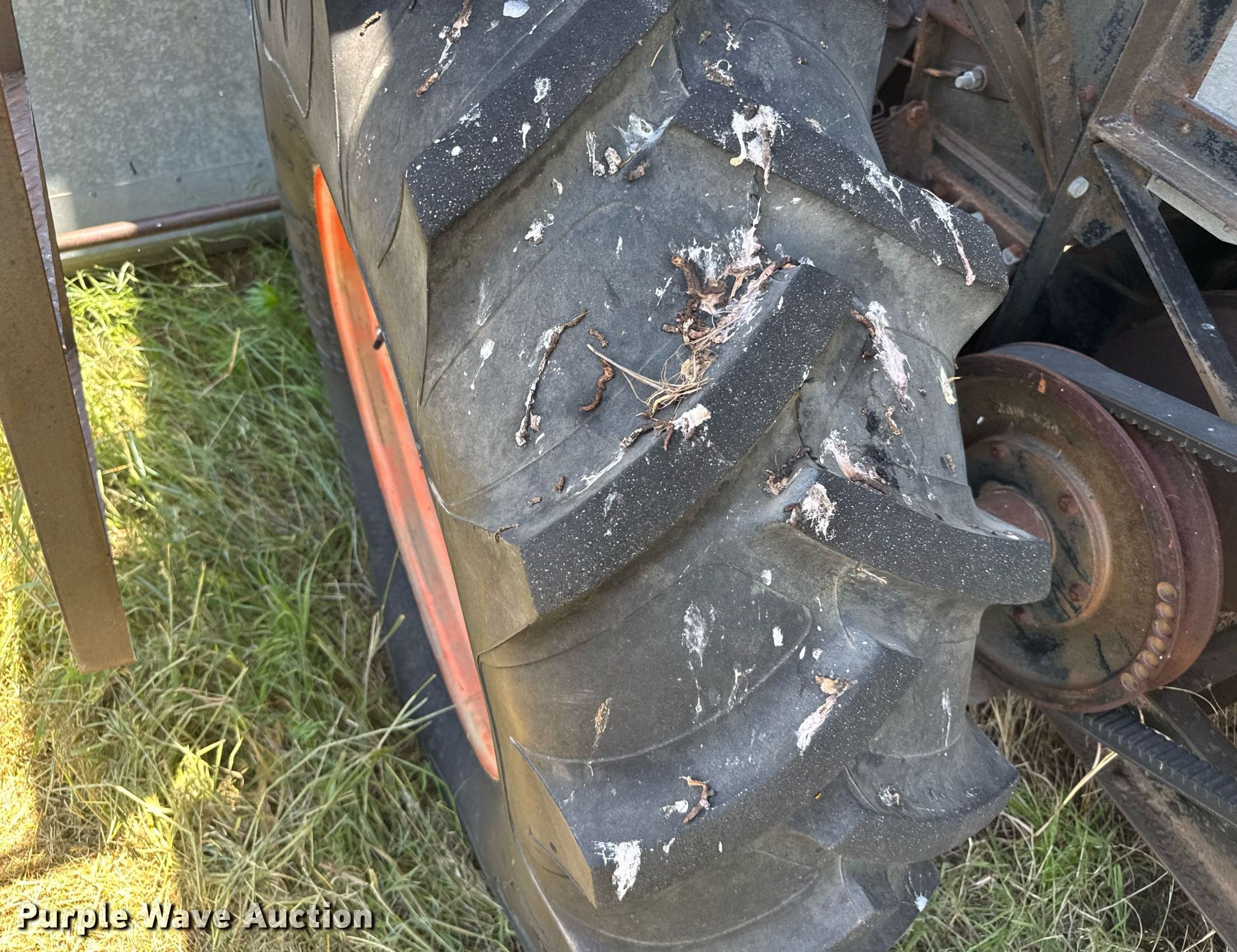 Gleaner Baldwin combine. Hours: Unknown, Serial: A28887. Engine Cylinders: 6, Fuel type: Gas. Transmission Hydrostatic. Operators station Heat. Features Chaff spreader, Header Gleaner, Platform head Rigid, Width: 14', Reel: Bat, Drivelines: Single. Tires Front: 14.0-26, Rear: 6.5-16. Notes Unknown operating condition. Western KSU Ag Research Center. Hays, KS 67601