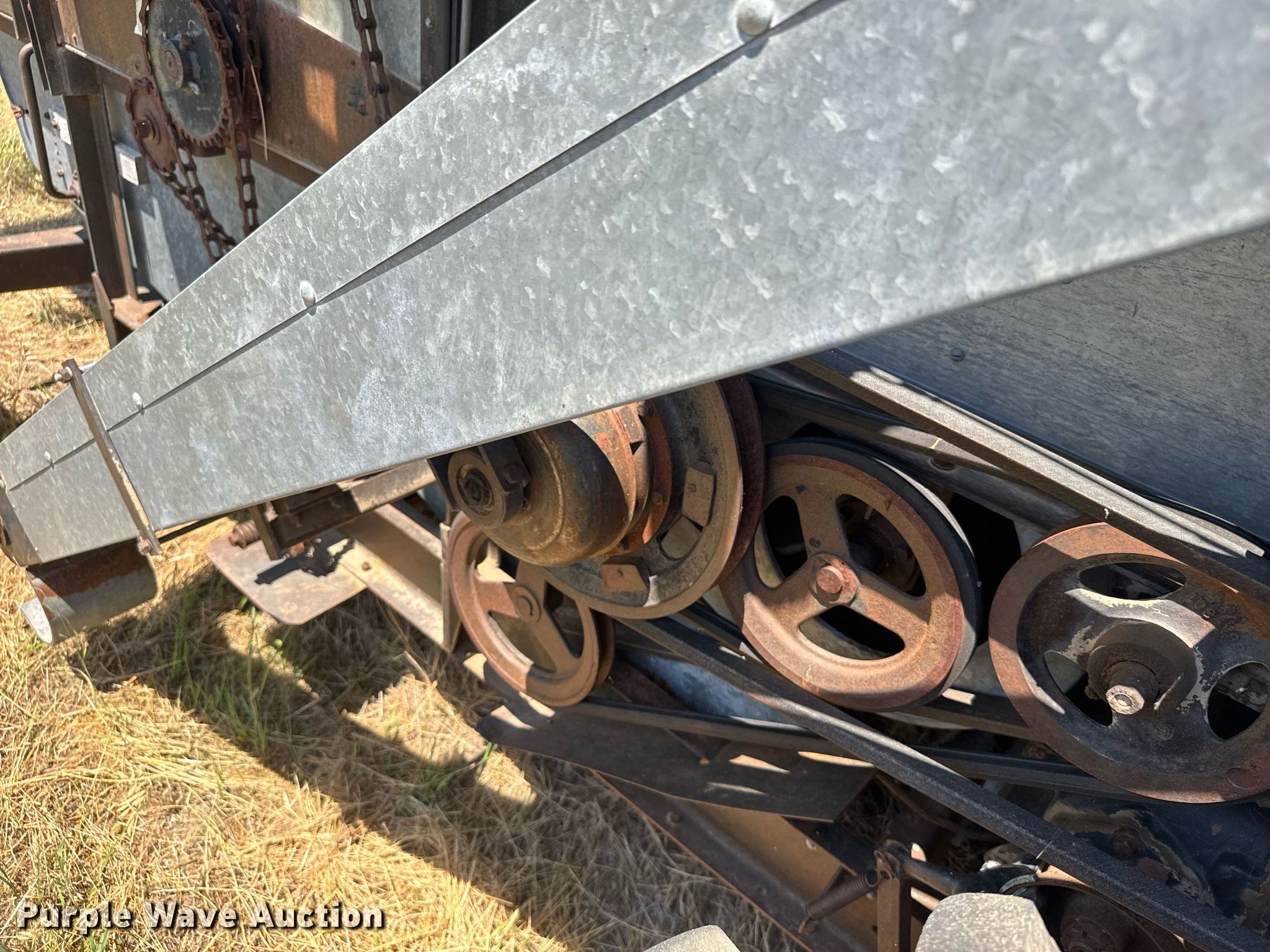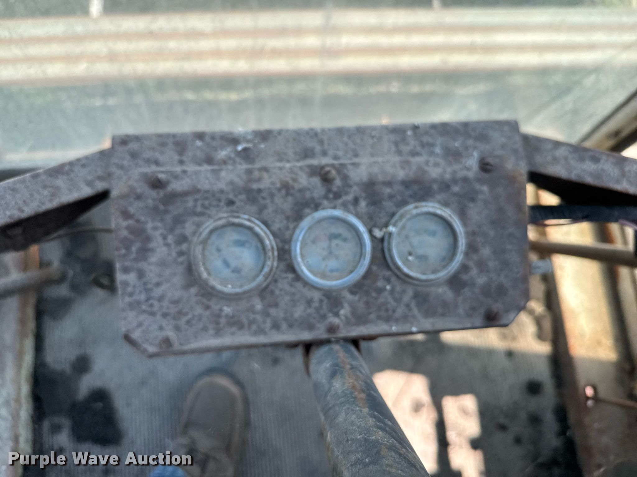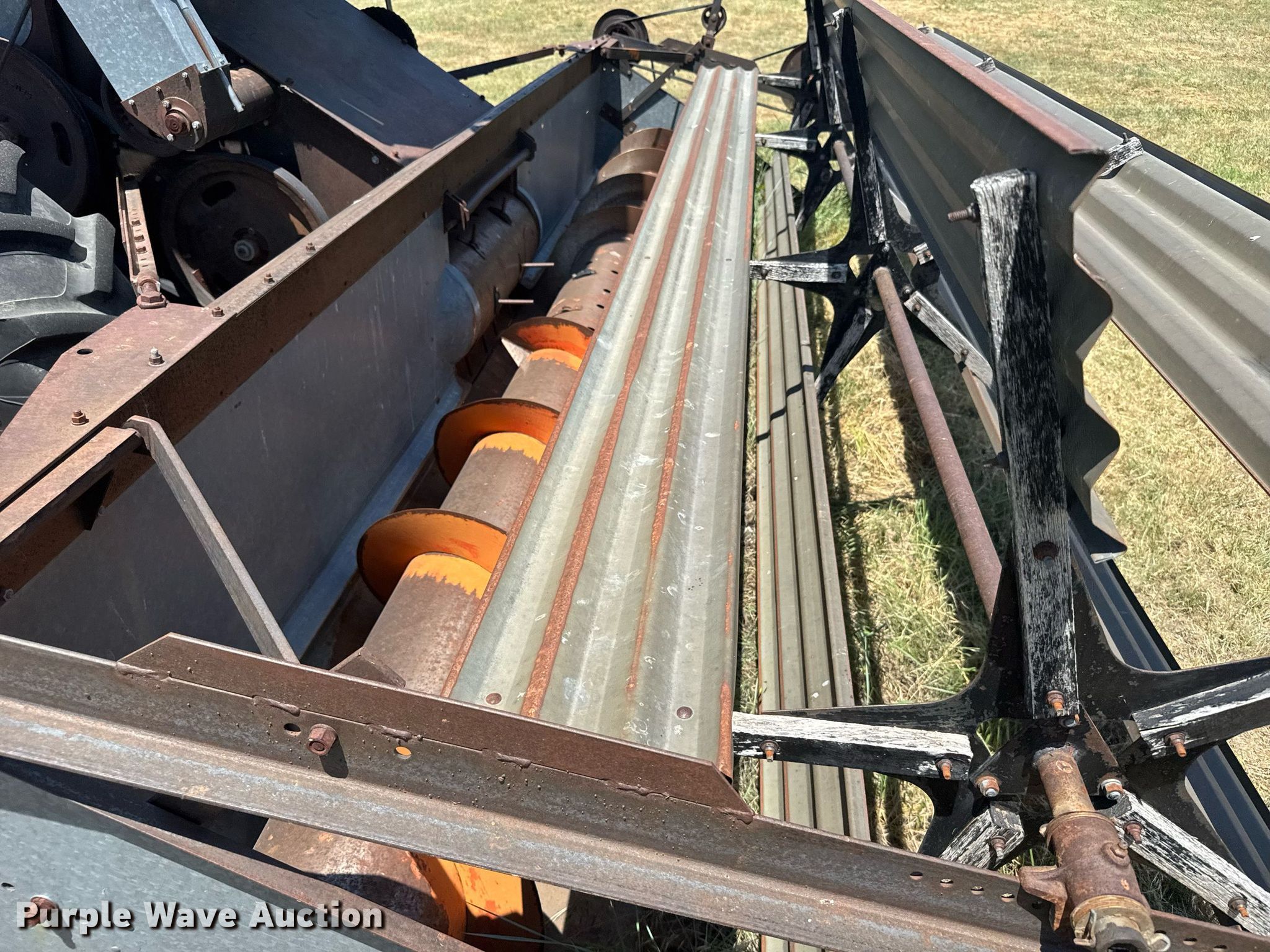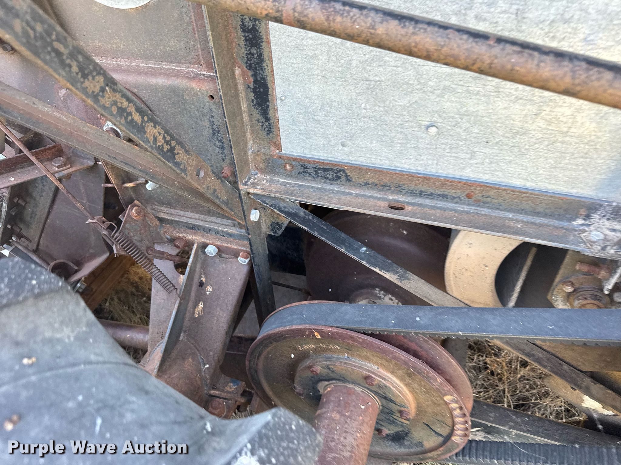 Gleaner Baldwin combine. Hours: Unknown, Serial: A28887. Engine Cylinders: 6, Fuel type: Gas. Transmission Hydrostatic. Operators station Heat. Features Chaff spreader, Header Gleaner, Platform head Rigid, Width: 14', Reel: Bat, Drivelines: Single. Tires Front: 14.0-26, Rear: 6.5-16. Notes Unknown operating condition. Western KSU Ag Research Center. Hays, KS 67601