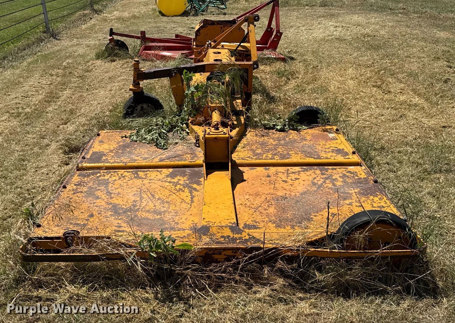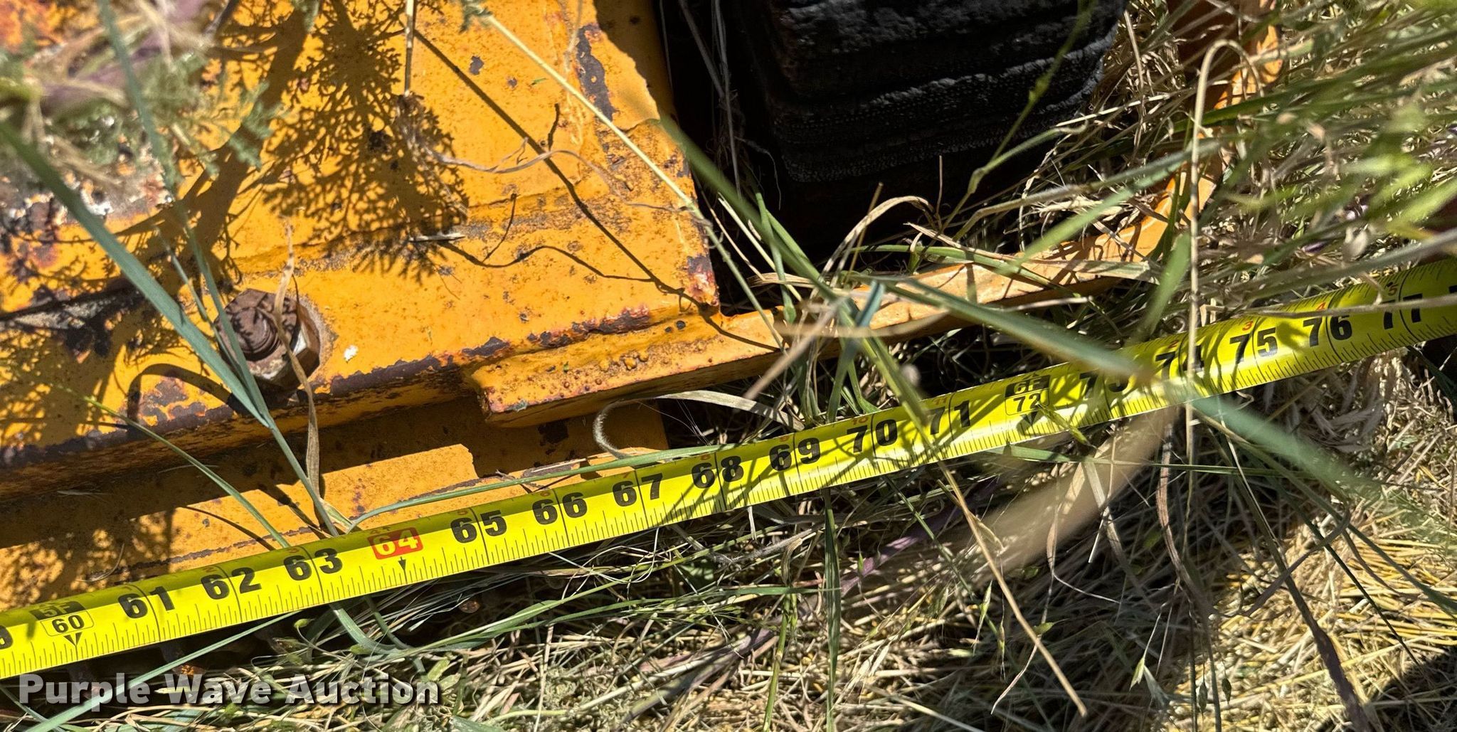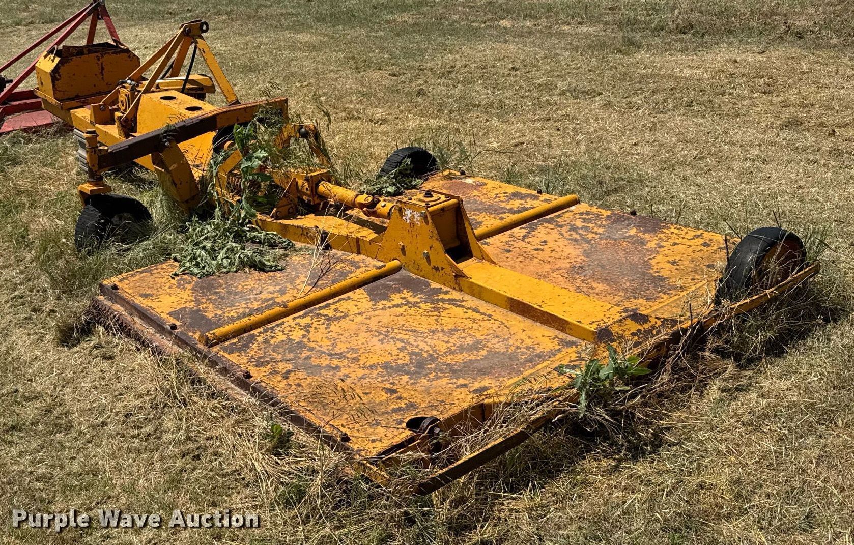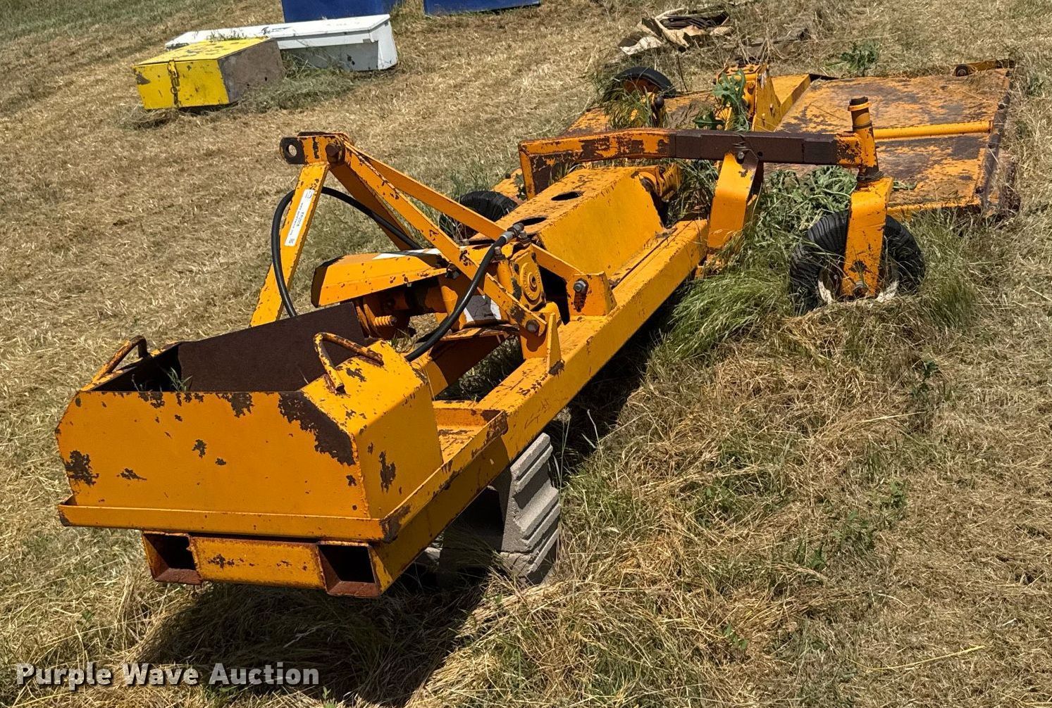 Woods S105 side boom rotary mower. Features. Width: 68", Hydraulic fold, Hitch: Three point. Tires Size: 4x12, Solid. Notes PTO half shaft missing. Western KSU Ag Research Center. Hays, KS 67601