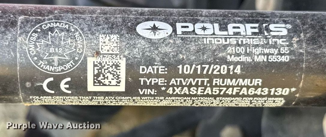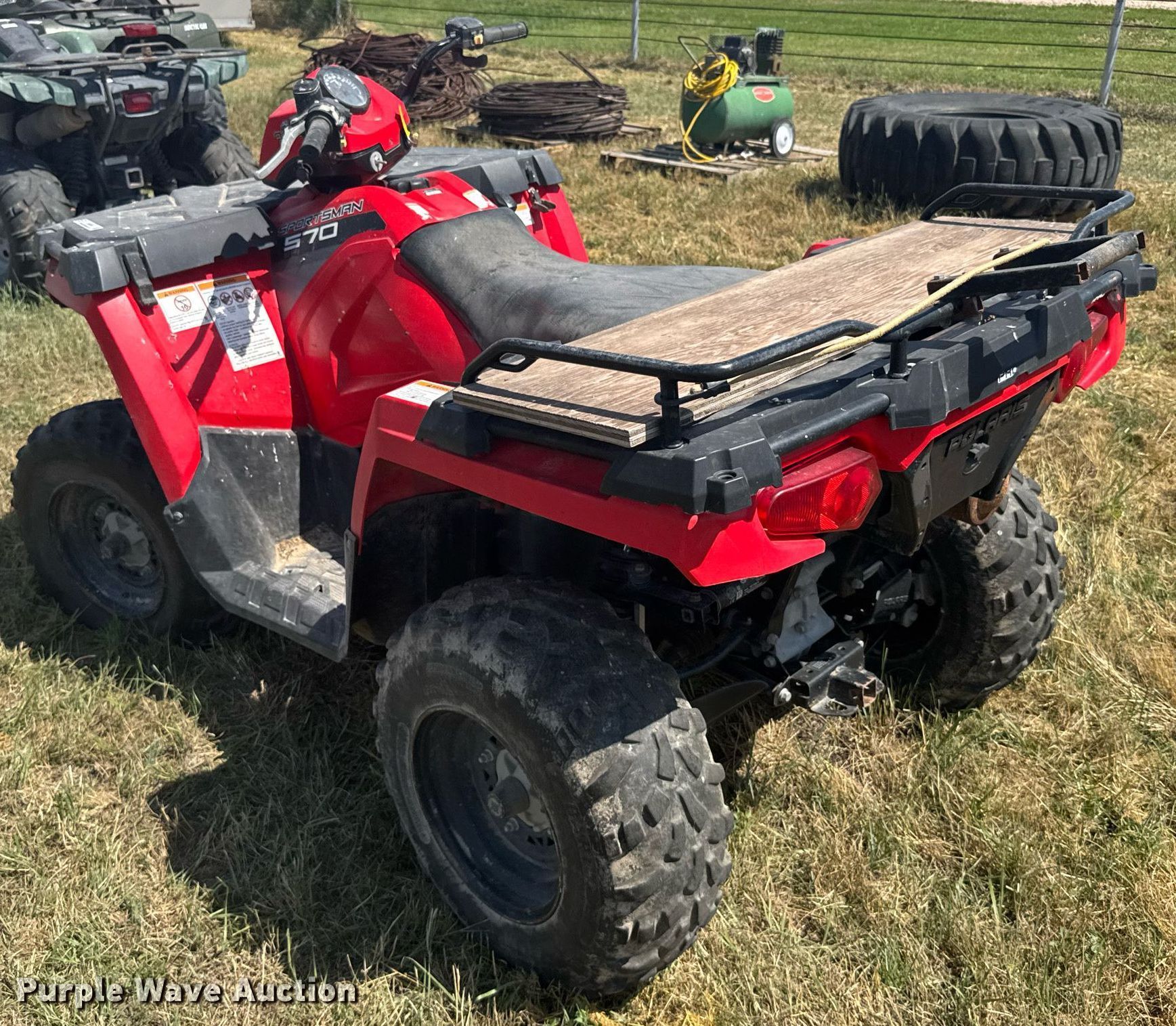 Purple Wave is selling a used ATV in Kansas. This item is a 2015 Polaris Sportsman 570 EFI ATV with the following: Miles: Unknown, Hours: Unknown, VIN: 4XASEA574FA643130
