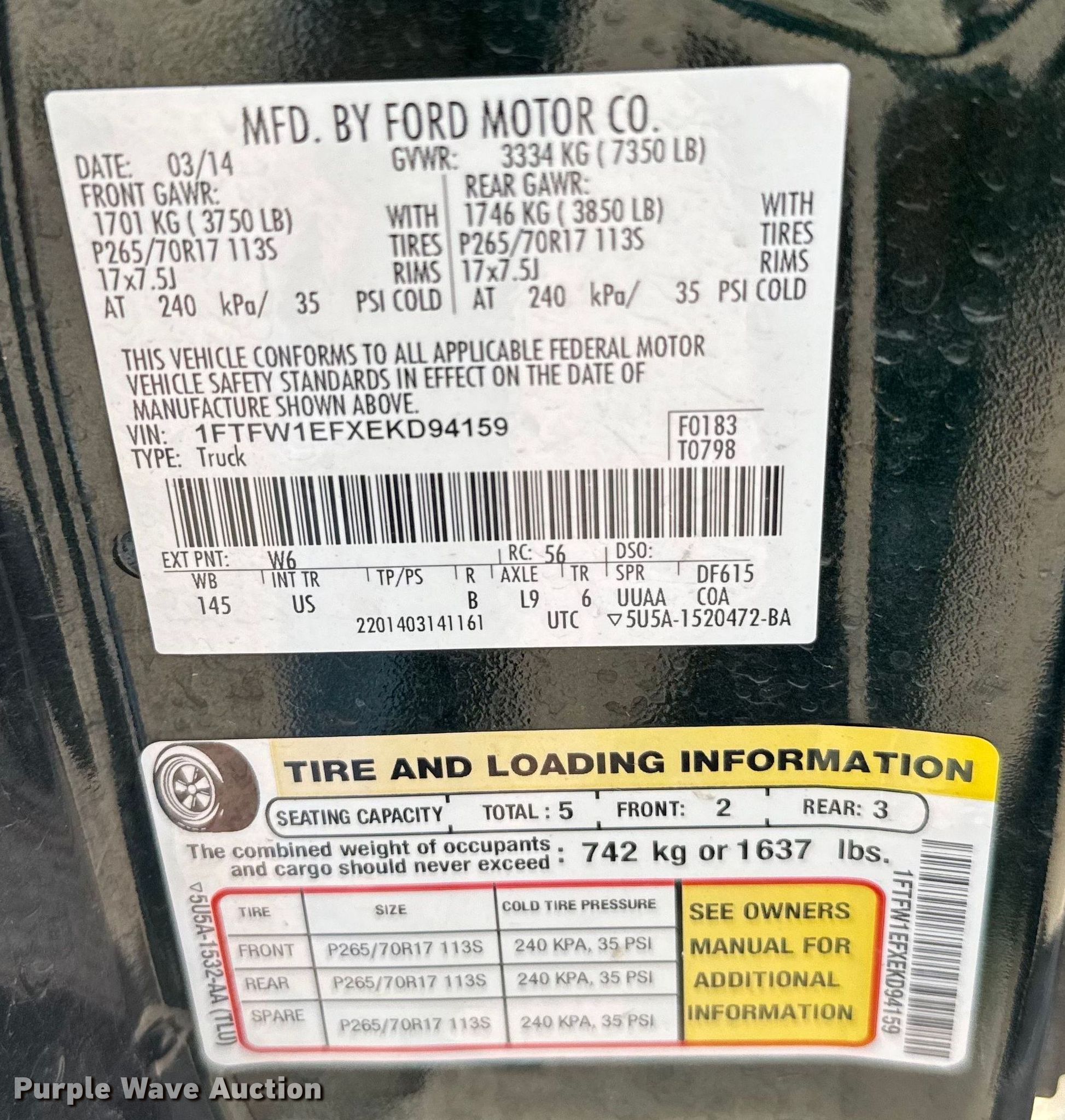 - VIN: 1FTFW1EFXEKD94159