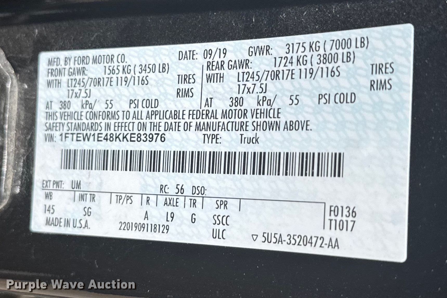 - VIN: 1FTEW1E48KKE83976