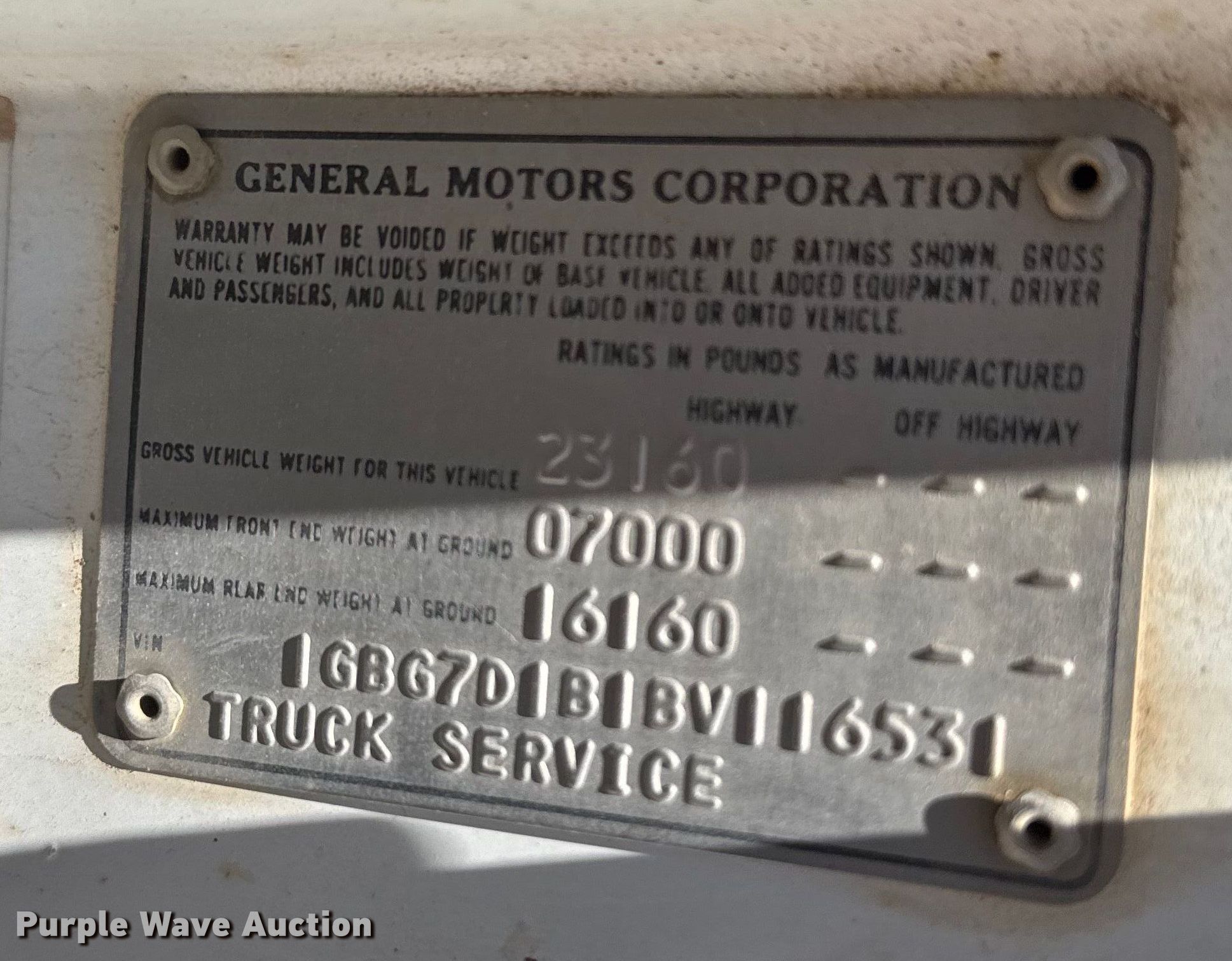 - VIN: 1GBG7D1B1BV116531