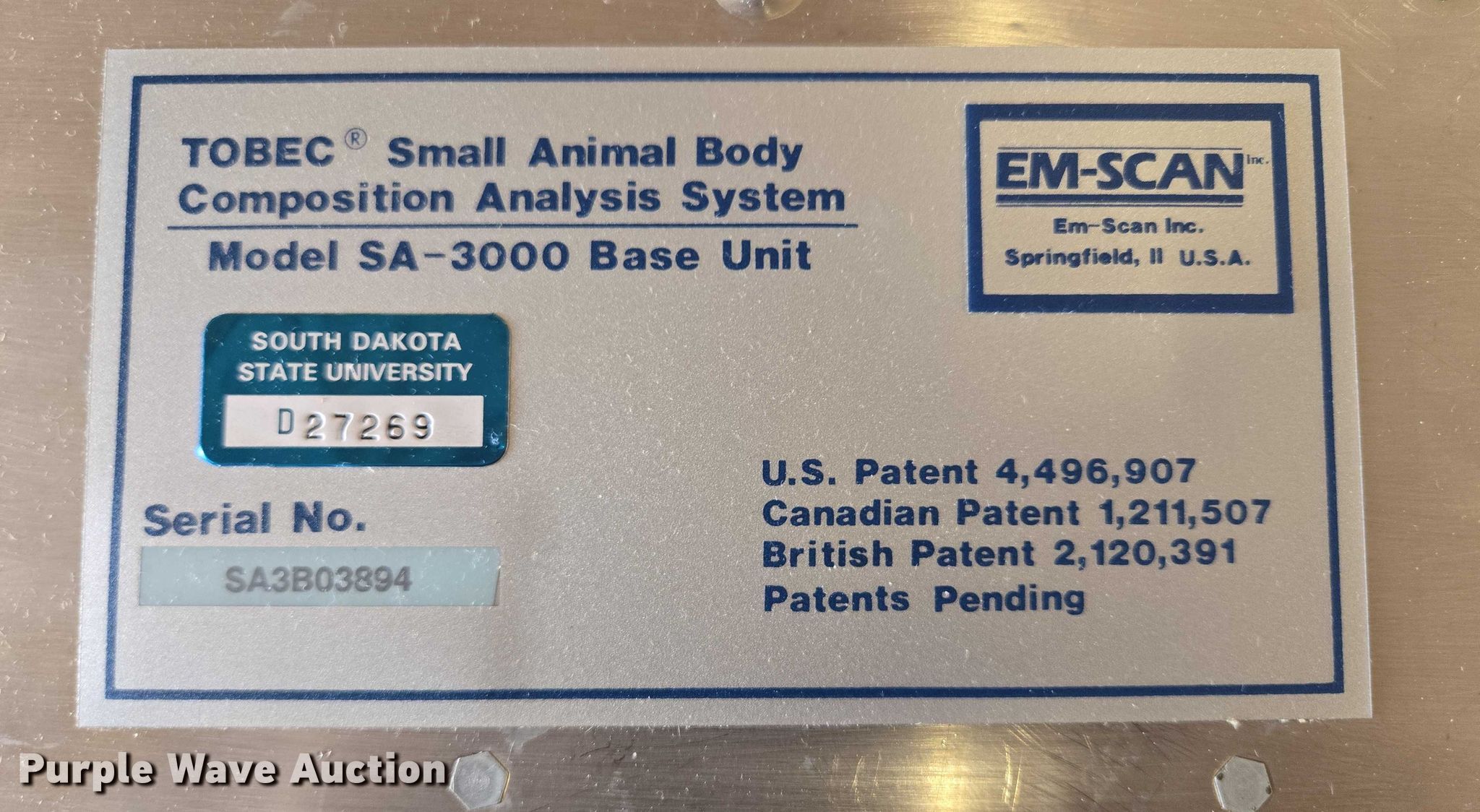Purple Wave is selling a used Other Industrial or Business in South Dakota. This item is a EM-Scan SA-3000 small animal body composition analysis system with the following: Serial: SA3B03894