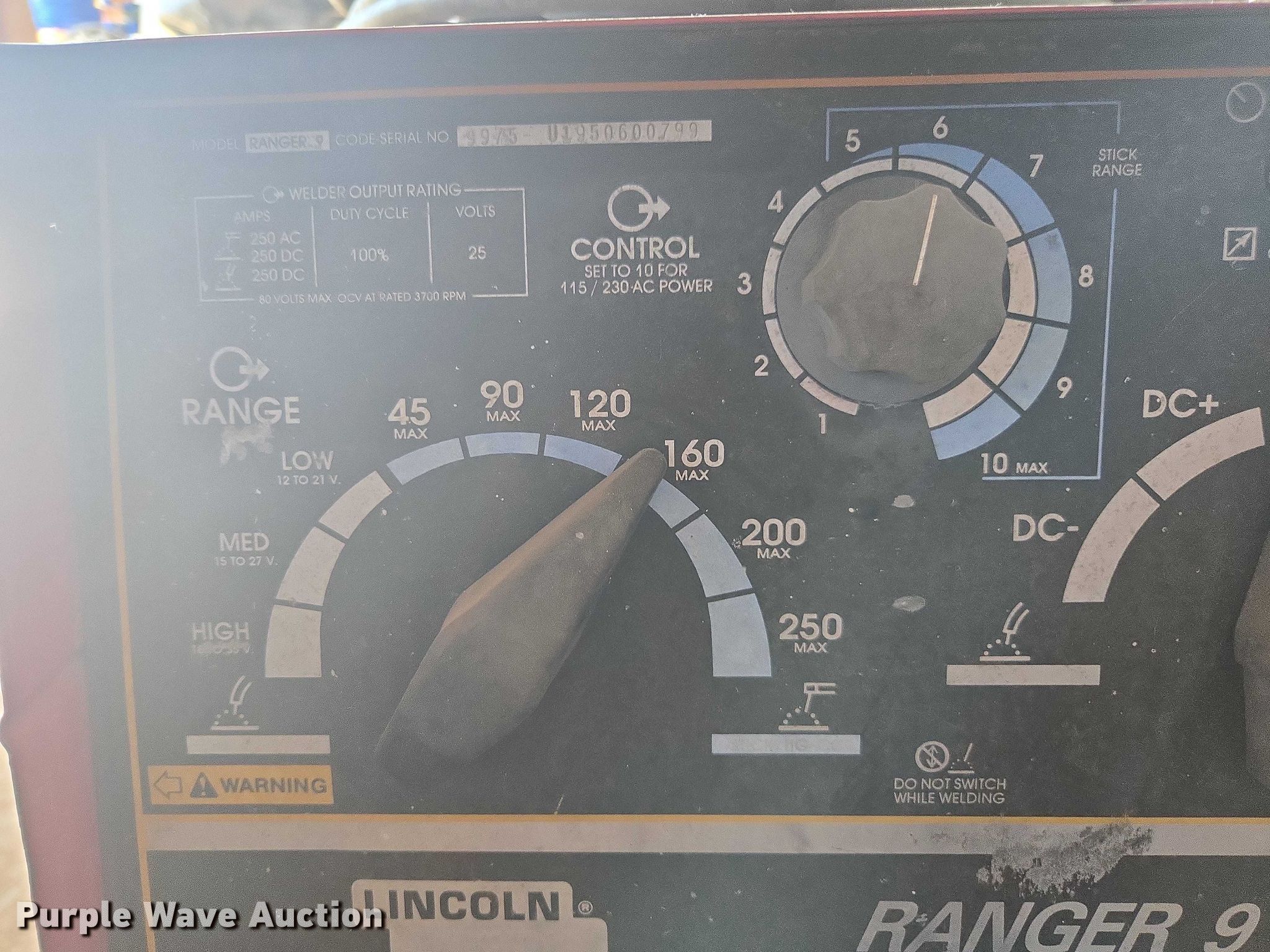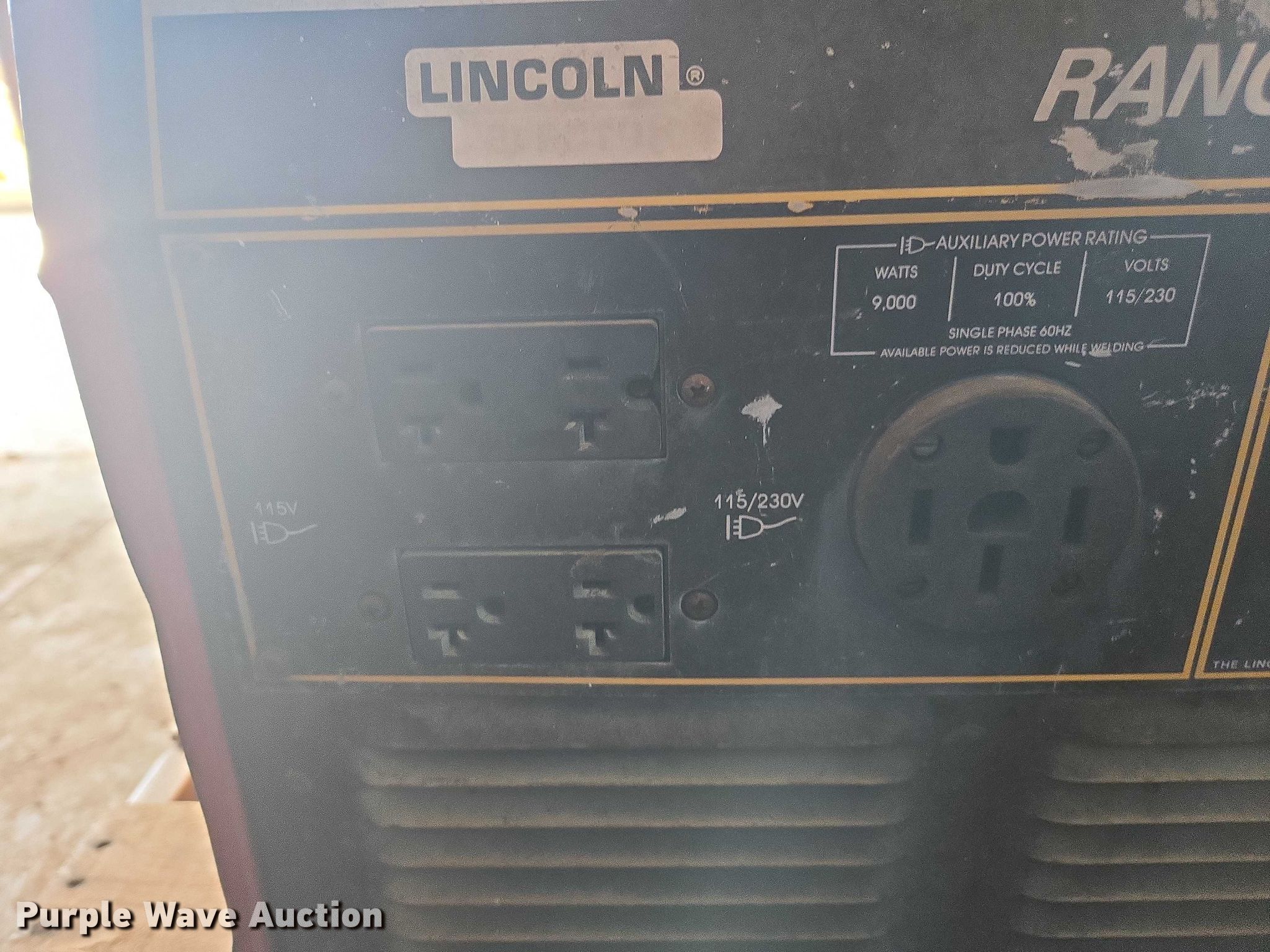 Purple Wave is selling a used Welder (Manual) in California. This item is a Lincoln Electric Ranger 9 welder/generator with the following: Hours: 592 on meter