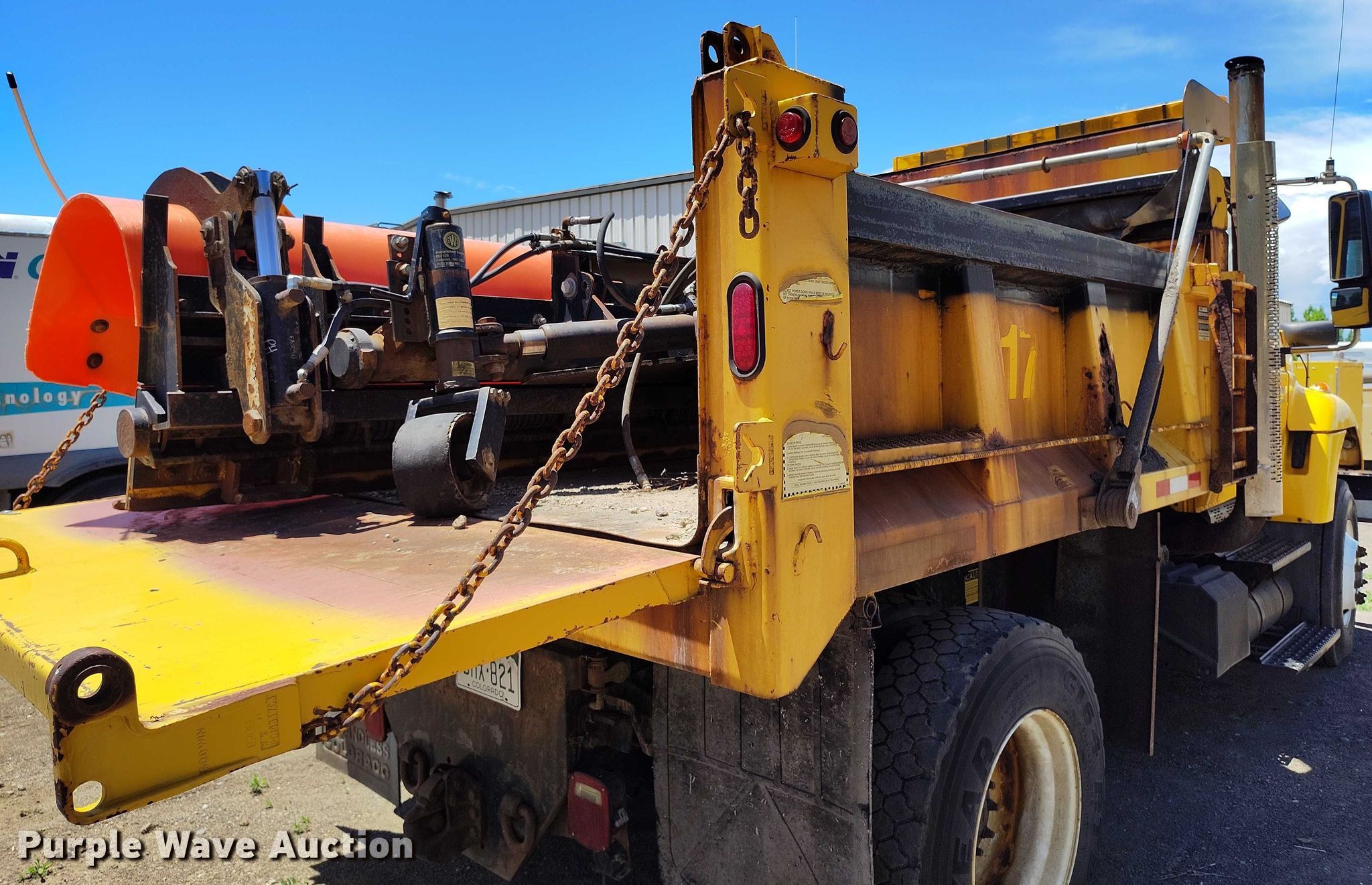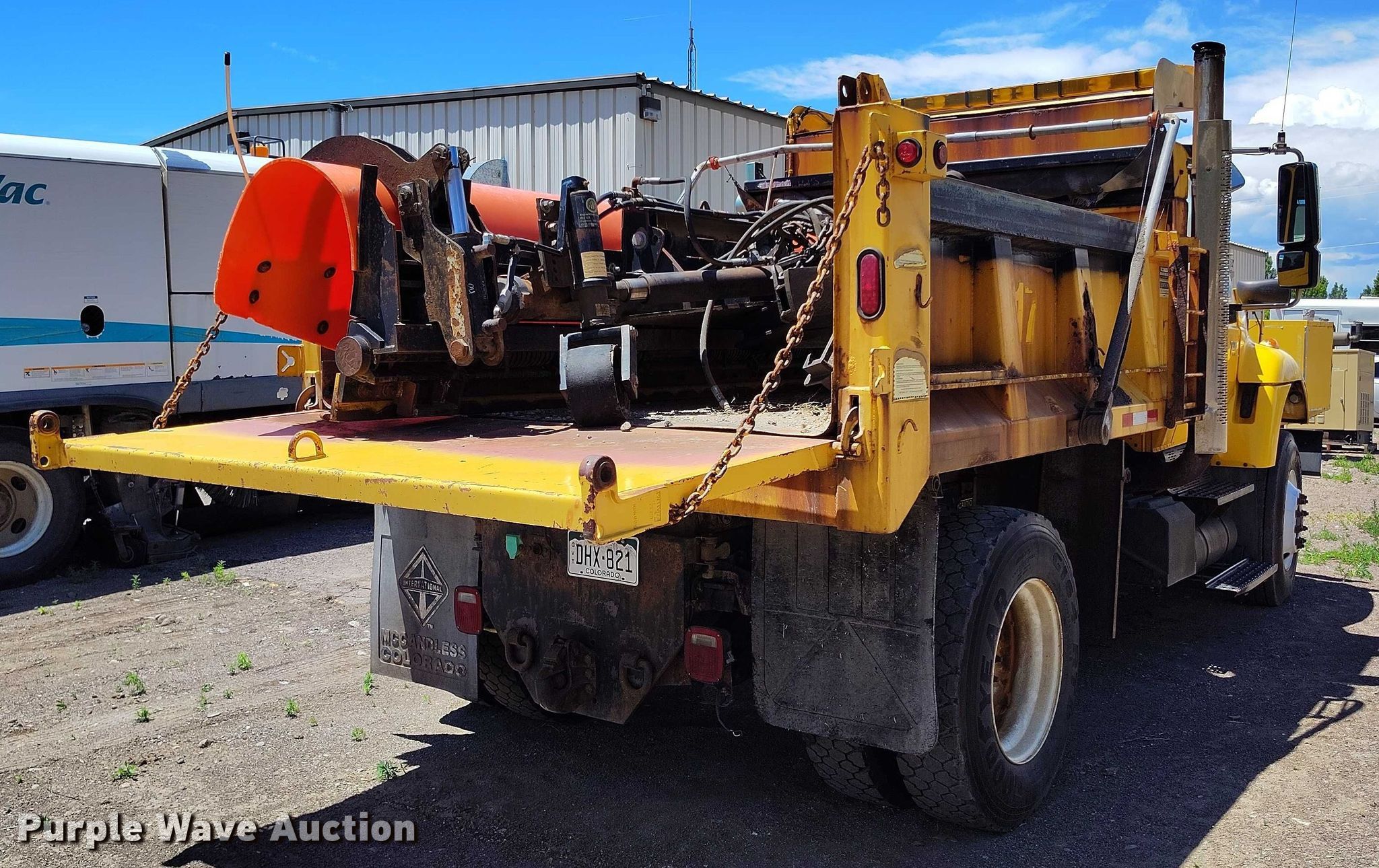 Purple Wave is selling a used Construction Dump Truck in Colorado. This item is a 2005 International 7400 dump truck with the following: Miles: 34,725 on odometer, Hours: 748,471 on meter, VIN: 1HTWDAZRX5J054562