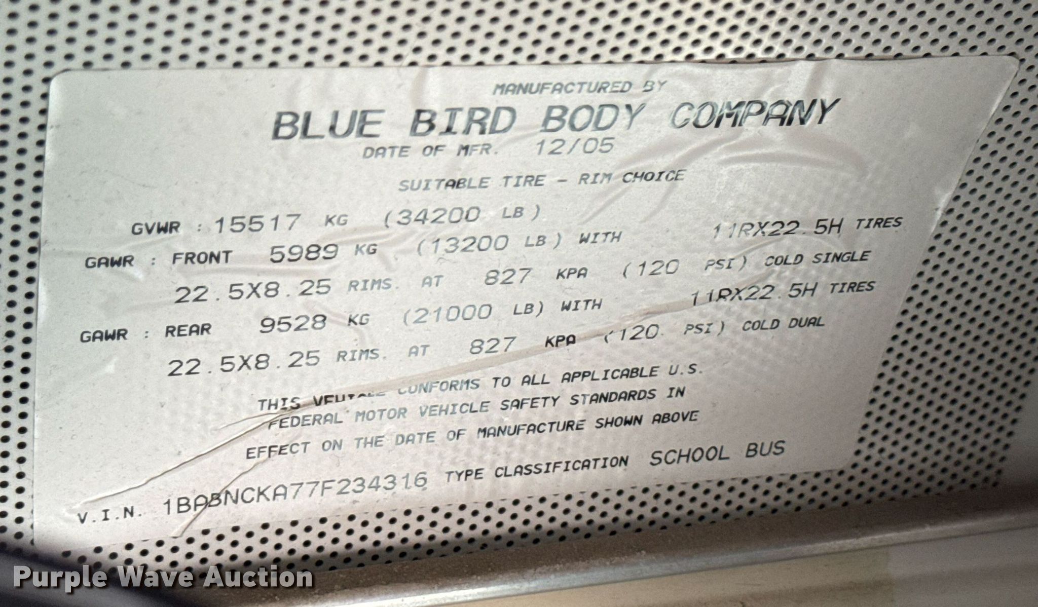 Take a look at this used 2007 Blue Bird All American school bus being sold on July 22nd, 2025 in the SOLD! July 22 Government Auction made by Blue Bird. Take a look at all of the item information below or take a look at similar auctions for Transit Vehicles.