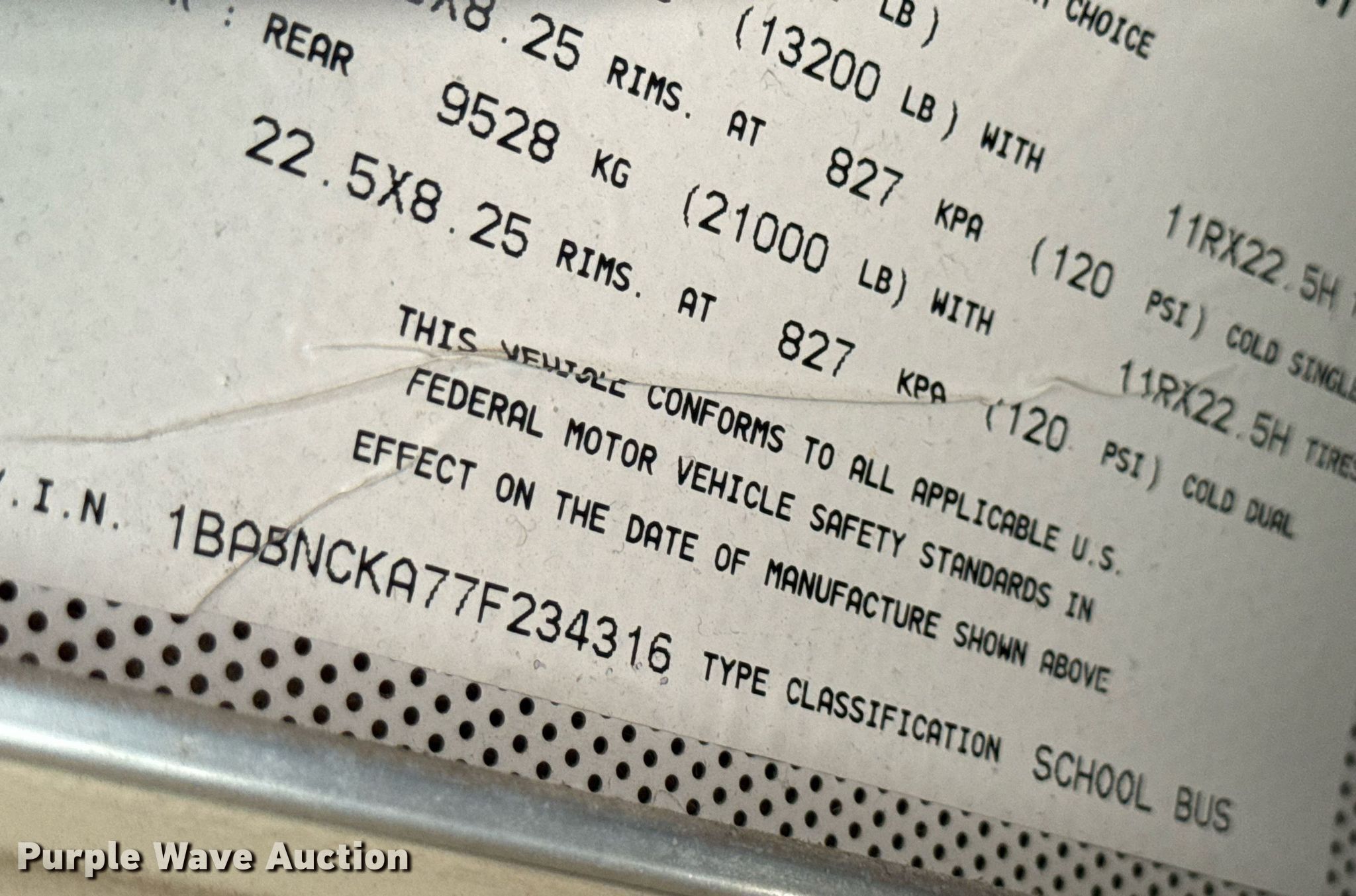 Purple Wave is selling a used Bus in Iowa. This item is a 2007 Blue Bird All American school bus with the following: Miles: 188,836 on odometer, Hours: 8,054 on meter, VIN: 1BABNCKA77F234316, Unit #: 9