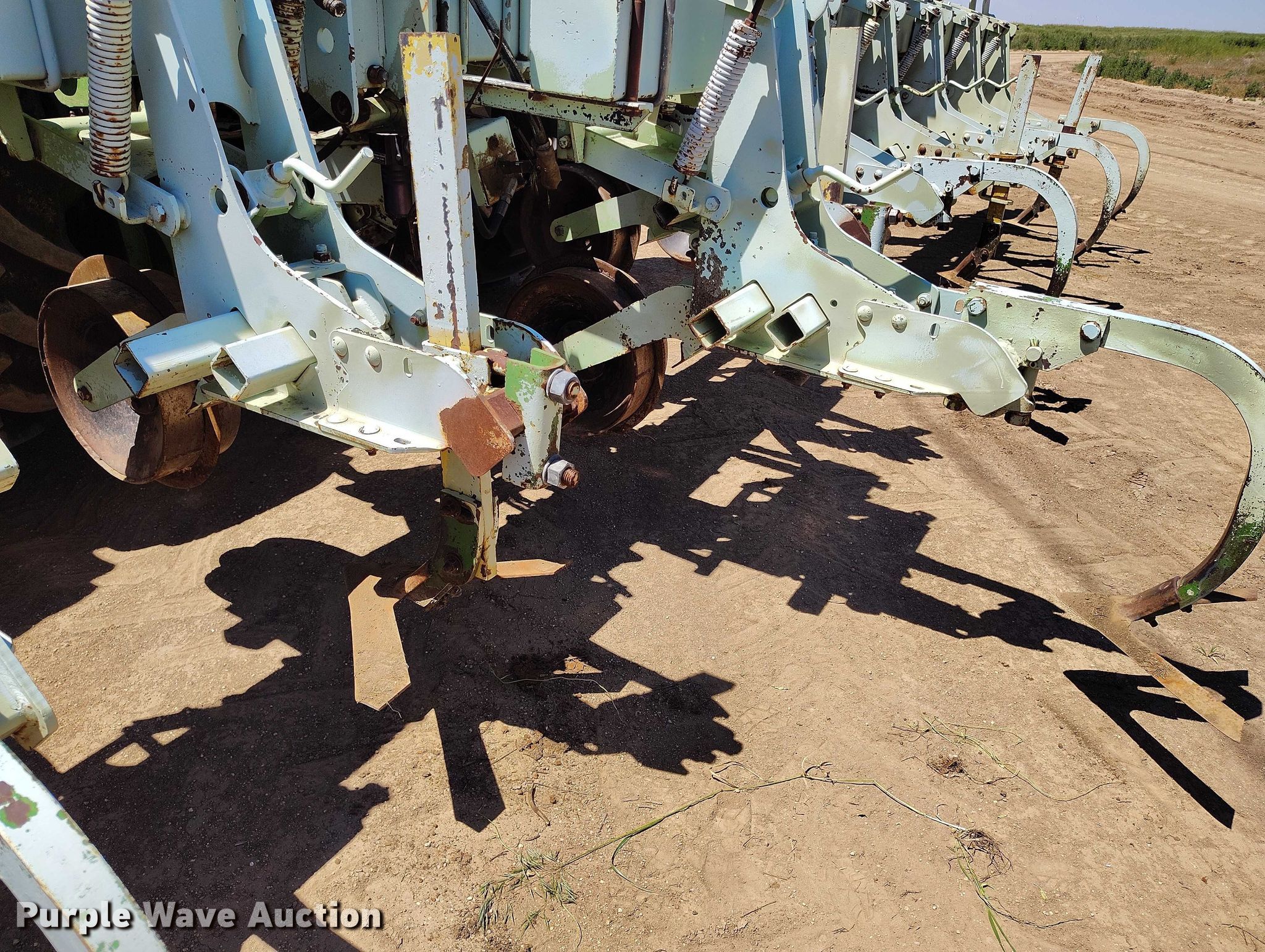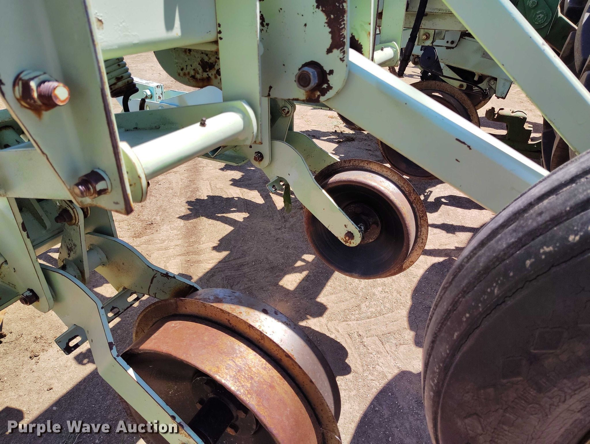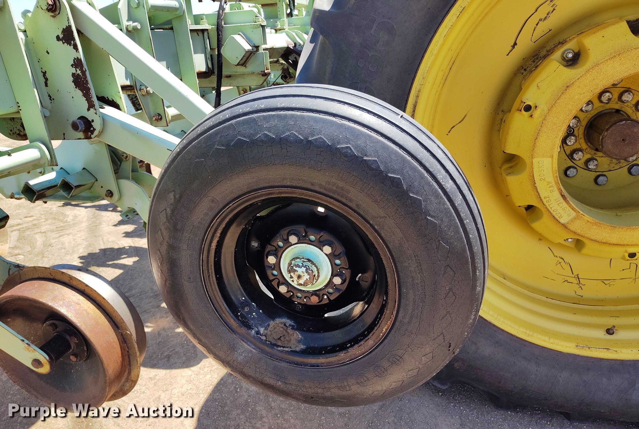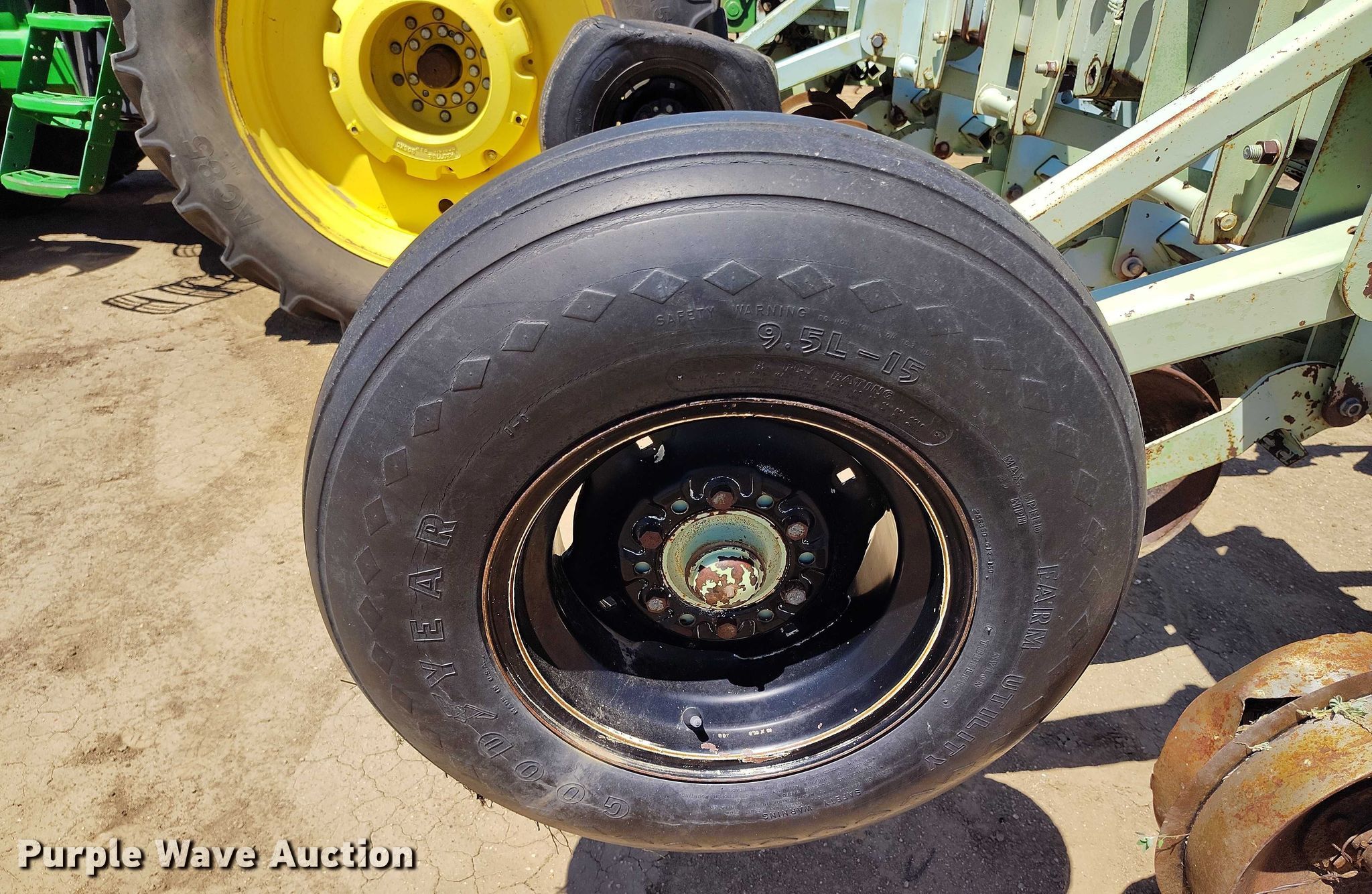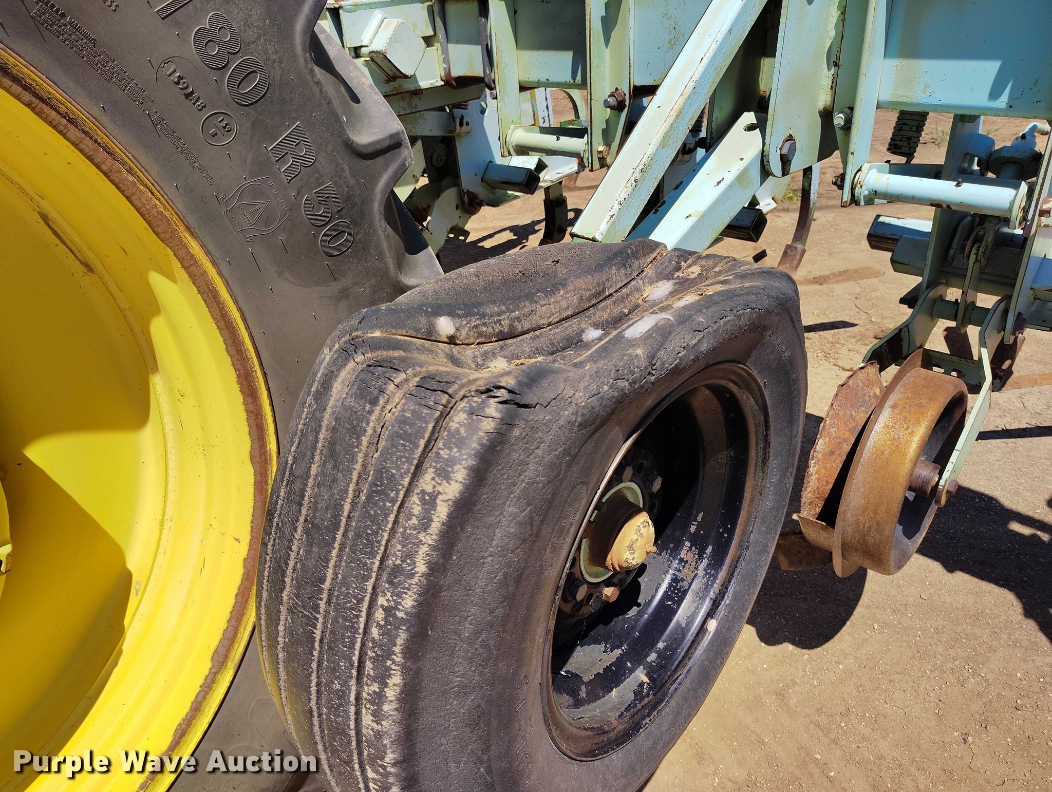 Orthman 332-015 row crop cultivator. Overall width: 34' 4", Serial: 684-026. Features Number of rows: 12, Row spacing: 30", Disk openers: Single, Hydraulic fold. Tires Tire size: 9.5L15. Notes (2) disk openers damaged, may need replaced, Tire damaged, needs replaced. Midwest Harvesting LLC. Matheson, CO 80830