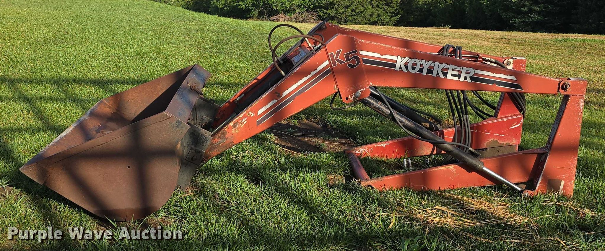 1974 International Farmall 966 tractor. Hours: Unknown, Serial: 2510175U023103. Engine Cylinders: 6, Fuel type: Diesel. Transmission Torque amplifier, 16F - 4R. Features PTO: 540, 1000, Three point Top link, Hydraulic remote sets Rear: 2, Loader Koyker K5, Controls: Two-lever, Bucket Width: 85.5", Westendorf bale spear Length: 43", Mohawk 160 blade Serial: 3980, Width: 96". Tires Front: 7.50-18, Rear: 18.4-34. Notes Hour meter illegible, Non-operational bucket control lever. Robinson, KS 66532
