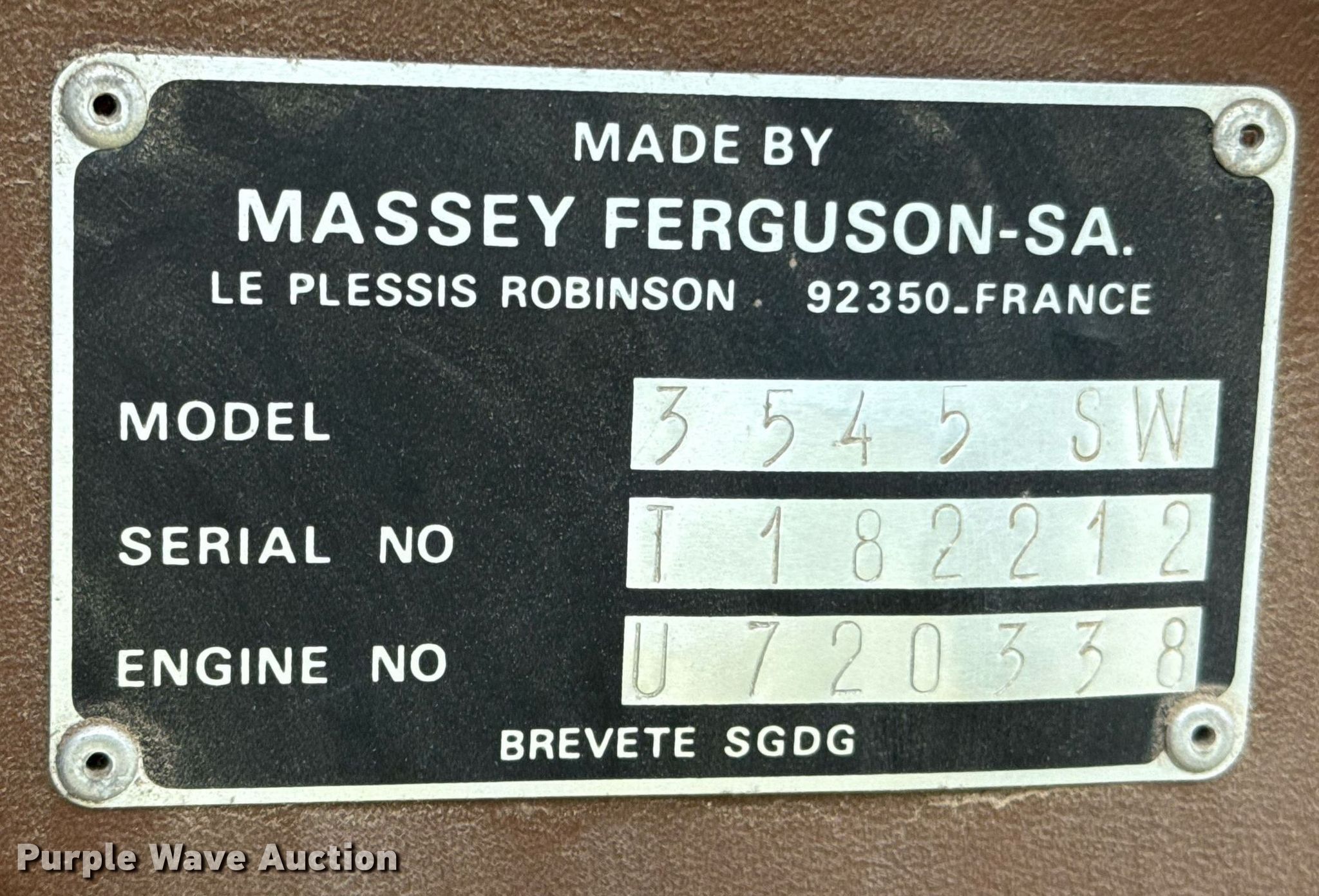 Purple Wave is selling a used Tractor in Texas. This item is a 1984 Massey Ferguson 3545 tractor with the following: Hours: 4,466 on meter, Serial: T182212