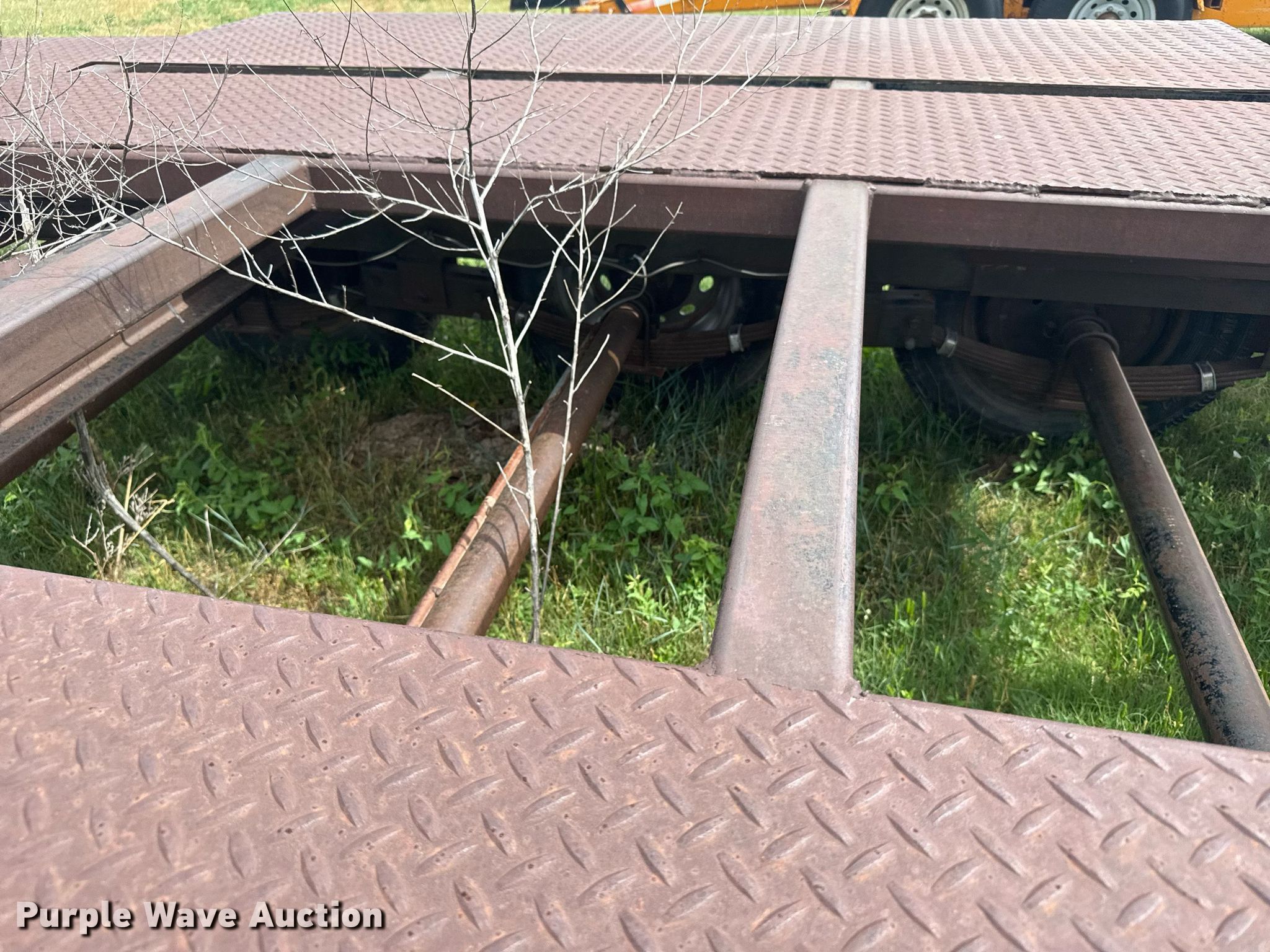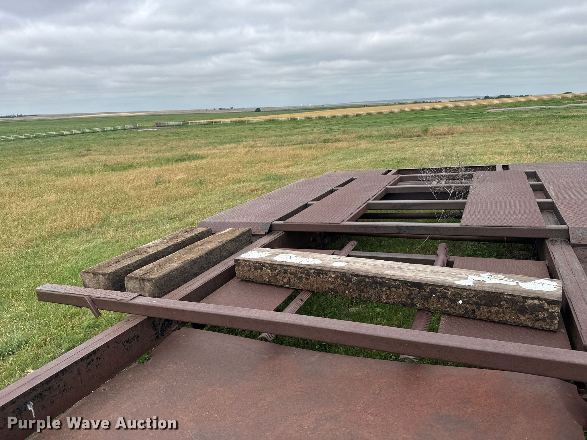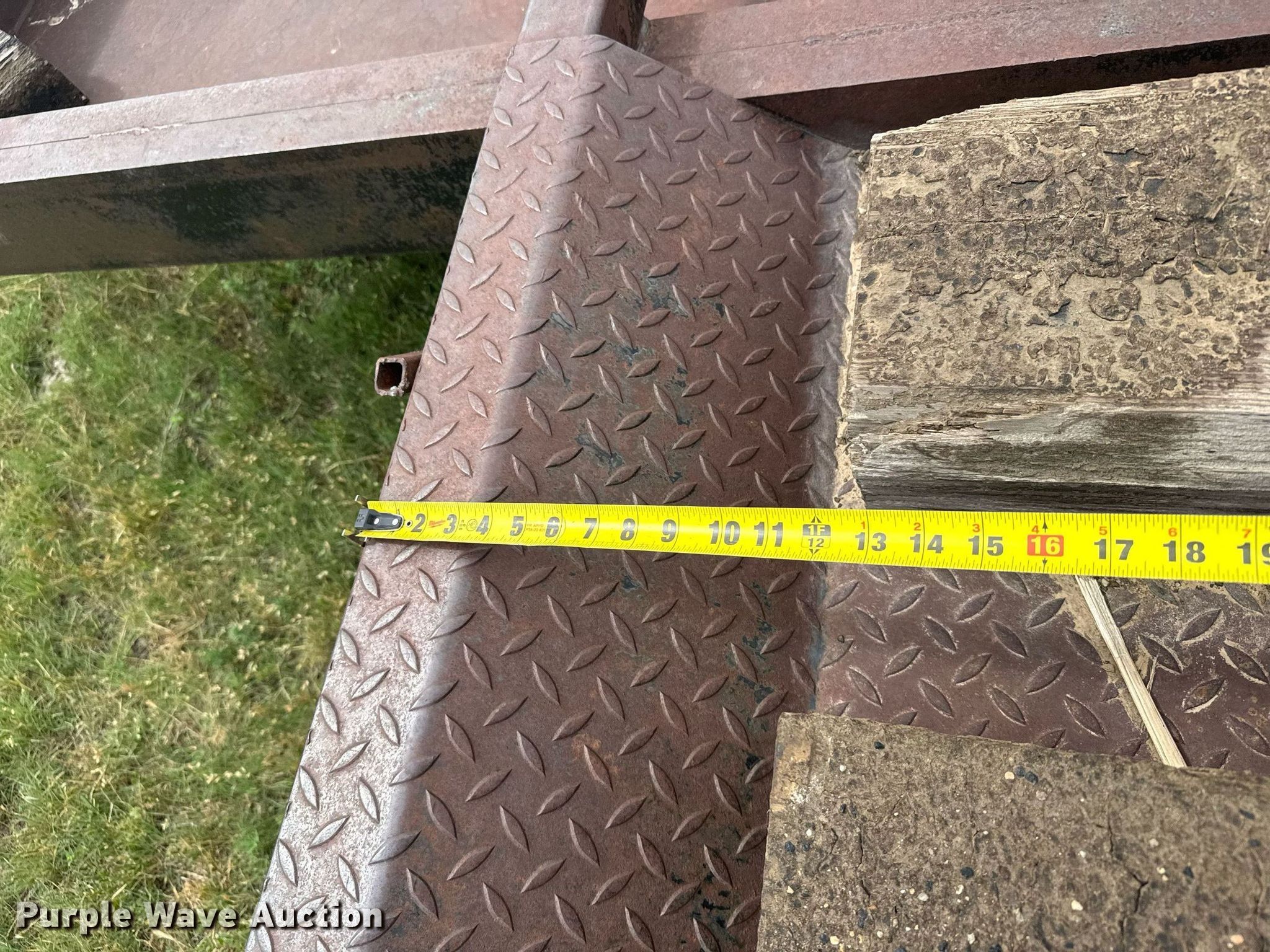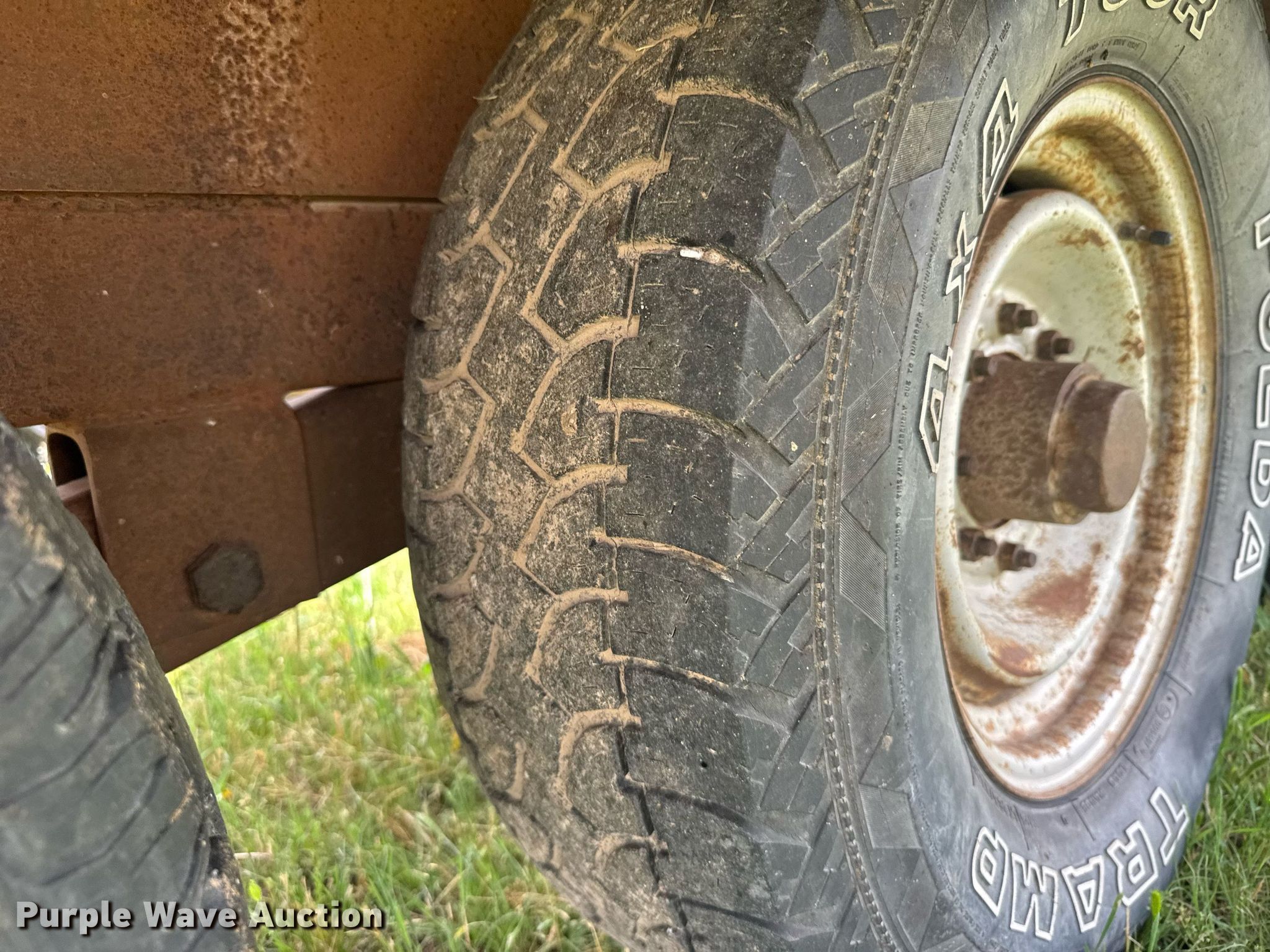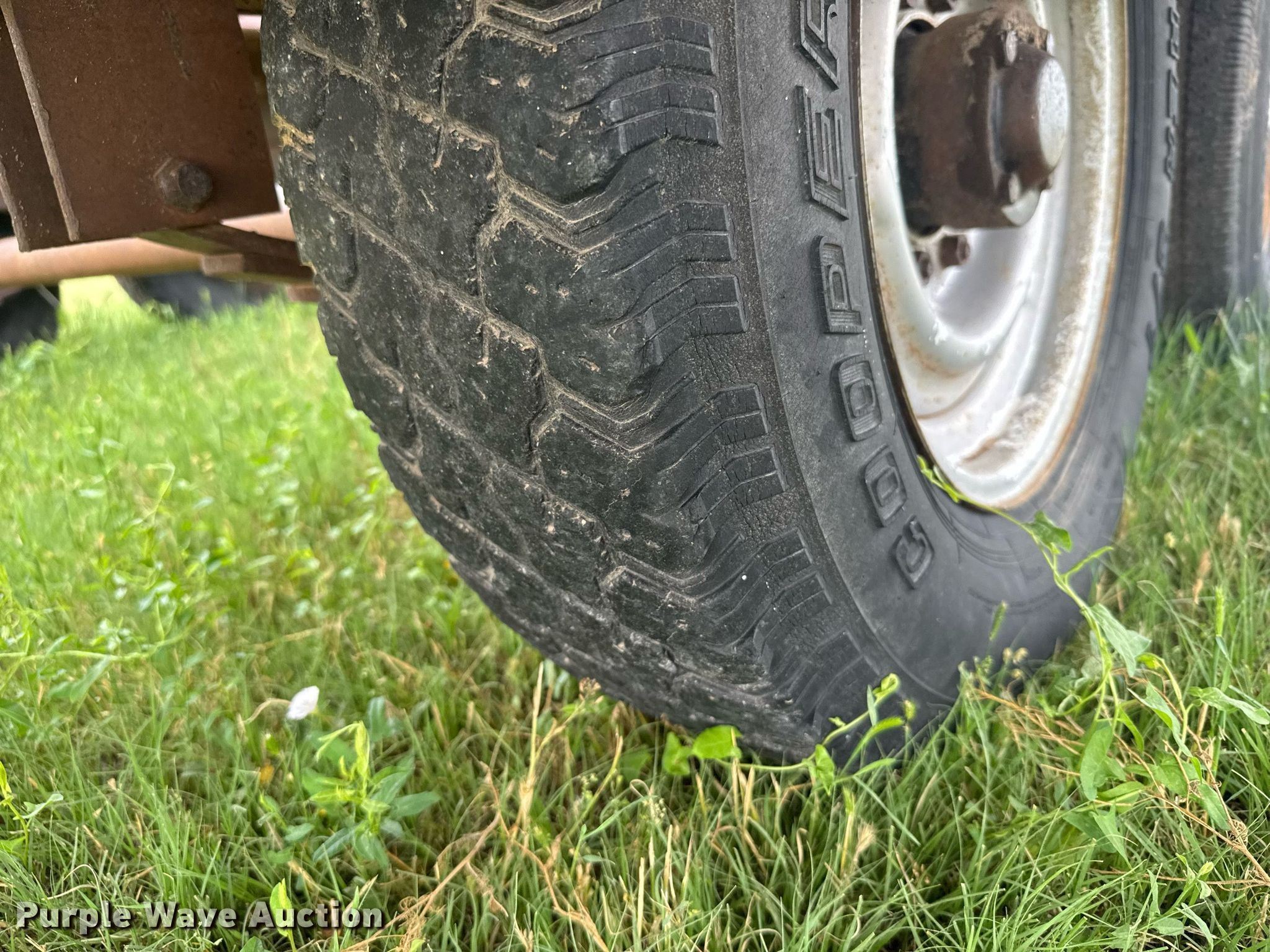 Jantz MFG 1400 swather / windrower trailer. Serial: 113. Dimensions Overall: 32' L x 144" W, Deck: 14' L x 144" W, Ramps: Manual Length: 64". Features Deck type: Steel, Maximum width: 12'. Chassis Hitch: Pintle, Landing gear: Single, Suspension: Spring, Brakes: Electric, Axles: Triple. Tires Aluminum wheels, Size: 265/85R16. Transfer of ownership documentation will be a bill of sale. Ness City , KS 67560