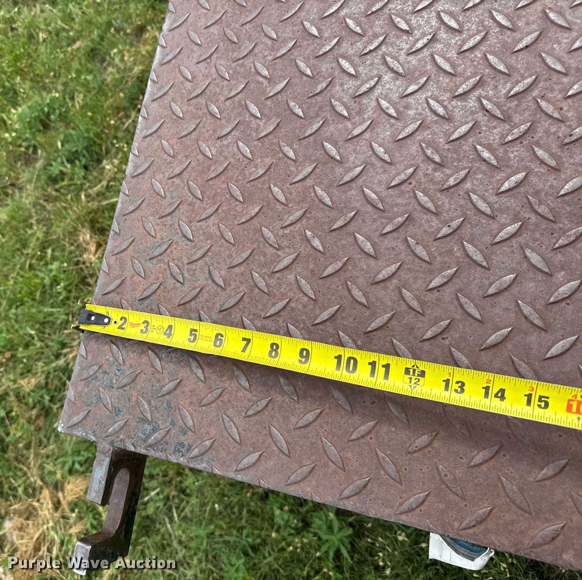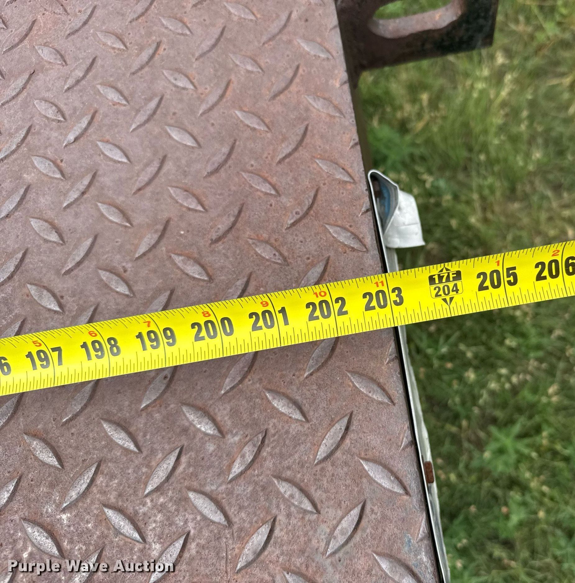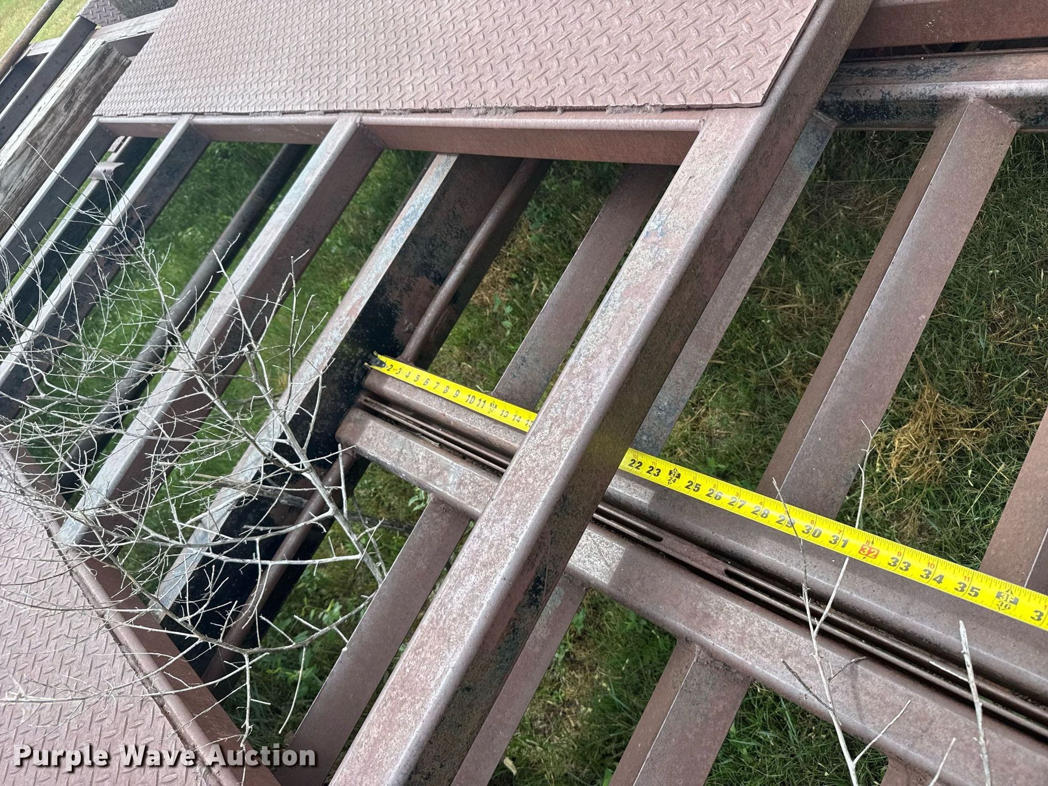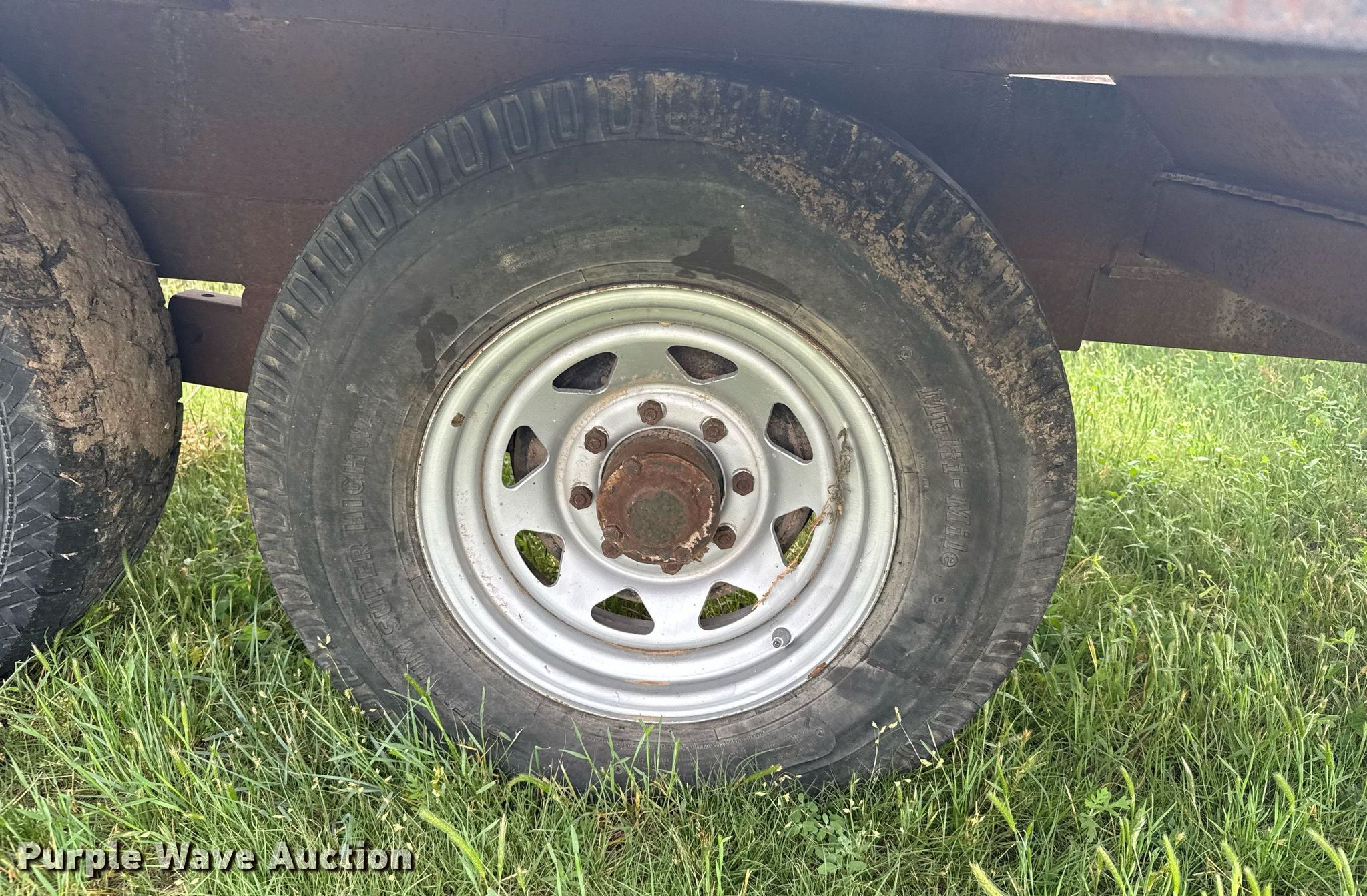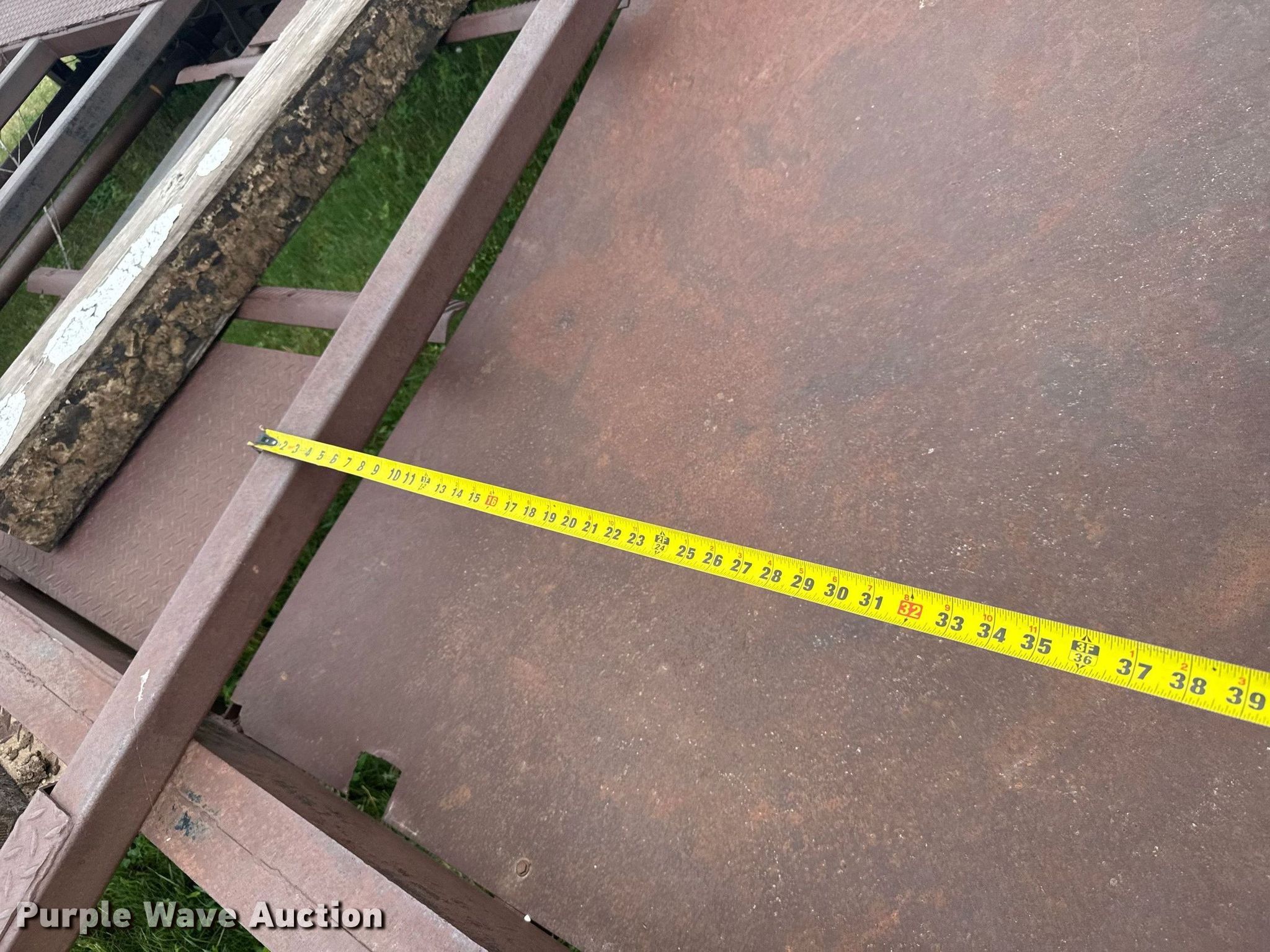 Jantz MFG 1400 swather / windrower trailer. Serial: 113. Dimensions Overall: 32' L x 144" W, Deck: 14' L x 144" W, Ramps: Manual Length: 64". Features Deck type: Steel, Maximum width: 12'. Chassis Hitch: Pintle, Landing gear: Single, Suspension: Spring, Brakes: Electric, Axles: Triple. Tires Aluminum wheels, Size: 265/85R16. Transfer of ownership documentation will be a bill of sale. Ness City , KS 67560