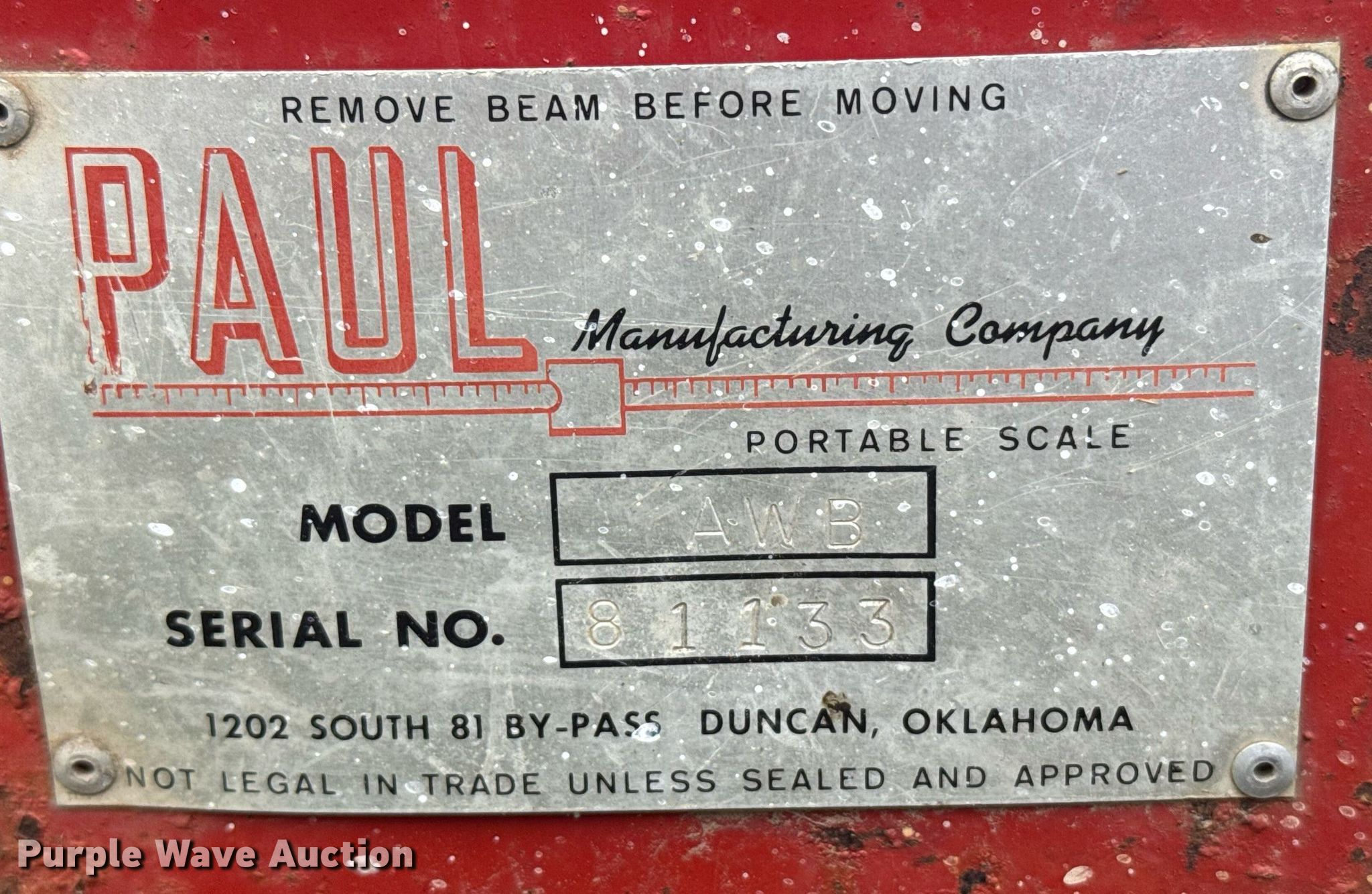 This Paul AW livestock scale will sell to the highest bidder regardless of price.
