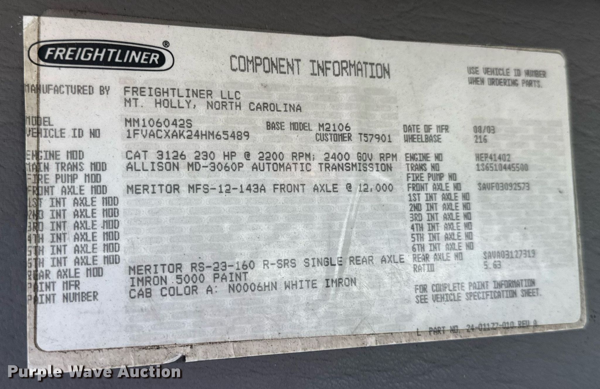 Take a look at this used 2004 Freightliner Business Class M2 106 truck cab and chassis being sold on July 24th, 2025 in the SOLD! July 24 Truck and Trailer Auction made by Freightliner. Take a look at all of the item information below or take a look at similar auctions for Trucks.