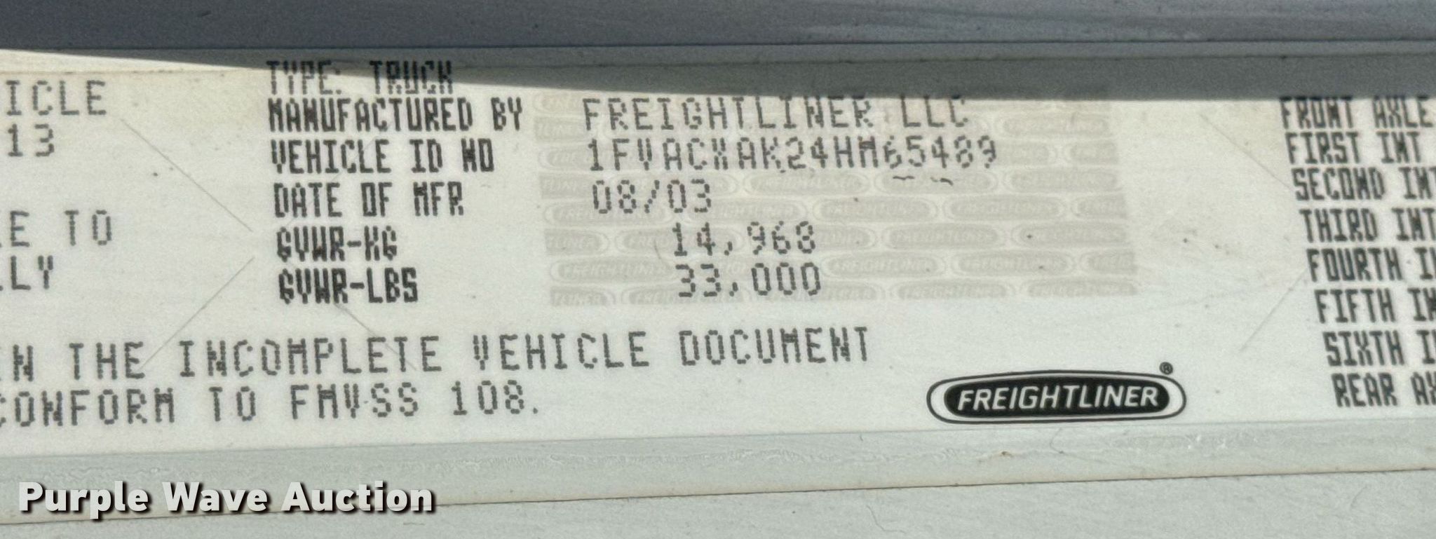 Purple Wave is selling a used Truck Chassis in Missouri. This item is a 2004 Freightliner Business Class M2 106 truck cab and chassis with the following: Miles: 539,662 on odometer, Hours: 25,502 on meter, VIN: 1FVACKAK24HM65489, Unit #: 2553