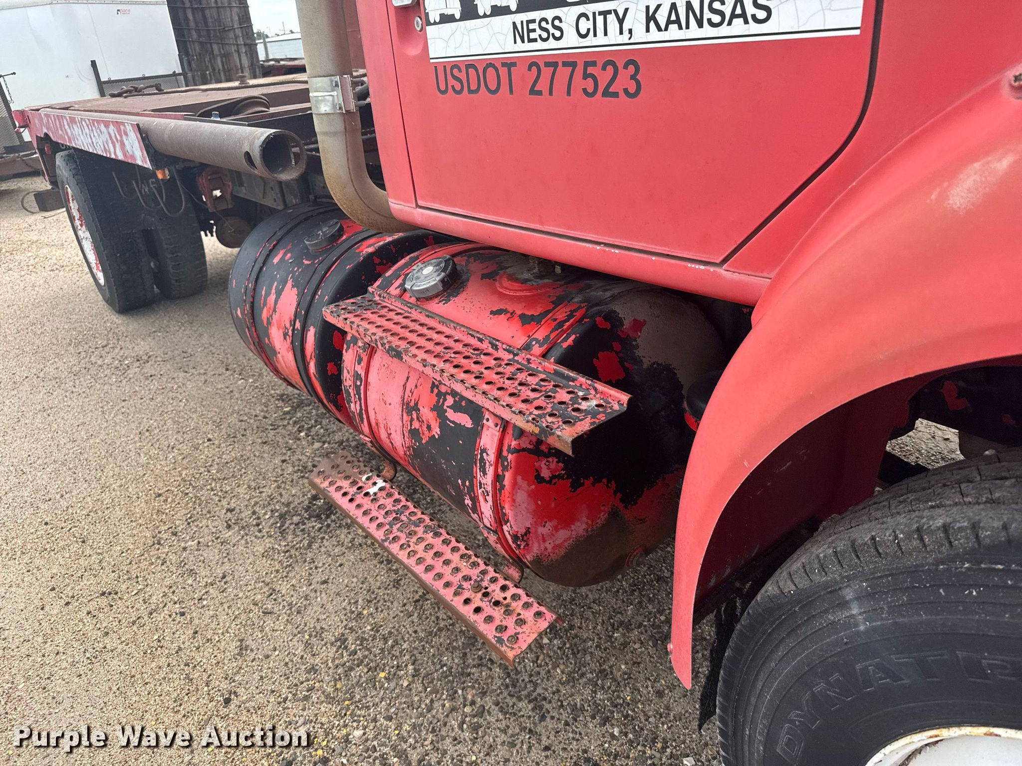 1991 International 7100 winch truck. Miles: 275,827 on odometer, VIN: 1HSHANGN5MH328480. Engine Displacement: 7.6L, Cylinders: 6, Fuel type: Diesel. Transmission Spicer, Manual, Speed: 7. Chassis Axles: Single, Suspension: Spring, Brakes: Air, PTO, GVWR: 30,000 lbs. Interior Heat. Features Flatbed 14' L x 96" W, Braden winch, Rolling tailboard, Gin poles Length: 14'. Tires Size: 11R24.5. Kansas title. Title distribution may be delayed up to 14 days from verification of funds. Cedar Hill Land and Cattle. Ness City , KS 67560