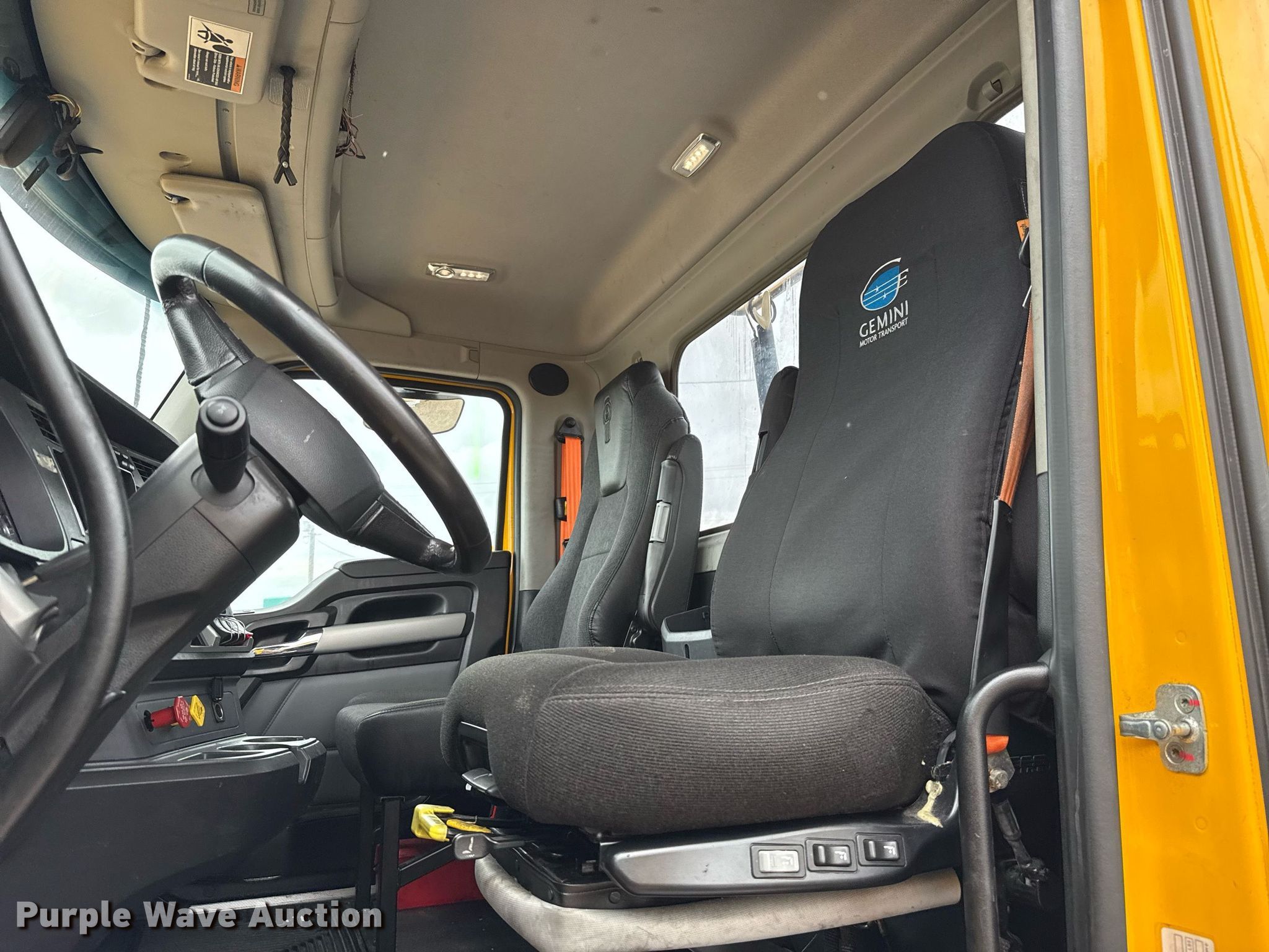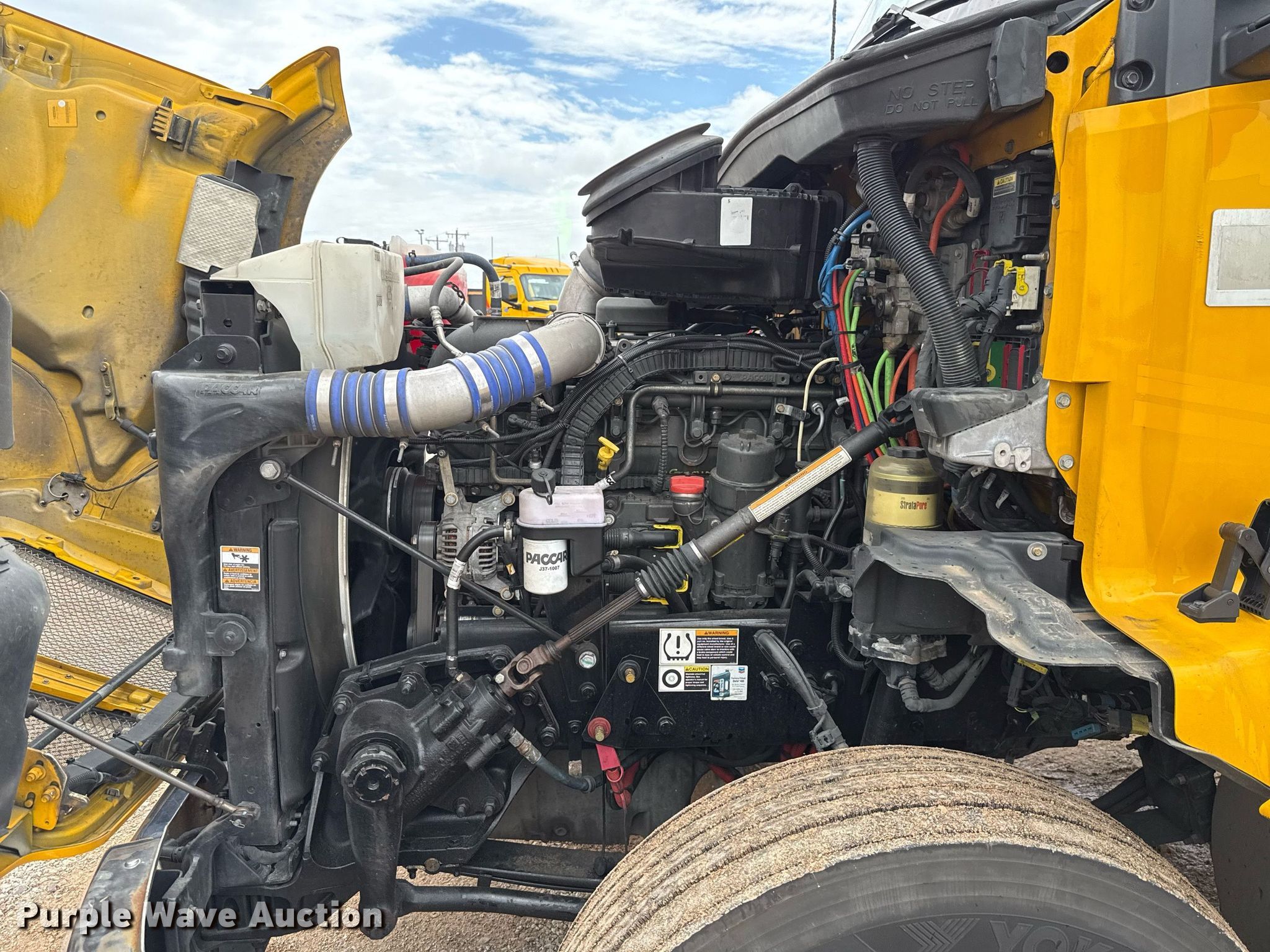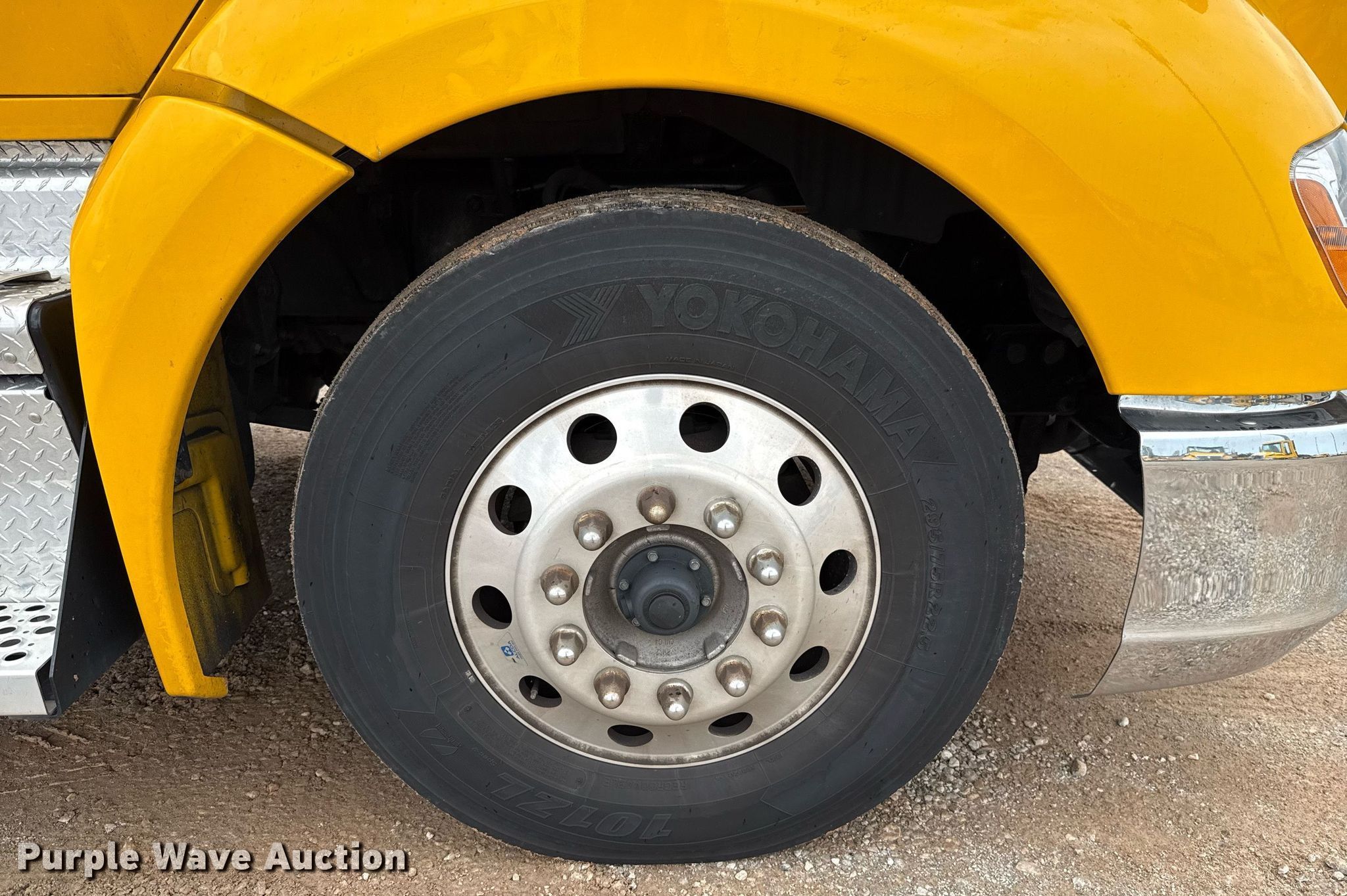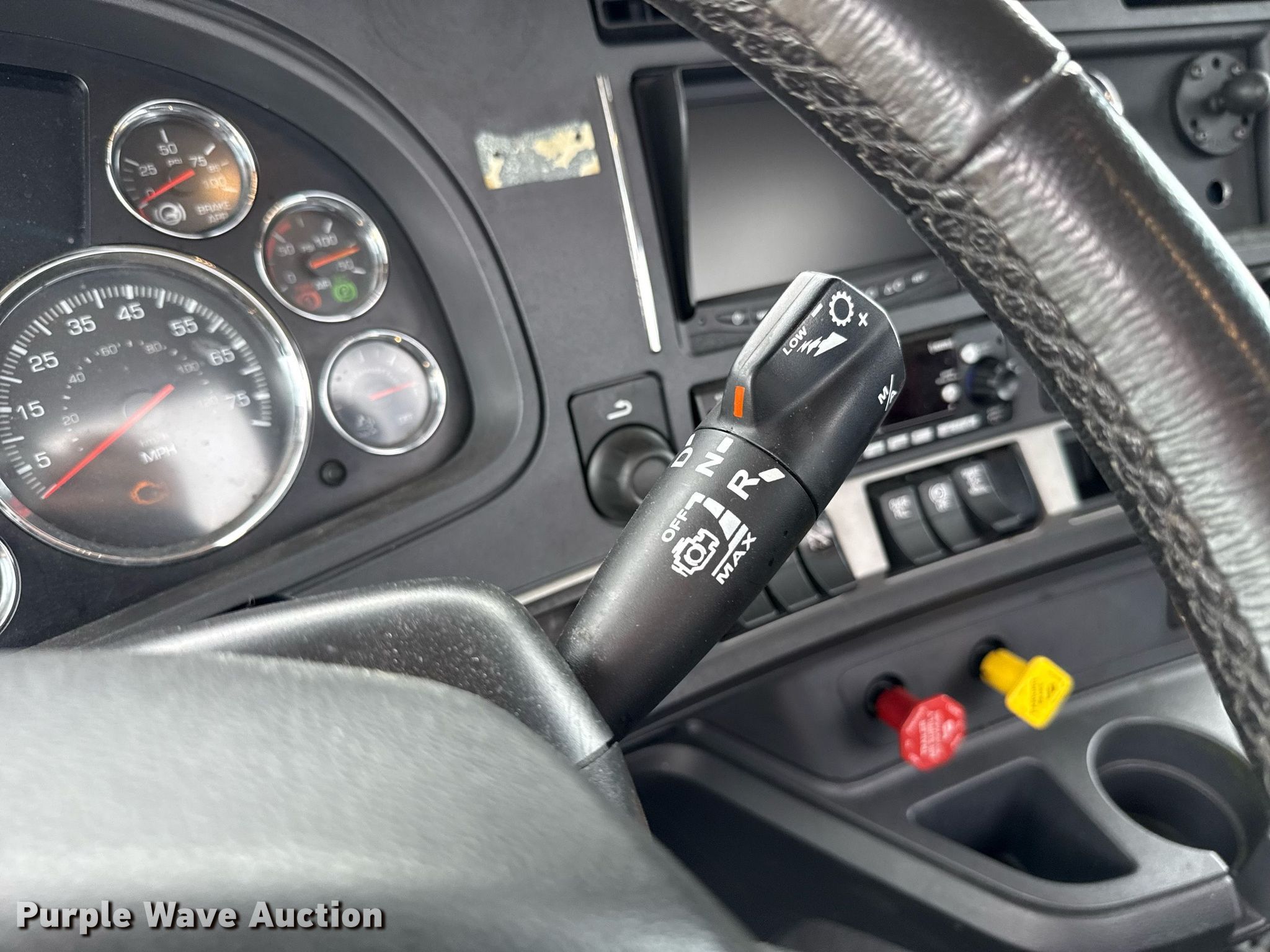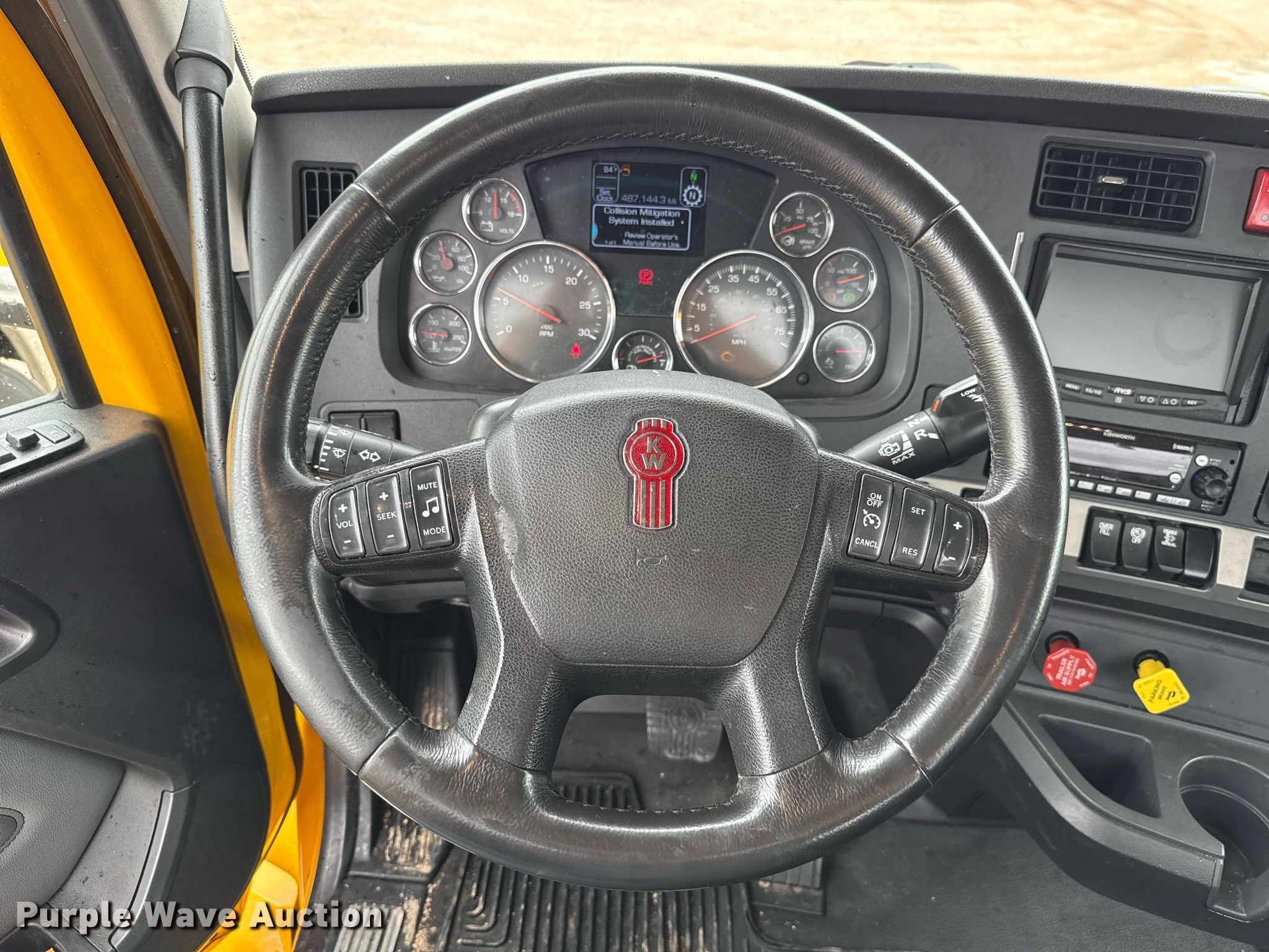 2022 Kenworth T680 semi truck. Miles: 487,144 on odometer, Hours: 10,605 on meter, VIN: 1XKYDP9X3NJ493453, Unit #: 22534. Engine Paccar MX-13, Serial: Y256096, Displacement: 12.9L, Cylinders: 6, Fuel type: Diesel, HP: 455, kW: 340, Engine brake. Transmission Automated manual. Chassis Axles: Tandem, Differential lock: Inter-axle, Suspension: Air Dump valves, Brakes: Air, GVWR: 50,500 lbs FAWR: 12,500 lbs, IAWR: 19,000 lbs, RAWR: 19,000 lbs. Interior AC, Heat, Heated mirrors, Power windows, Power locks, Cruise control, Air ride cab. Features Deck plate: Aluminum, Fifth wheel type: Fixed, Fuel tank: Single. Tires Front: 295/75R22.5, Rear: 445/50R22.5. Notes Dash warning indicator: Check engine. Oklahoma title. Title distribution may be delayed up to 30 days from verification of funds. Gemini Motor Transport. 10220 W Reno Ave. Oklahoma City, OK 73127