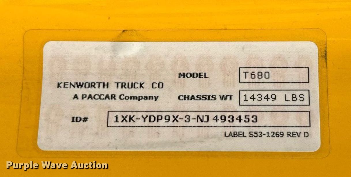 Purple Wave is selling a used Truck Tractor in Oklahoma. This item is a 2022 Kenworth T680 semi truck with the following: Miles: 487,144 on odometer, Hours: 10,605 on meter, VIN: 1XKYDP9X3NJ493453, Unit #: 22534