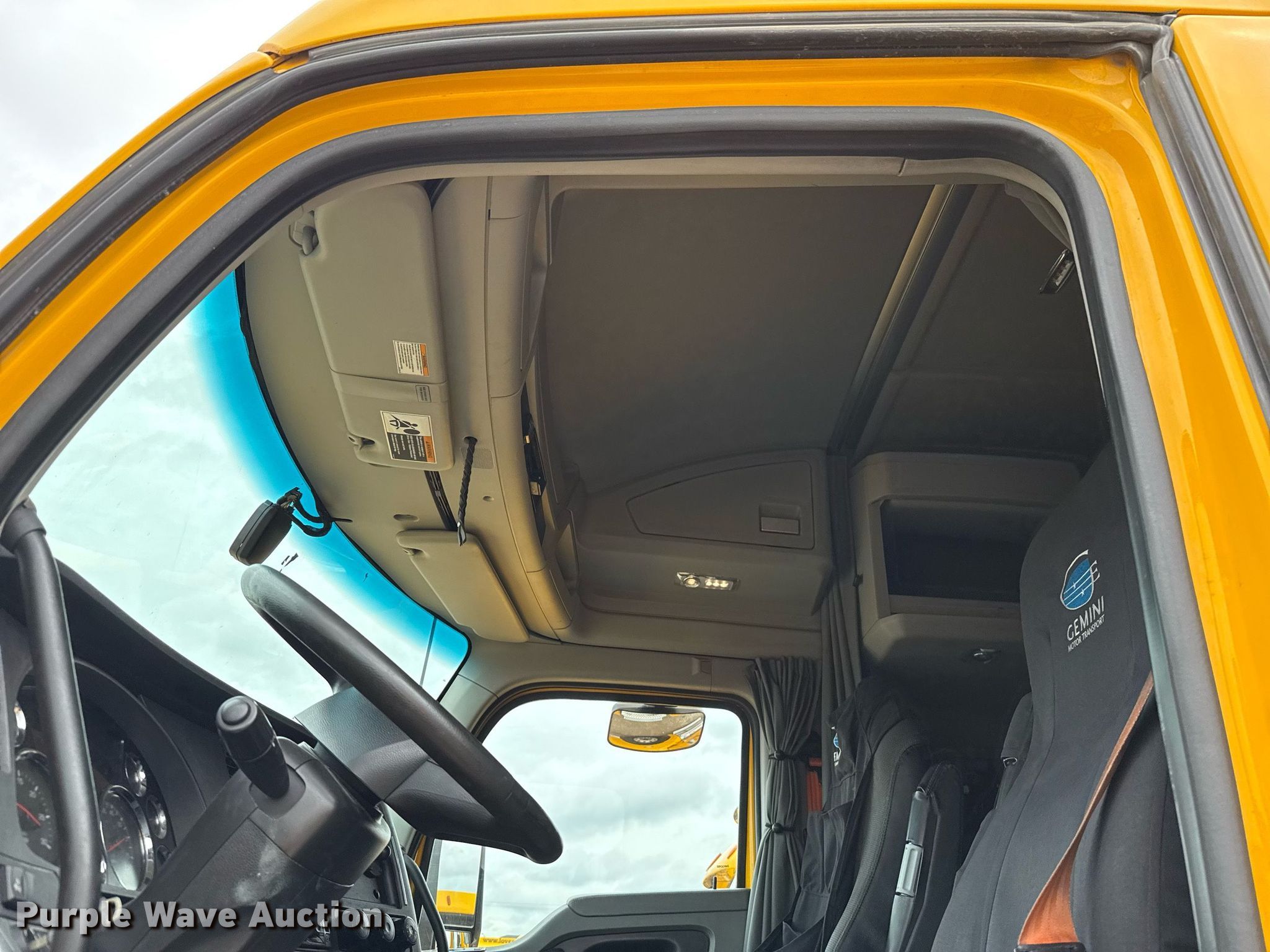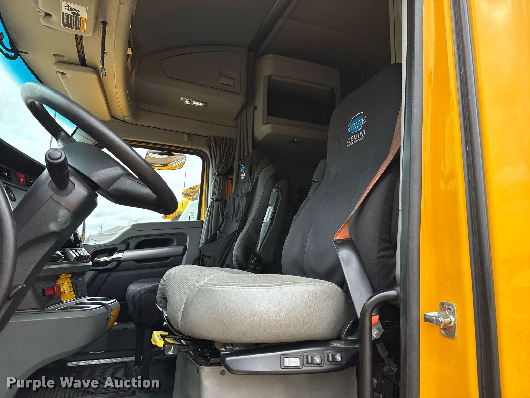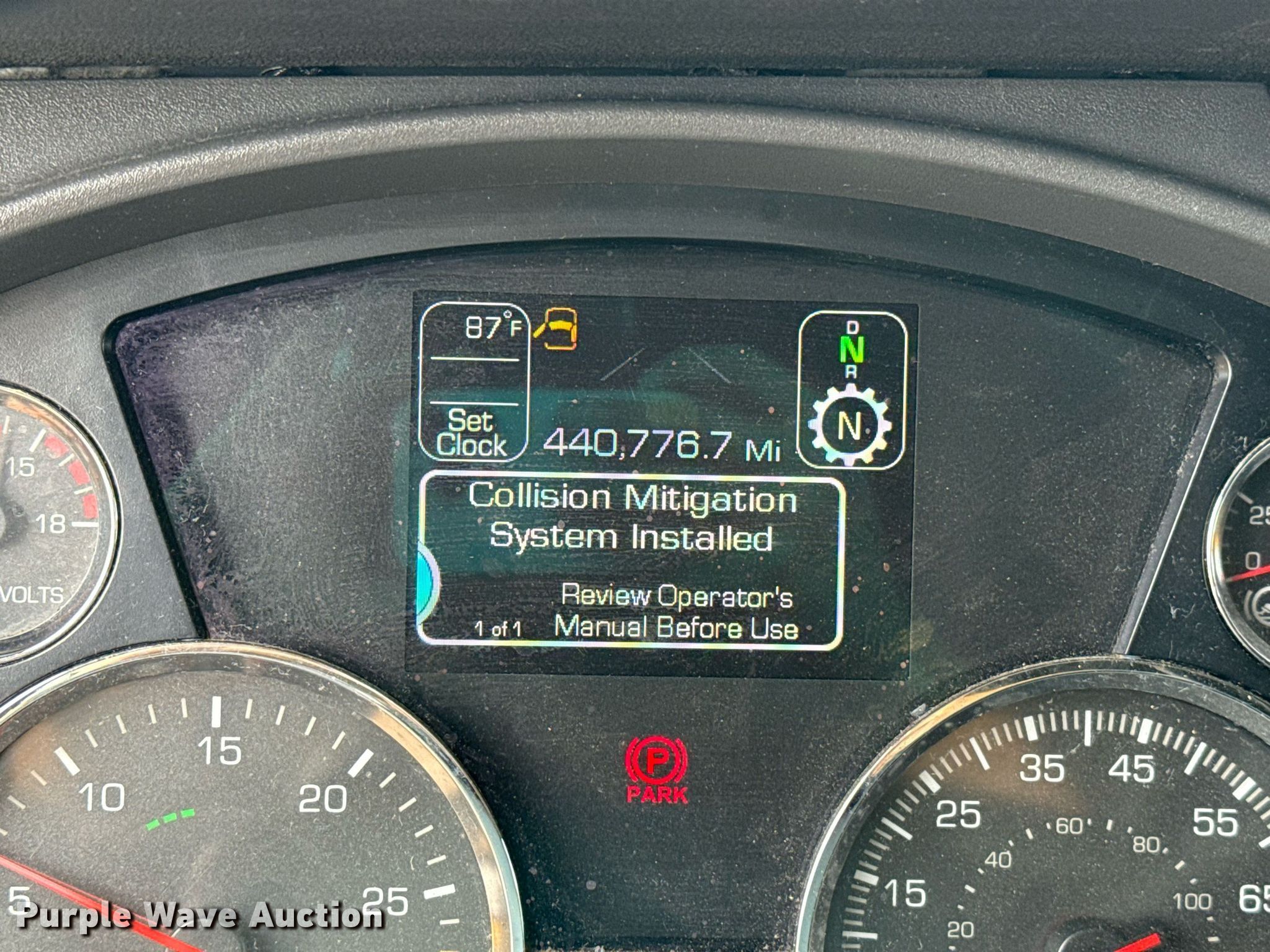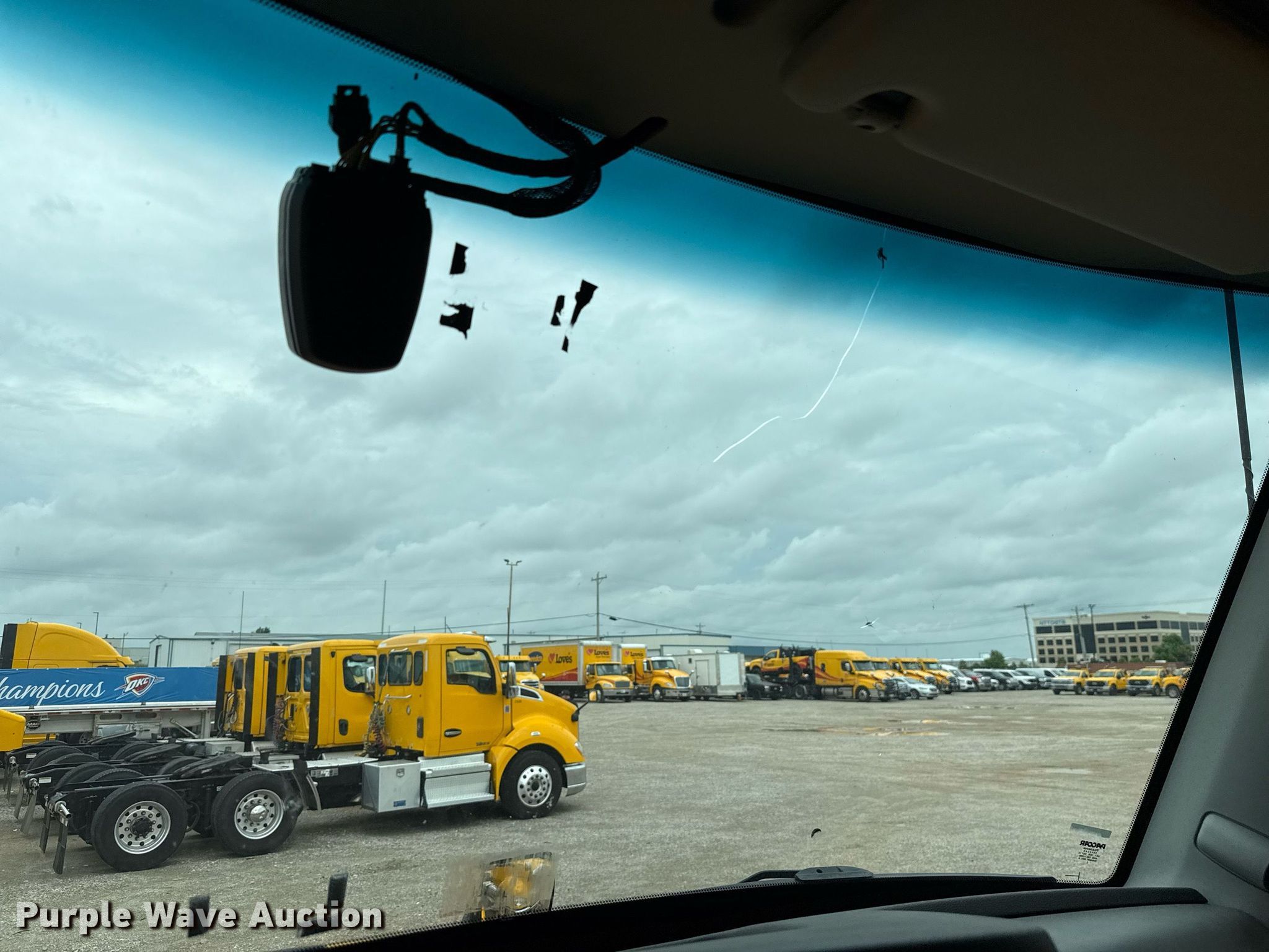 2021 Kenworth T680 semi truck. Miles: 440,777 on odometer, Hours: 14,638 on meter, VIN: 1XKYDP9X6MJ449090, Unit #: 21589. Engine Paccar MX-13, Serial: Y236009, Displacement: 12.9L, Cylinders: 6, Fuel type: Diesel, HP: 455, kW: 340, Engine brake. Transmission Automated manual. Chassis Axles: Tandem, Differential lock: Inter-axle, Suspension: Air Dump valves, Brakes: Air, GVWR: 50,350 lbs FAWR: 12,350 lbs, IAWR: 19,000 lbs, RAWR: 19,000 lbs. Interior AC, Heat, Heated mirrors, Power windows, Power locks, Cruise control, Air ride cab, Sleeper Sleeper length: 63", Beds: Single, Refrigerator, Microwave, Rear climate control. Features Deck plate: Aluminum, Fifth wheel type: Fixed, Fuel tank: Dual. Tires Front: 295/75R22.5, Rear: 445/50R22.5. Notes Windshield chipped or cracked. Oklahoma title. Title distribution may be delayed up to 30 days from verification of funds. Gemini Motor Transport. 10220 W Reno Ave. Oklahoma City, OK 73127