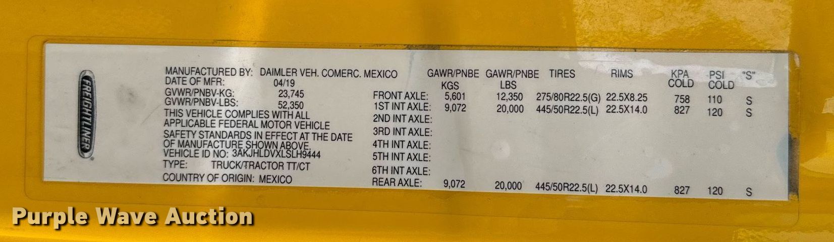 - VIN: 3AKJHLDVXLSLH9444