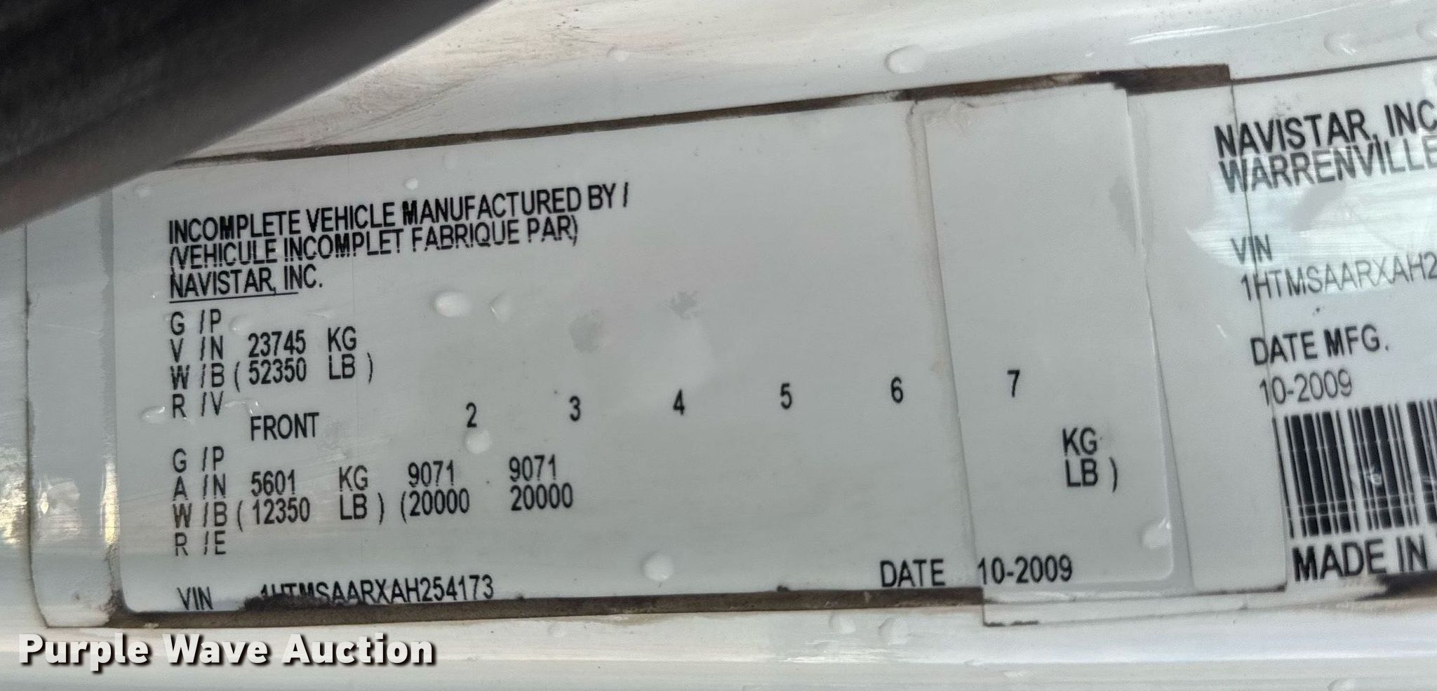 - VIN: 1HTMSAARXAH254173