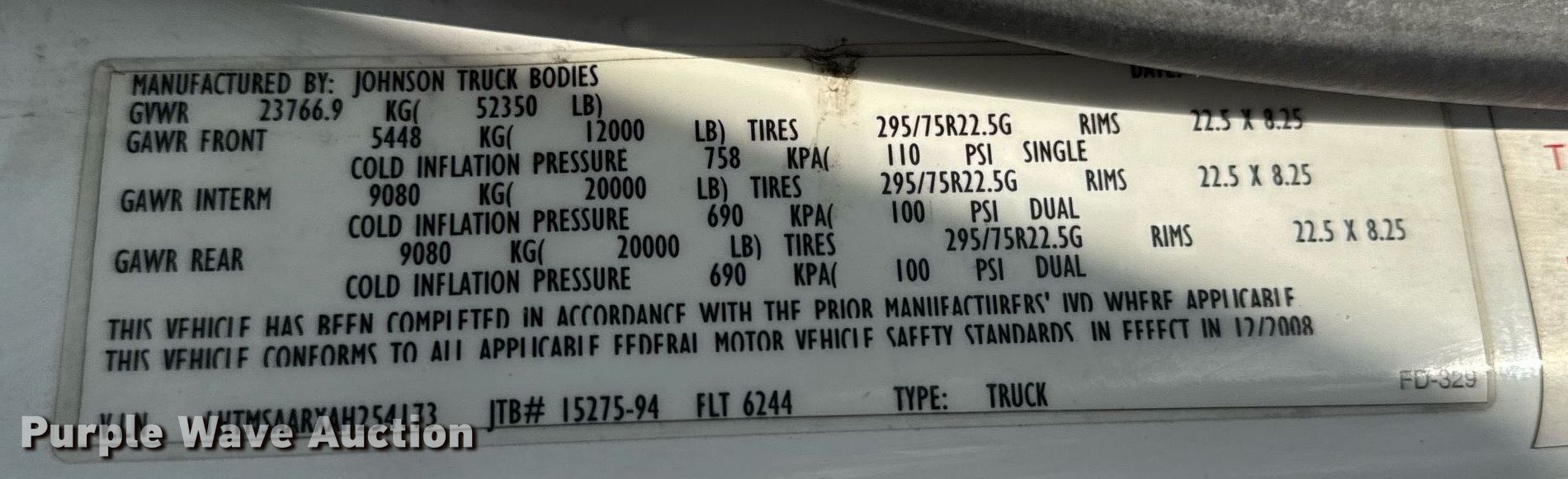 2010 International DuraStar 4400 truck cab and chassis. Miles: 432,055 on odometer, Hours: 18,256 on meter, VIN: 1HTMSAARXAH254173, Unit #: 2572. Engine International Maxxforce DT, Displacement: 7.6L, Cylinders: 6, Fuel type: Diesel. Transmission Allison, Automatic. Chassis Axles: Tandem, Suspension: Spring, Brakes: Air, Truck chassis: 23' 5", GVWR: 52,350 lbs FAWR: 12,350 lbs, IAWR: 20,000 lbs, RAWR: 20,000 lbs. Interior AC, Heat, Heated mirrors, Cruise control. Features Fuel tank: Single. Tires Size: 275/80R22.5. Notes Passenger side mirror broken, Possible AC issues, may need charged. Iowa title. Title distribution may be delayed up to 14 days from verification of funds. Hiland Dairy. New Bloomfield, MO 65063