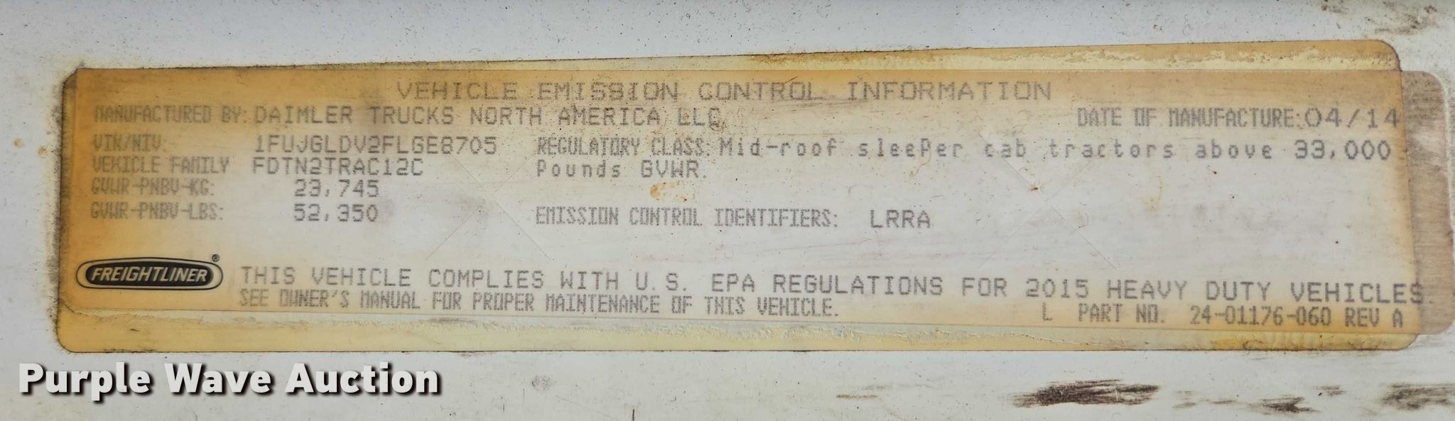 Purple Wave is selling a used Truck Tractor in South Dakota. This item is a 2015 Freightliner Cascadia 125 semi truck with the following: Miles: 897,740 on odometer, VIN: 1FUJGLDV2FLGE8705, Unit #: 153220