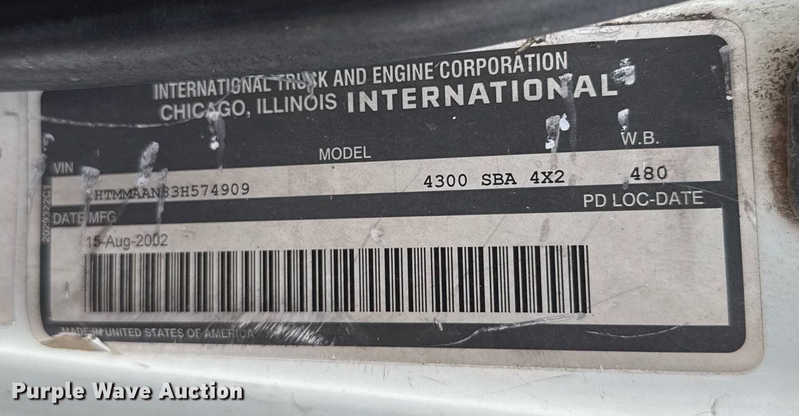 Take a look at this used 2003 International 4300 truck cab and chassis being sold on July 24th, 2025 in the SOLD! July 24 Truck and Trailer Auction made by International. Take a look at all of the item information below or take a look at similar auctions for Trucks.