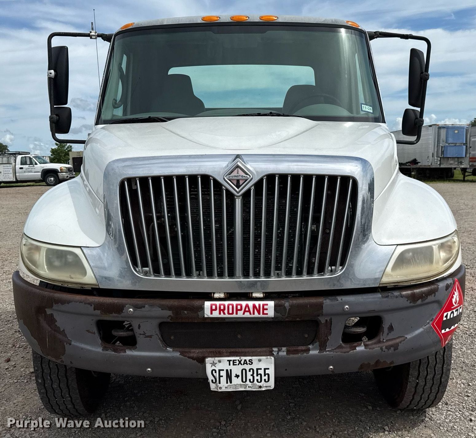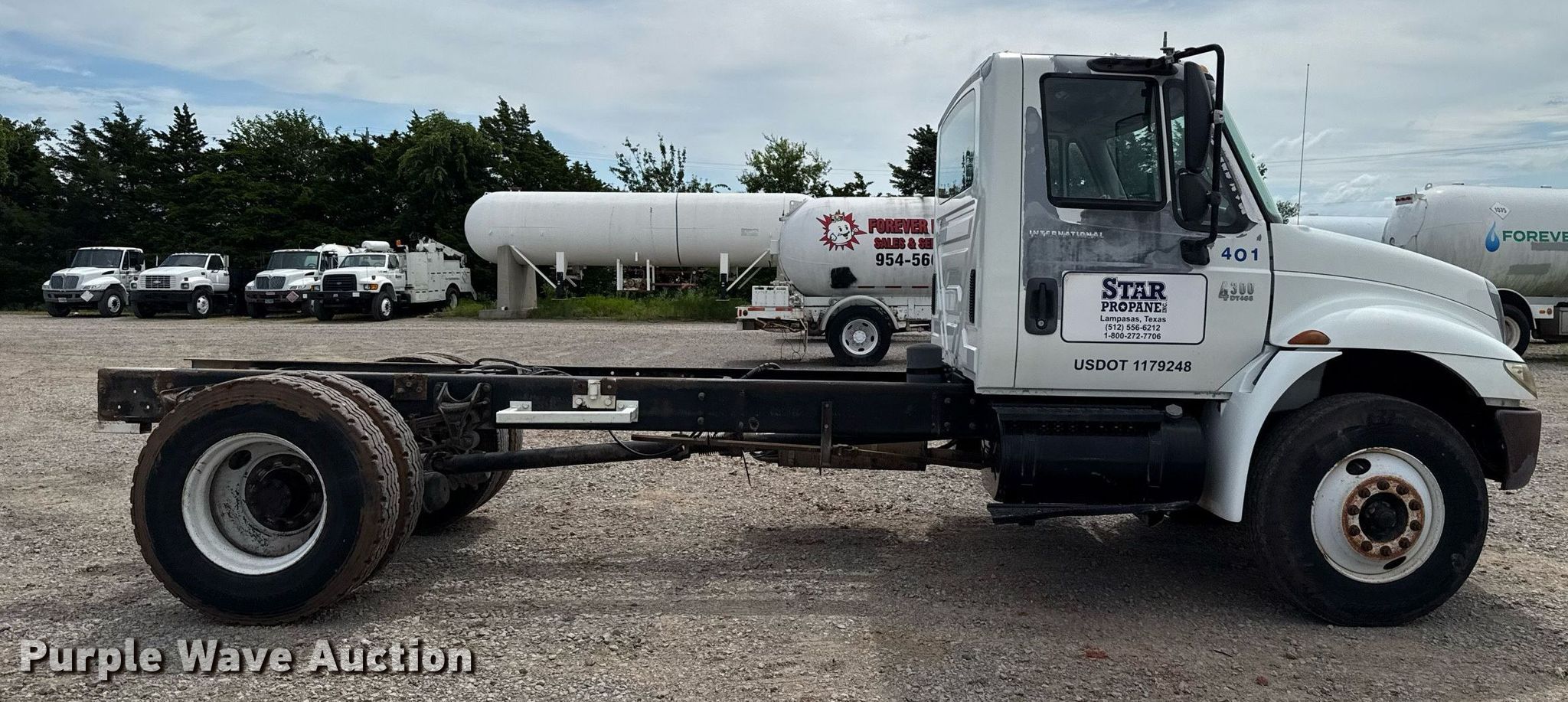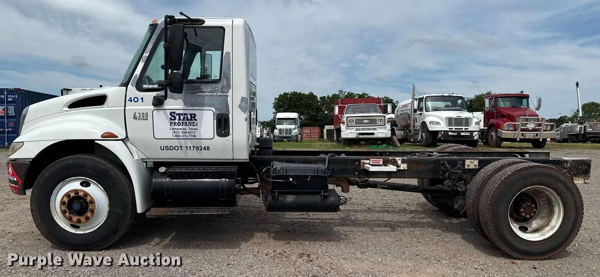 2002 International 4300 truck cab and chassis. Miles: 465,490 on odometer, VIN: 1HTMMAAN52H521728. Engine International DT466, Displacement: 7.6L, Cylinders: 6, Fuel type: Diesel. Transmission Eaton Fuller Synchro 6, Manual, Speed: 6. Chassis Axles: Single, Suspension: Spring, Brakes: Air, PTO, Truck chassis: 13' 8". Interior AC, Heat, Cruise control. Features Fuel tank: Dual. Tires Size: 11R22.5. Notes Dash warning indicator: ABS, Windshield chipped or cracked, Dead battery. Oklahoma title. Title distribution may be delayed up to 14 days from verification of funds. Cactus Tanks L.L.C.. Chandler, OK 74834