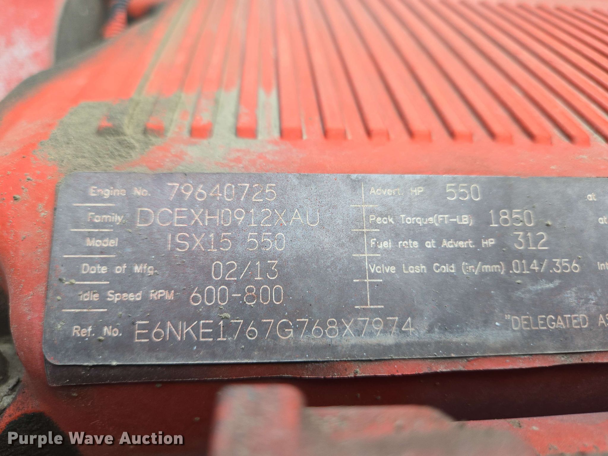 2014 Kenworth W900 semi truck. Miles: 895,722 on odometer, Hours: 34,558 on meter, VIN: 1XKWD49X2EJ389719, Unit #: 53238525. Engine Cummins ISX15, Displacement: 15.0L, Cylinders: 6, Fuel type: Diesel, HP: 550, Engine brake. Transmission Eaton Fuller RTLO18918B, Manual, Speed: 18. Chassis Axles: Tandem, Gear ratio: 3.55, Differential lock: Inter-axle, Suspension: Air, Brakes: Air, PTO, Wet kit, GVWR: 53,200 lbs FAWR: 13,200 lbs, IAWR: 20,000 lbs, RAWR: 20,000 lbs. Interior AC, Heat, Heated mirrors, Power windows, Power locks, Cruise control, Air ride cab, Sleeper Model: Aerocab, Sleeper length: 60", Refrigerator. Features Fifth wheel type: Sliding, Fuel tank: Dual. Tires Front: 11R24.5, Rear: 285/75R24.5. Notes Dash warning indicator: Check engine. Repossessed item, stored at a secured facility. Please review REQUIRED REMOVAL INSTRUCTIONS. Lender owned. Item condition and history are unknown. No additional information is available. Titles will be distributed after confirmation of payment and removal. West Virginia title. Mileage has not been verified. Odometer discrepancy will be marked on the title. Title distribution may be delayed up to 30 days from verification of funds. Lender Owned. Lawrenceburg, KY 40342