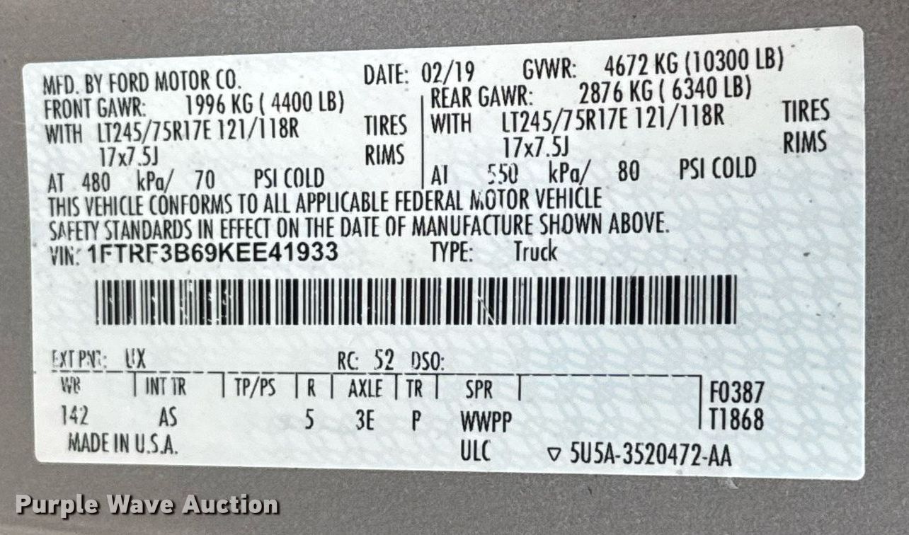 Purple Wave is selling a used 3/4 or 1 Ton Pickup or Van in Oklahoma. This item is a 2019 Ford F350 Super Duty XL pickup truck with the following: Miles: 111,949 on odometer, VIN: 1FTRF3B69KEE41933