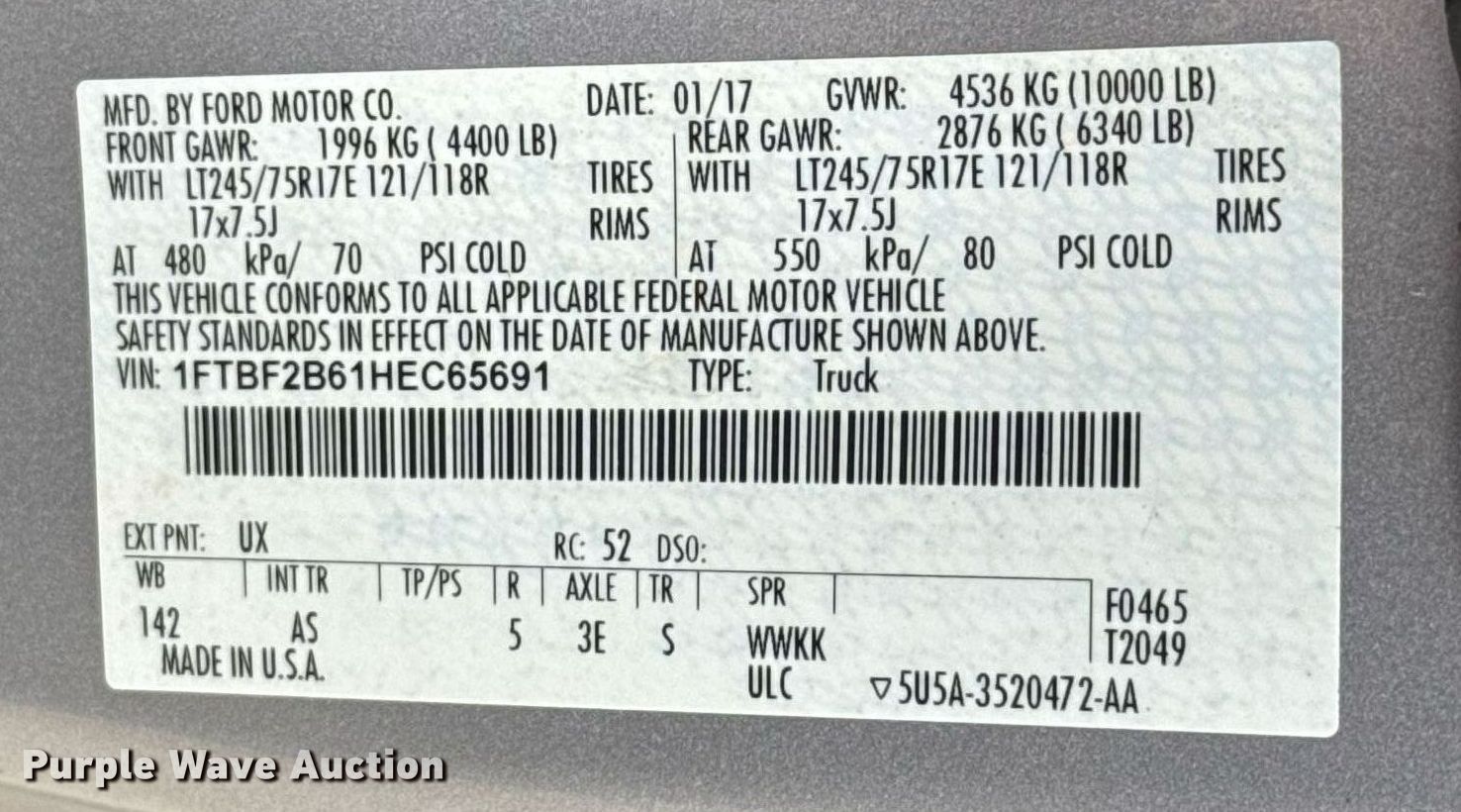 Purple Wave is selling a used 3/4 or 1 Ton Pickup or Van in Oklahoma. This item is a 2017 Ford F250 Super Duty XL pickup truck with the following: Miles: 124,723 on odometer, VIN: 1FTBF2B61HEC65691