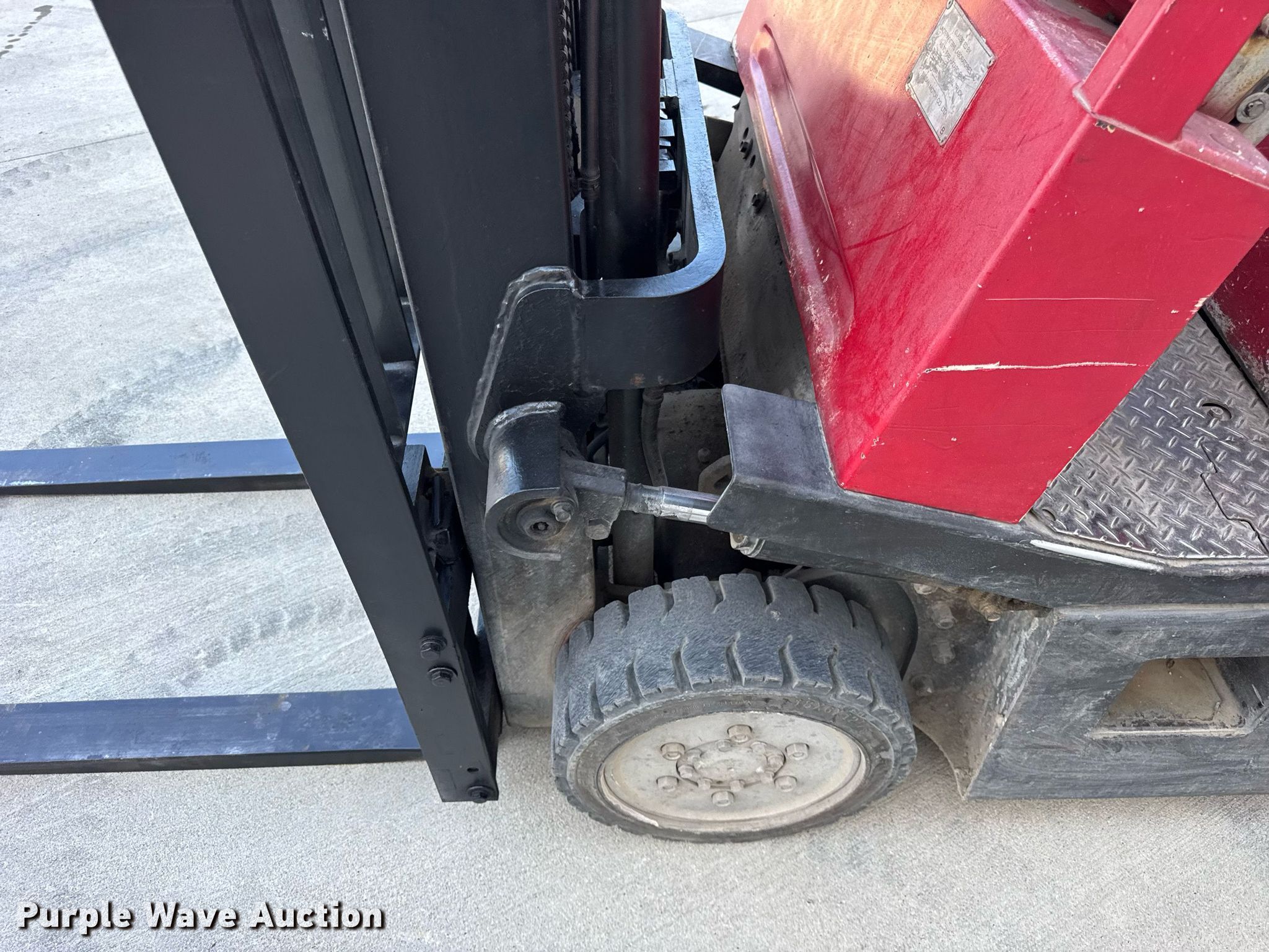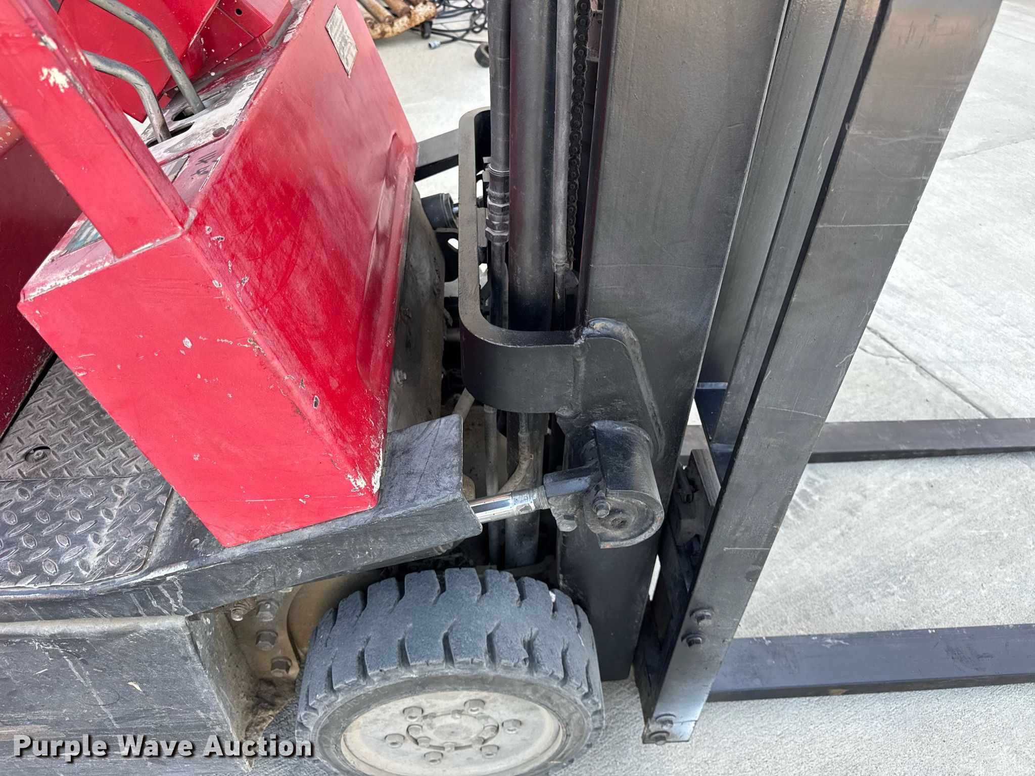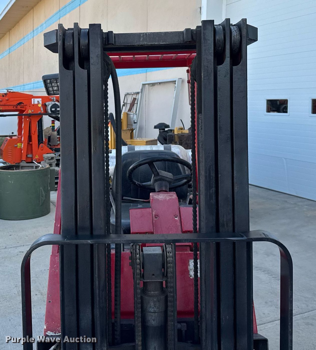 Nissan CPH01A15PV forklift. Hours: 8,966 on meter. Engine Nissan, Cylinders: 4, Fuel type: LPG LP bottle: Not included. Transmission Powershift. Operators station Canopy. Features Maximum lift capacity: 3,000 lbs, Maximum lift height: 130", Collapsed mast height: 77", Mast stages: 3, Mast tilt, Fork length: 47". Tires Front: 18x6x12.125, Rear: 14x5.5x8, Solid. Grubaugh Contracting. Vandalia, IL 62471