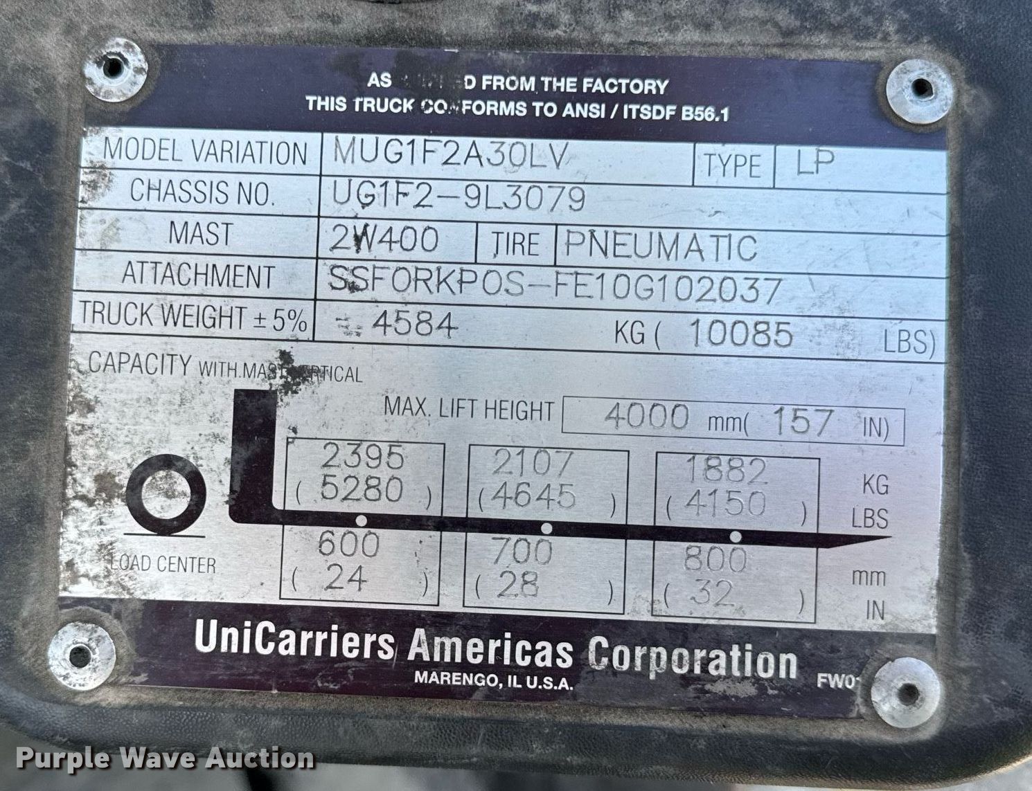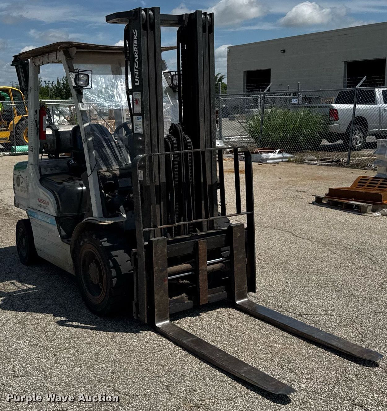 Purple Wave is selling a used Cushion Tire or Pneumatic Forklift in Wisconsin. This item is a 2013 Nissan PL60LP forklift with the following: Hours: 7,209 on meter, Serial: UG1F2-9L3079, Unit #: SFS2252