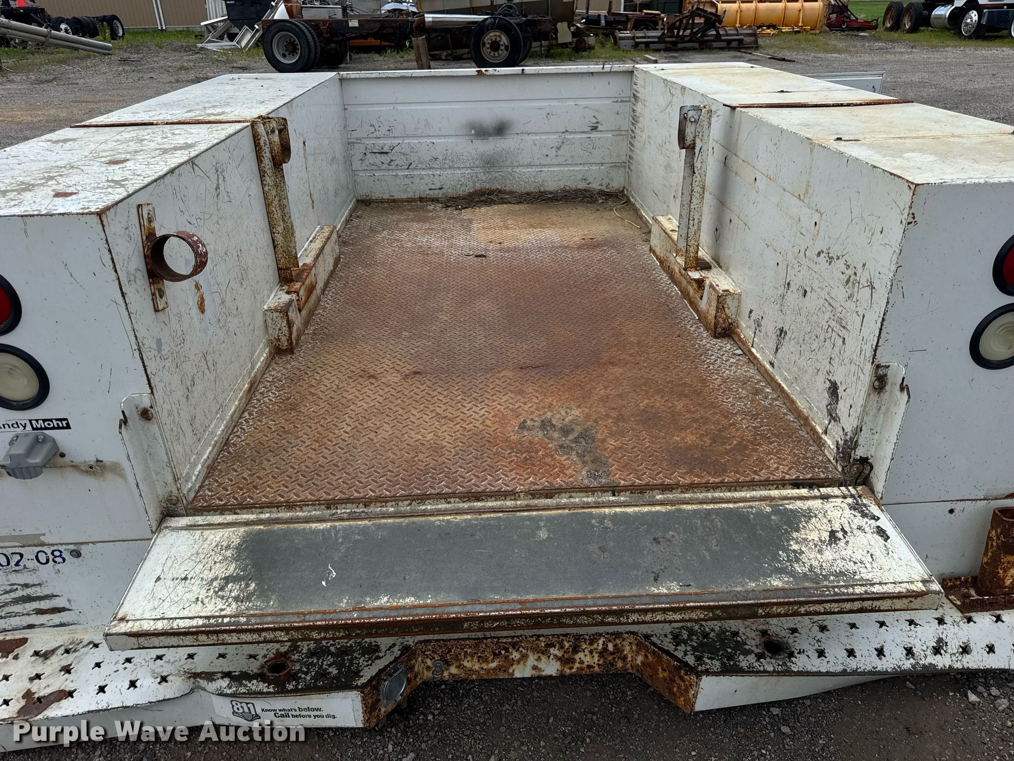 Knapheide 696D54J pickup truck utility bed. Serial: 200080411-0113316. Features 97" L x 96" W, Bed type: Steel. Higgs Welding. Dieterich, IL 62424