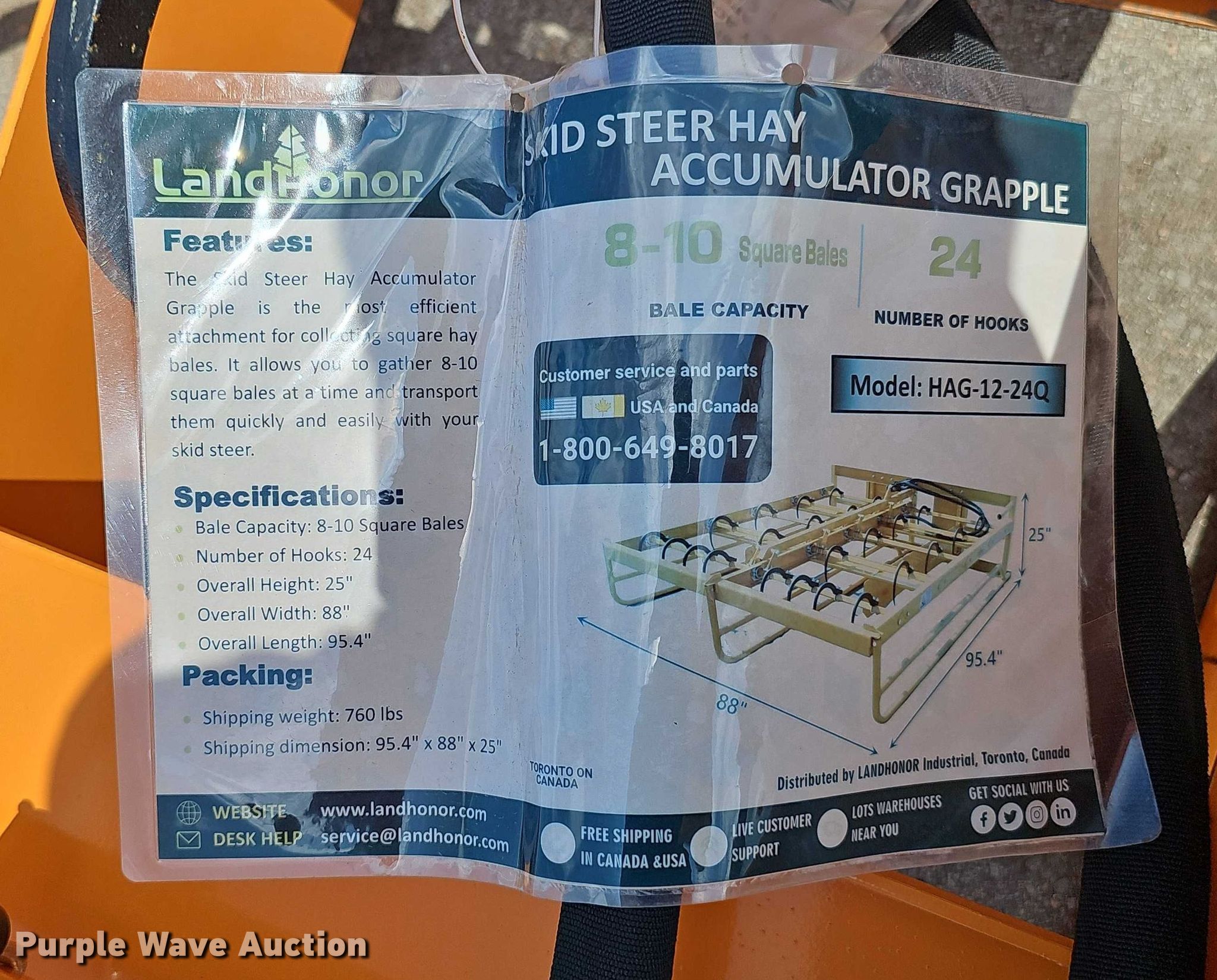 2024 LandHonor HAG-112-24Q skid steer bale accumulator grapple | SOLD! July 30 Vehicles and Equipment Auction