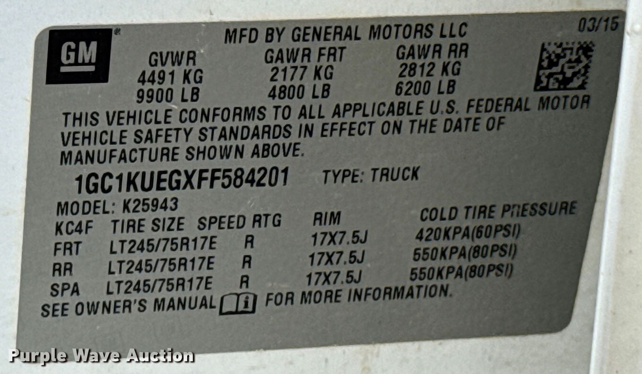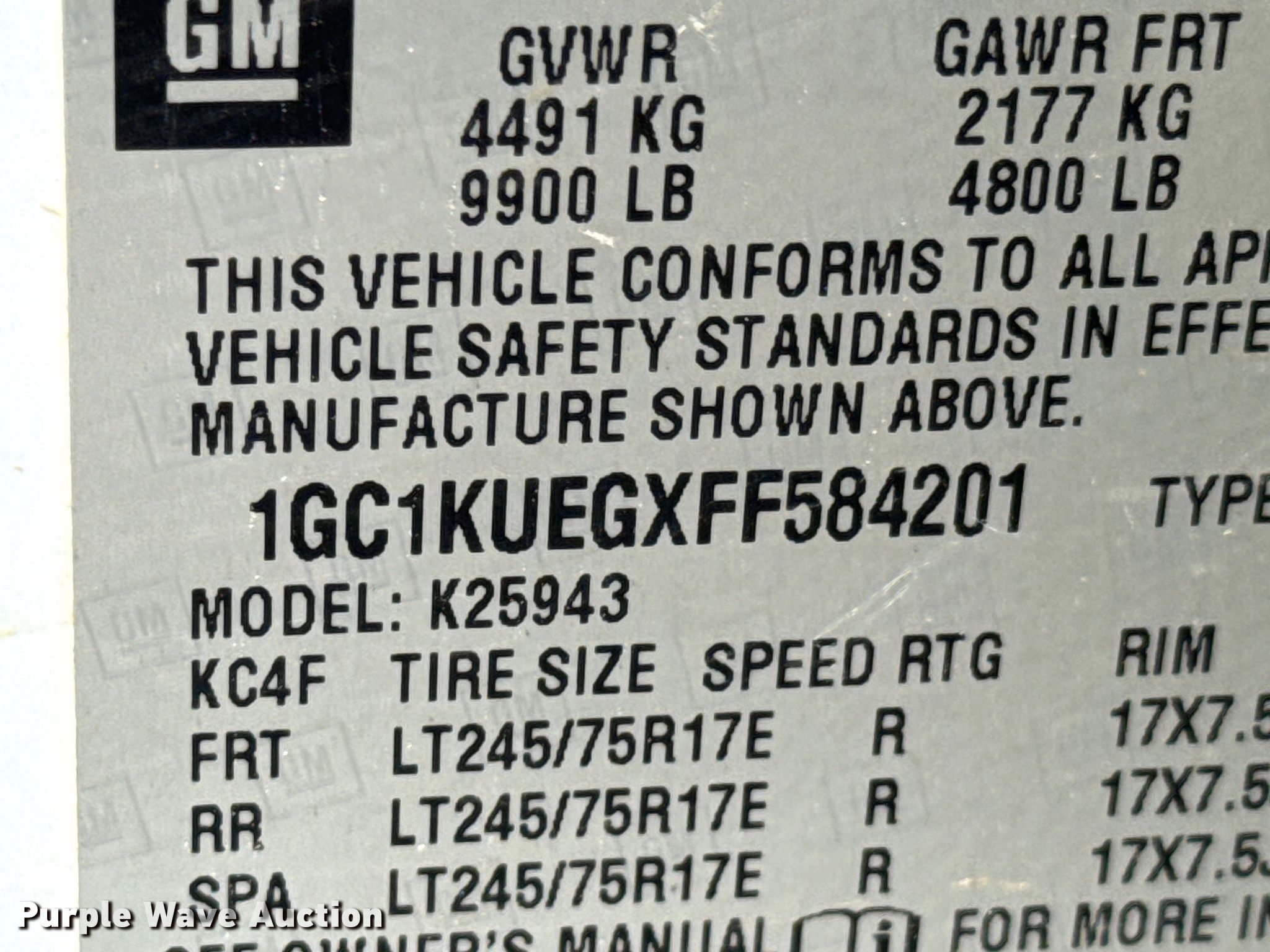 - VIN: 1GC1KUEGXFF584201