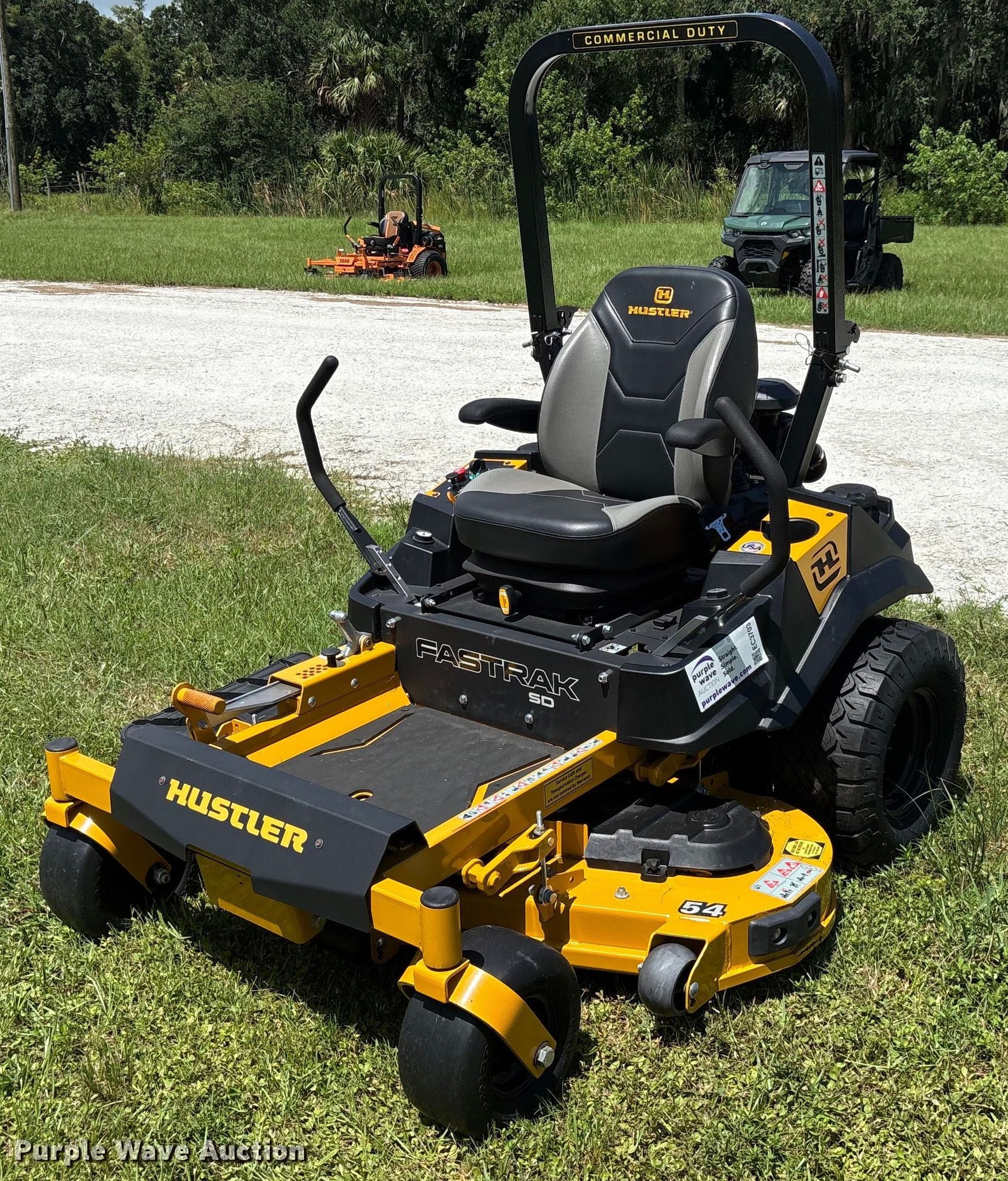 Purple Wave is selling a used Lawn Mower in Florida. This item is a 2023 Hustler Fastrak SD 941682 ZTR lawn mower with the following: Hours: 24 on meter, Cutting width: 54", Serial: 23101345