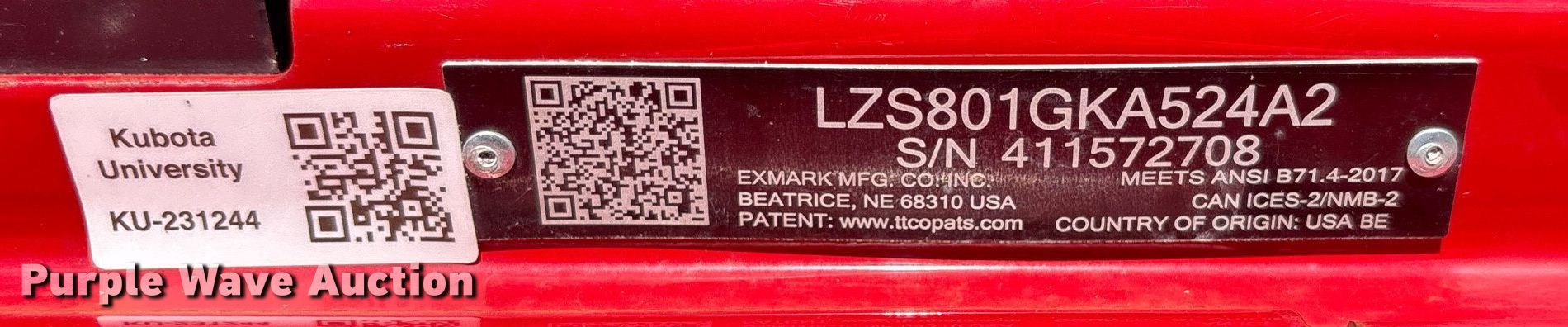 Purple Wave is selling a used Lawn Mower in Florida. This item is a Exmark Lazer Z S-Series ZTR lawn mower with the following: Hours: 16 on meter, Cutting width: 52", Serial: 4115725708