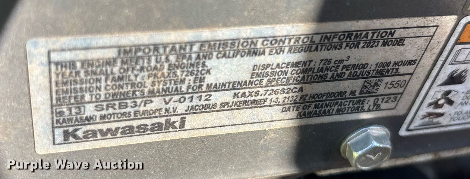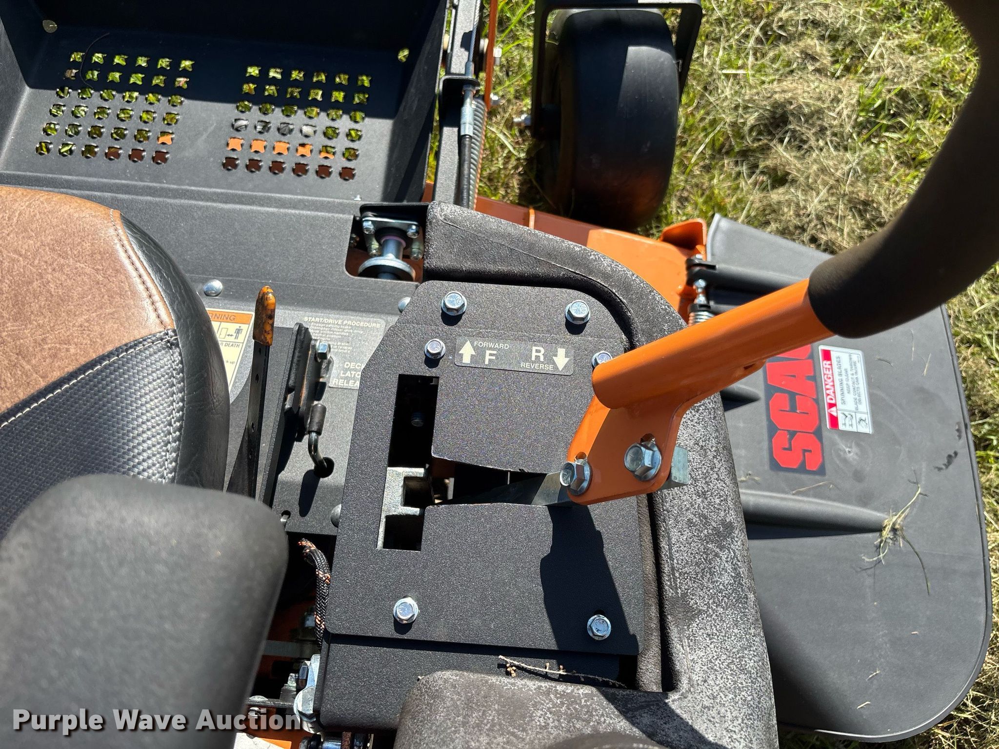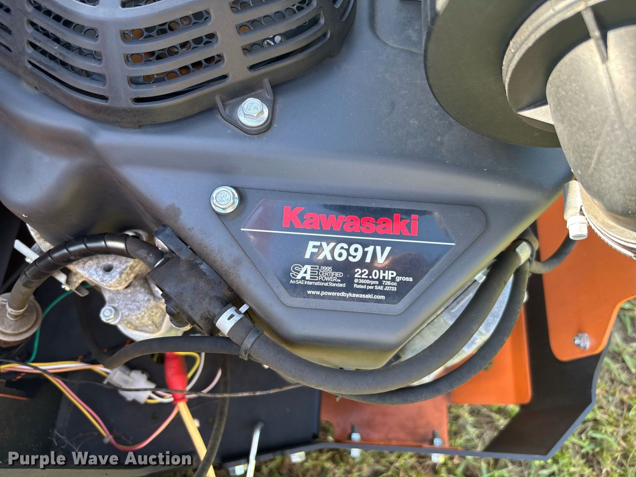 Scag Patriot ZTR lawn mower. Hours: 21 on meter, Cutting width: 52", Serial: V3601902. Engine Kawasaki FX691V, Serial: FX691VC29268, Displacement: 726 cc, Cylinders: 2, Fuel type: Gas. Transmission Hydrostatic. Operators station OROPS. Tires Front: 13x6.50-6, Rear: 22x10.5-12. Mark Hampton. Fort Pierce, FL 34945